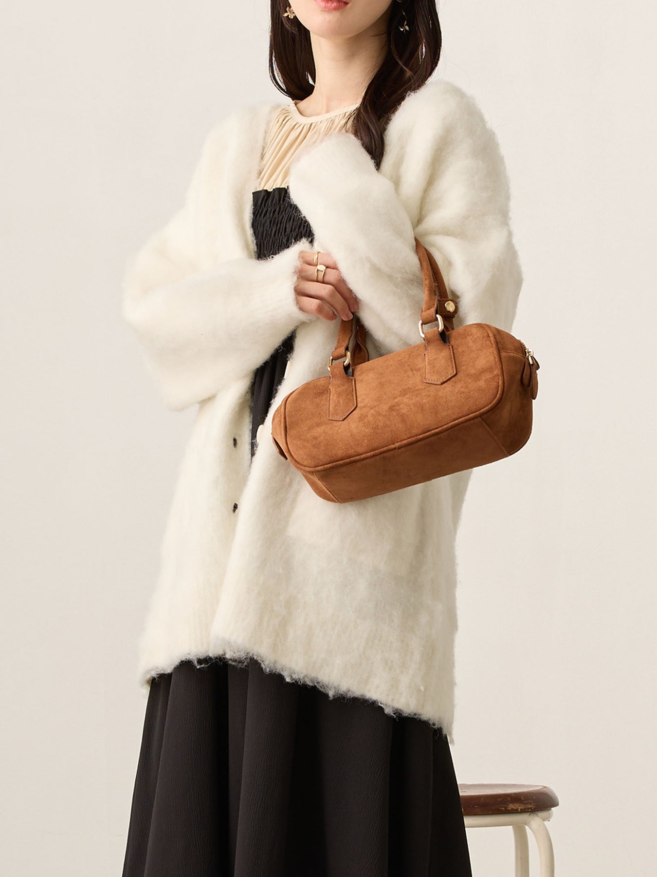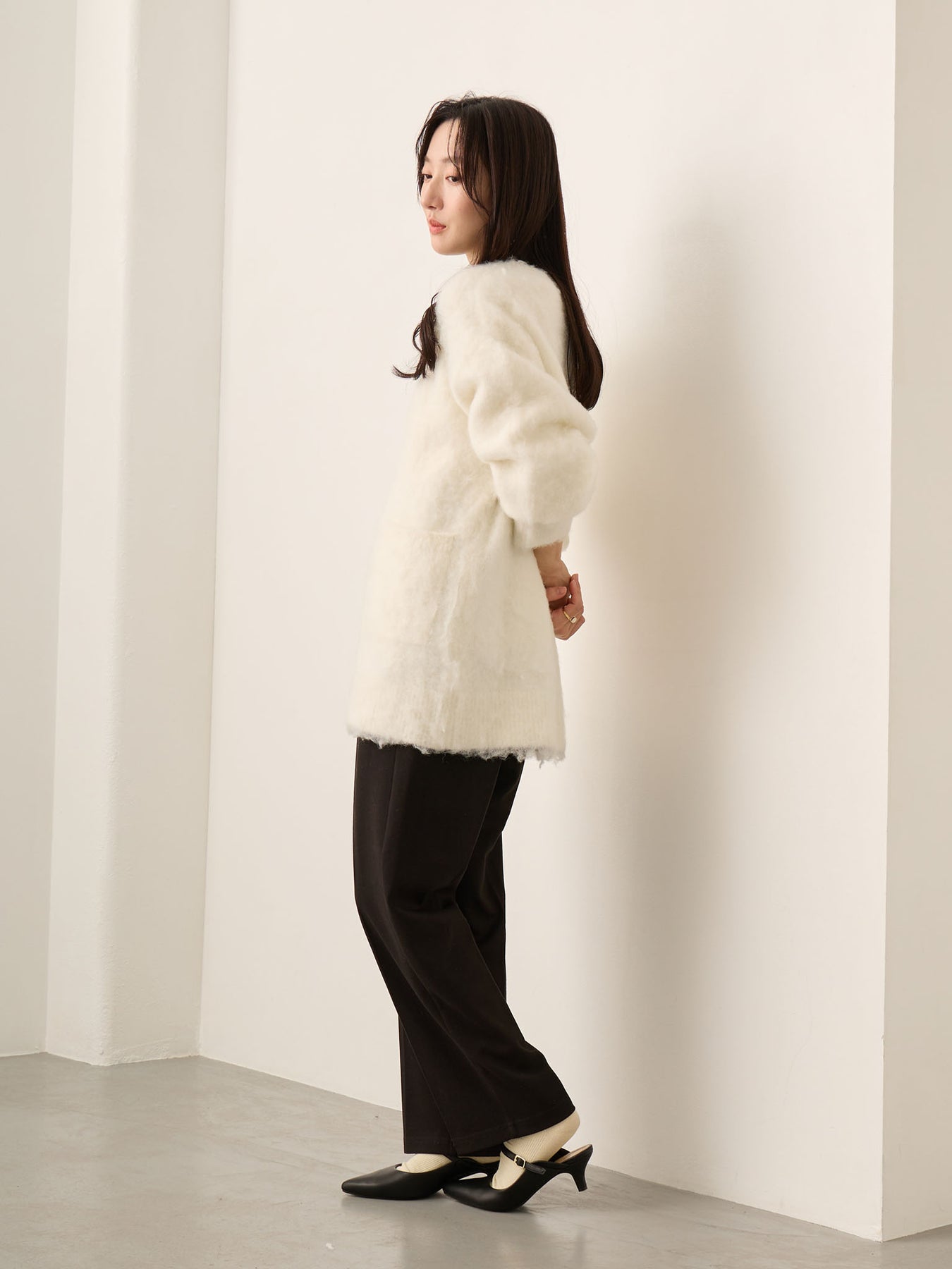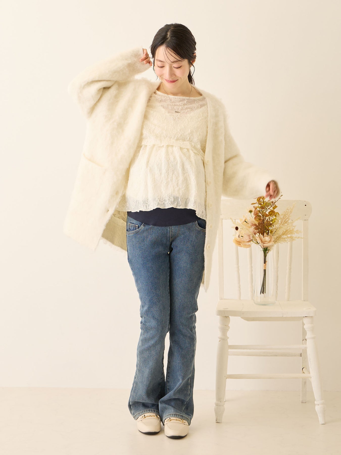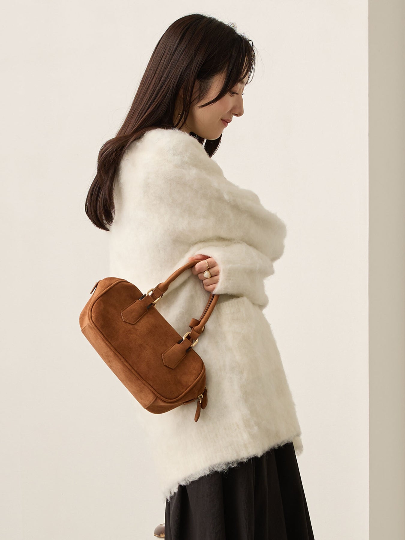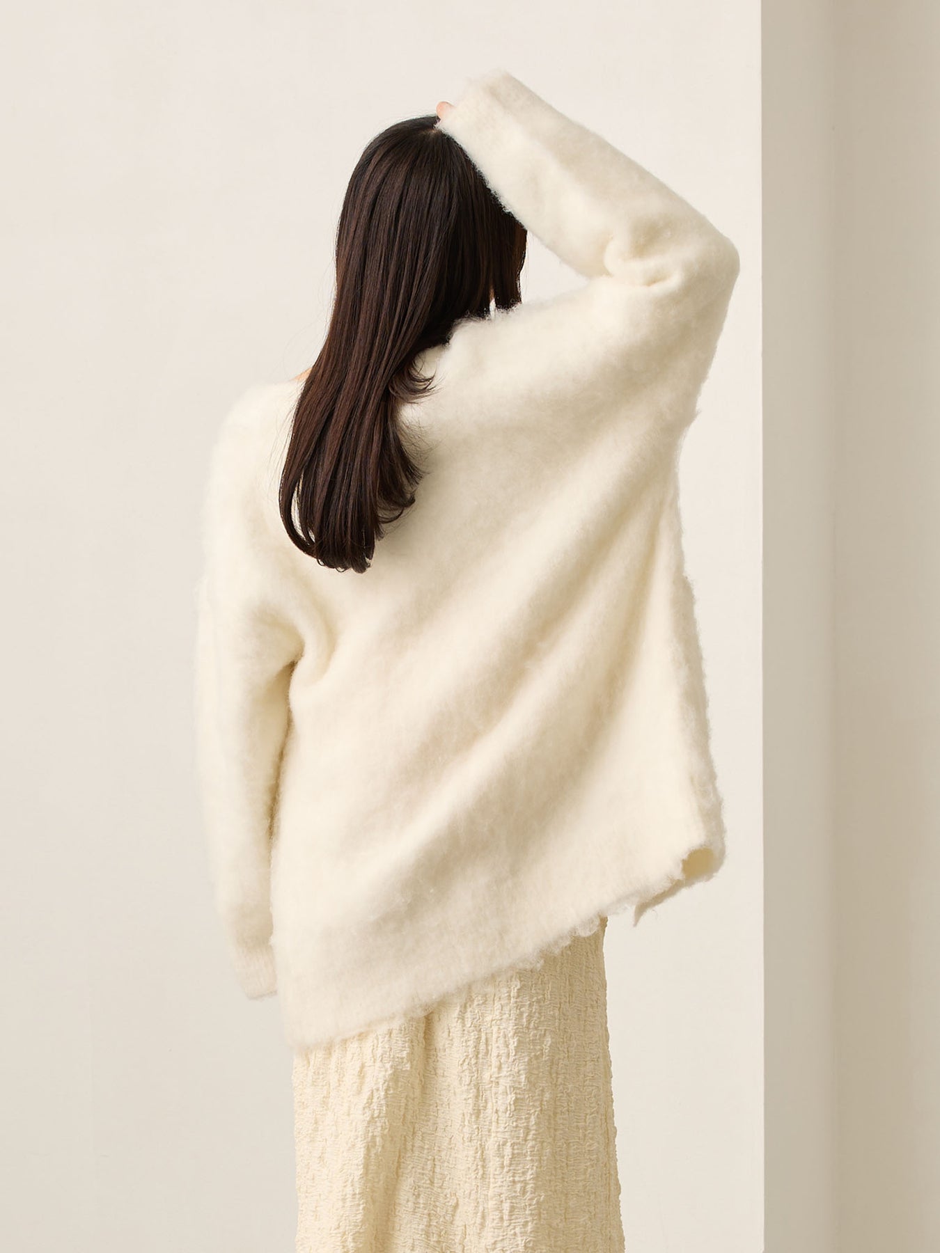 ゆったりとしたサイズ感とふわふわ素材が女性らしいカーディガン。