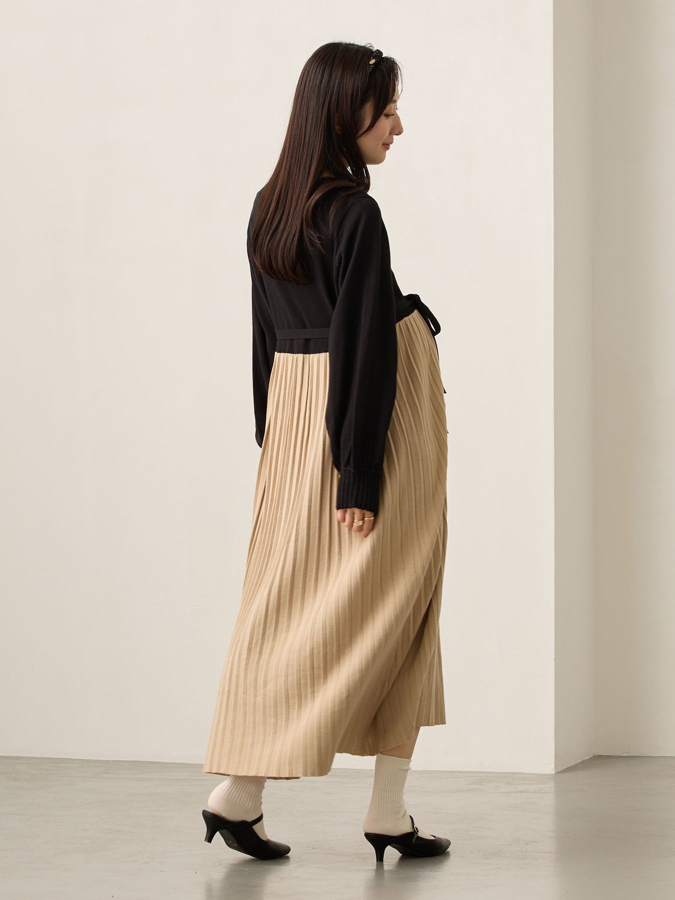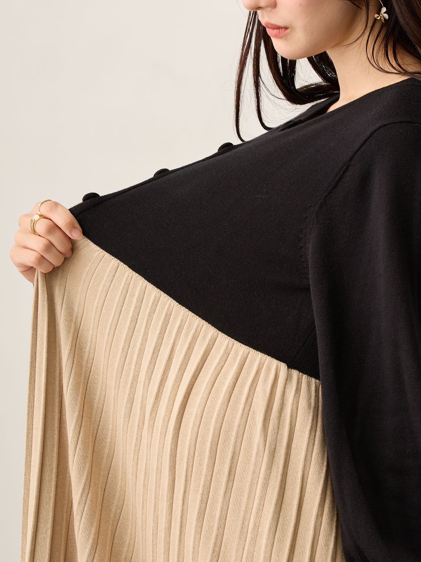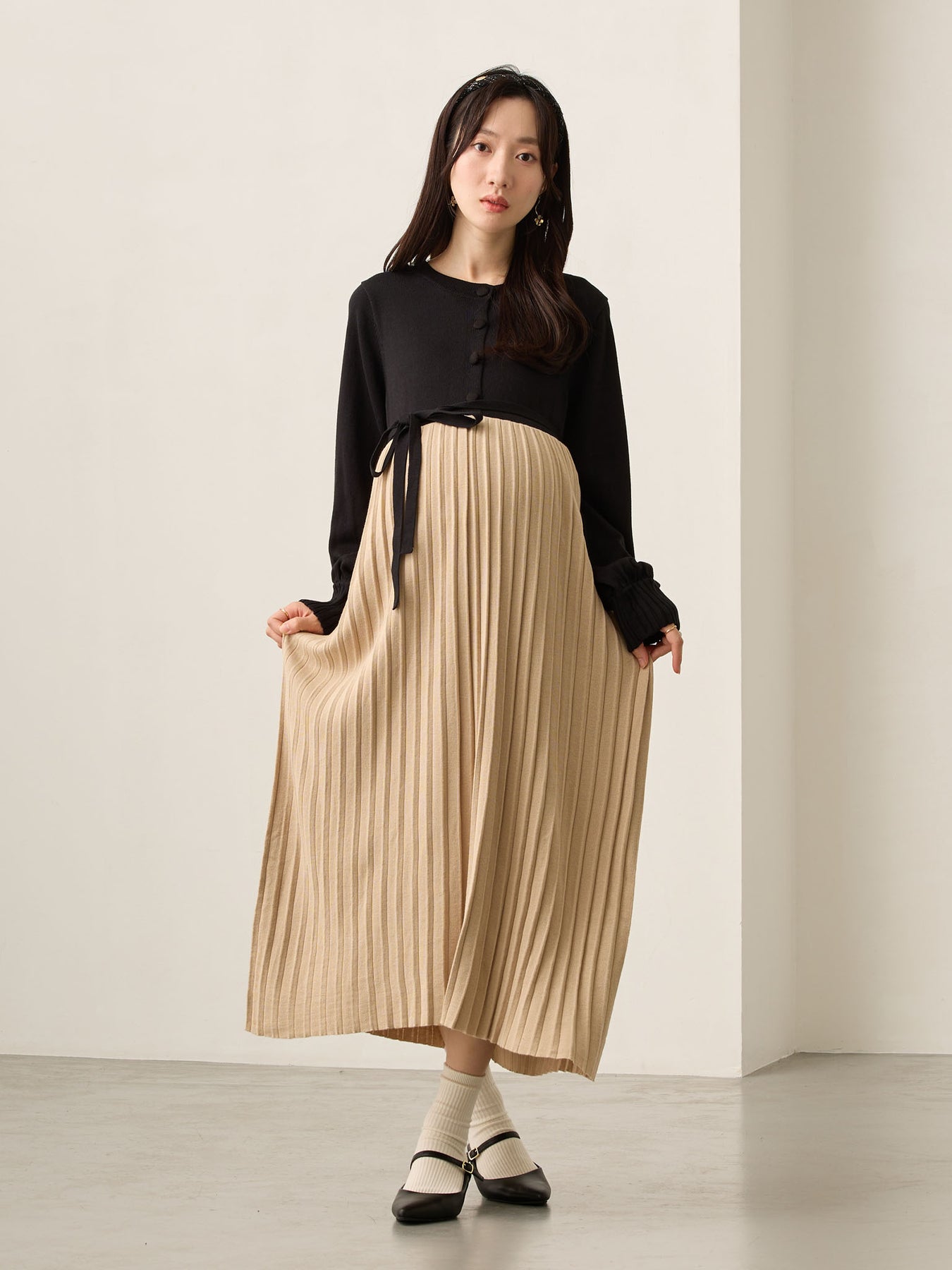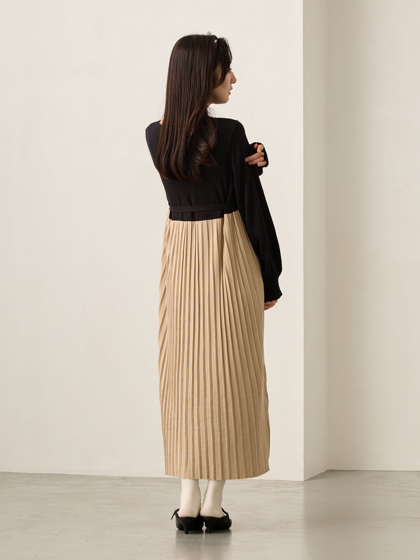 女性らしいシルエットを引き立てる、プリーツのニットワンピース。