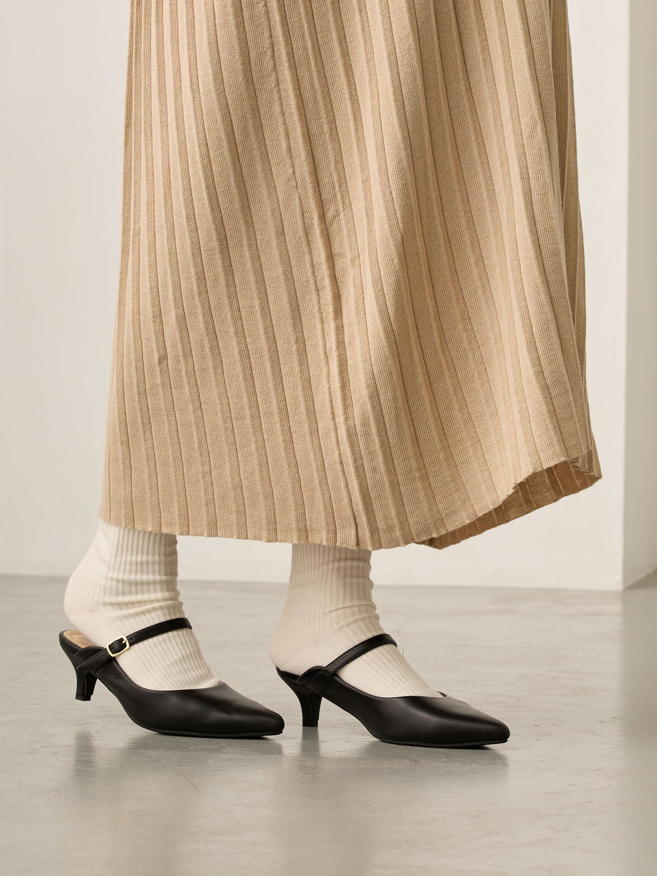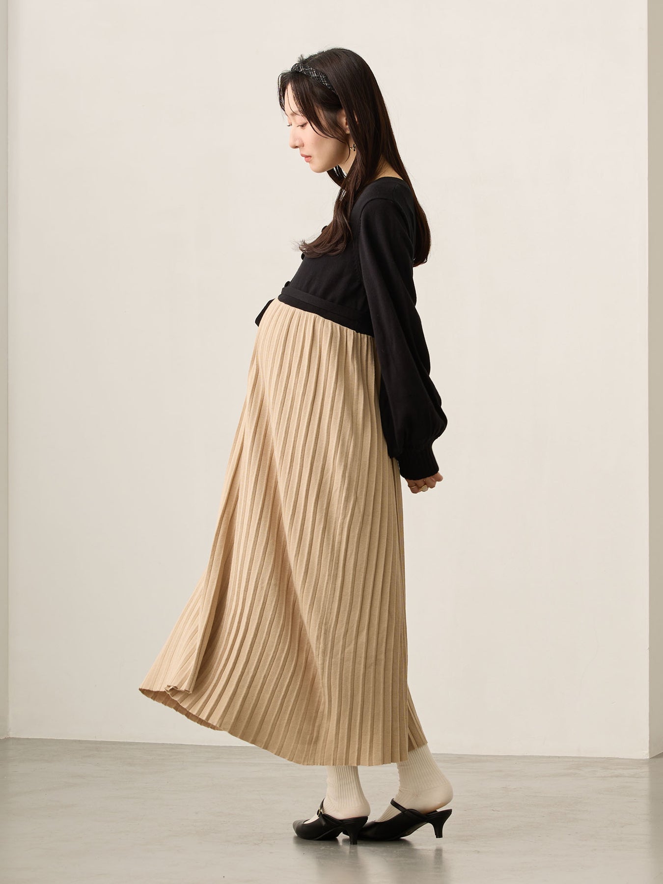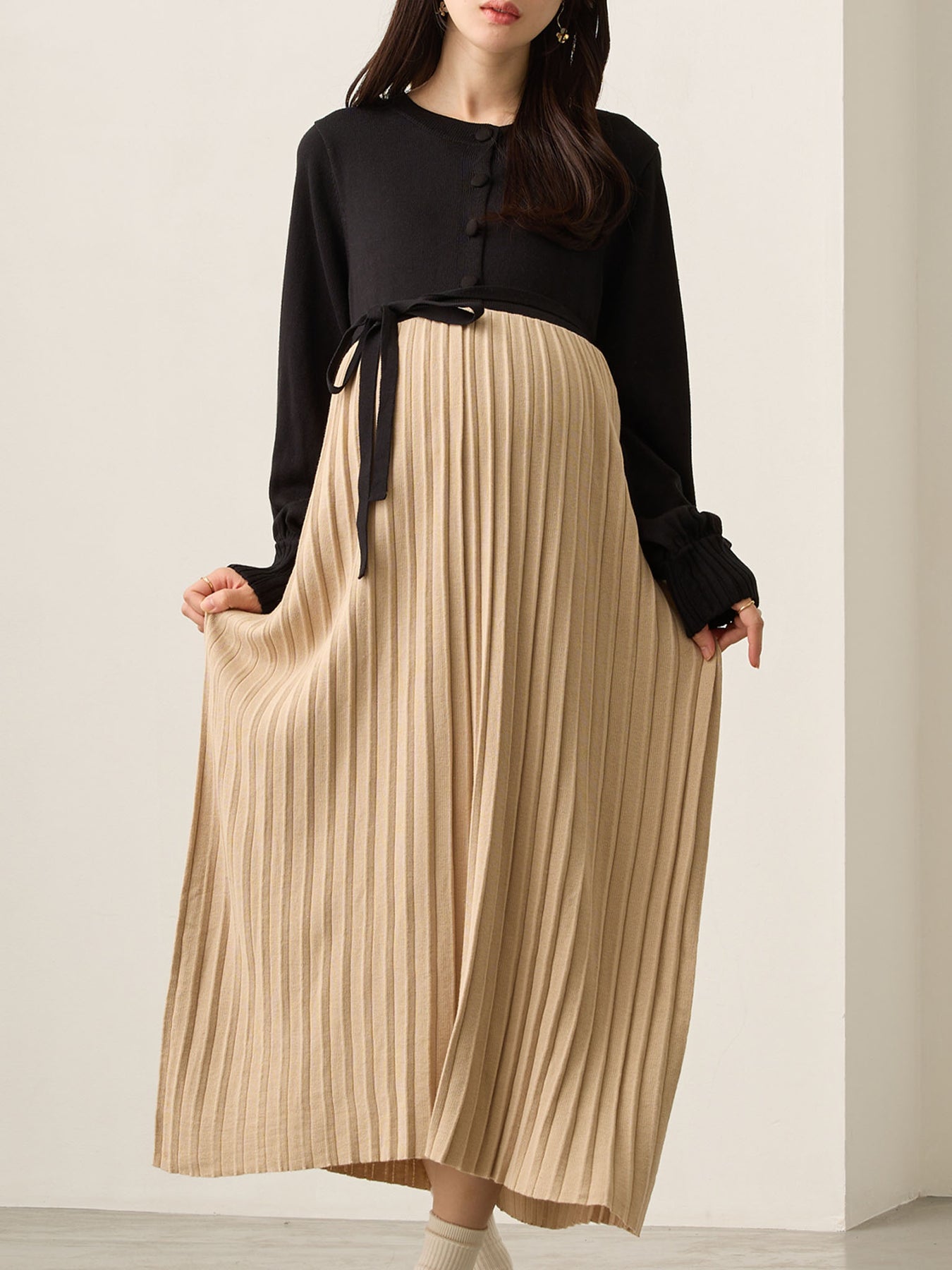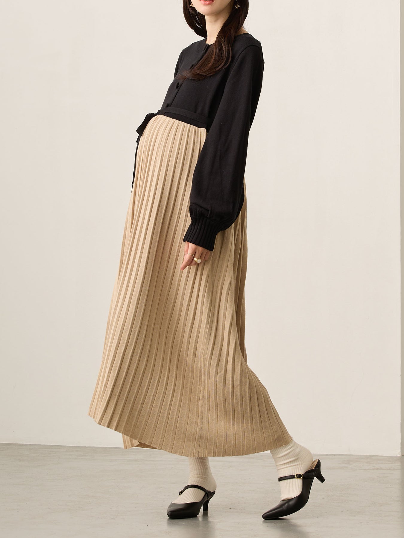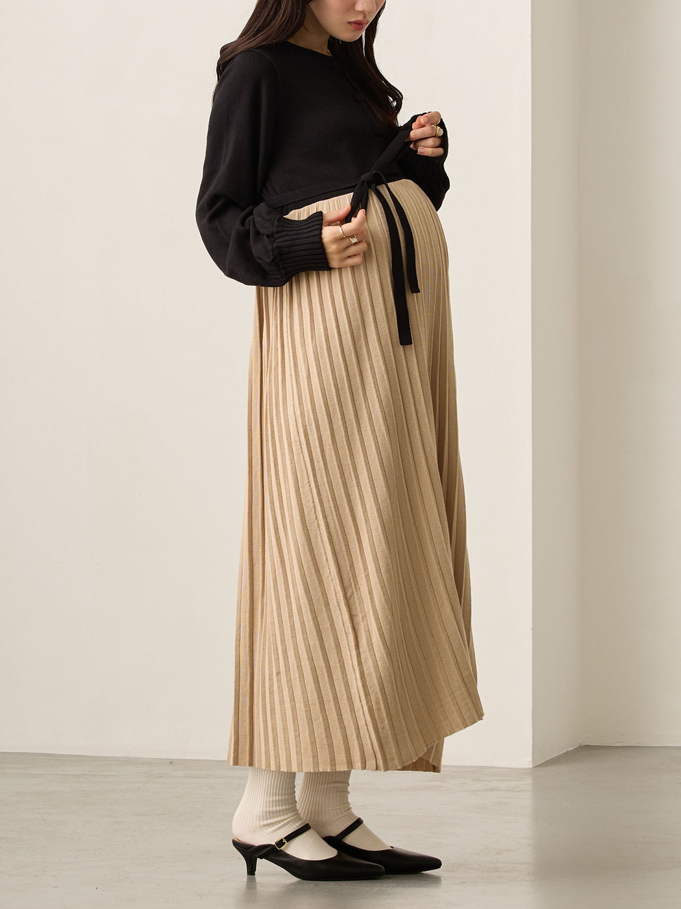 女性らしいシルエットを引き立てる、プリーツのニットワンピース。