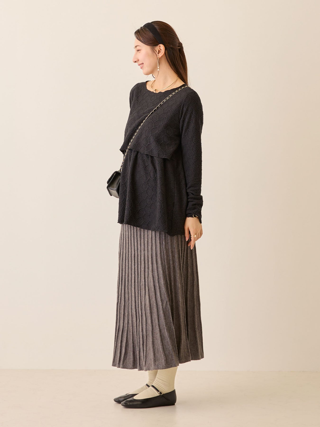 裾までしっかり立体感のあるプリーツで、お出かけコーデにもキレイ見えするアイテムです。