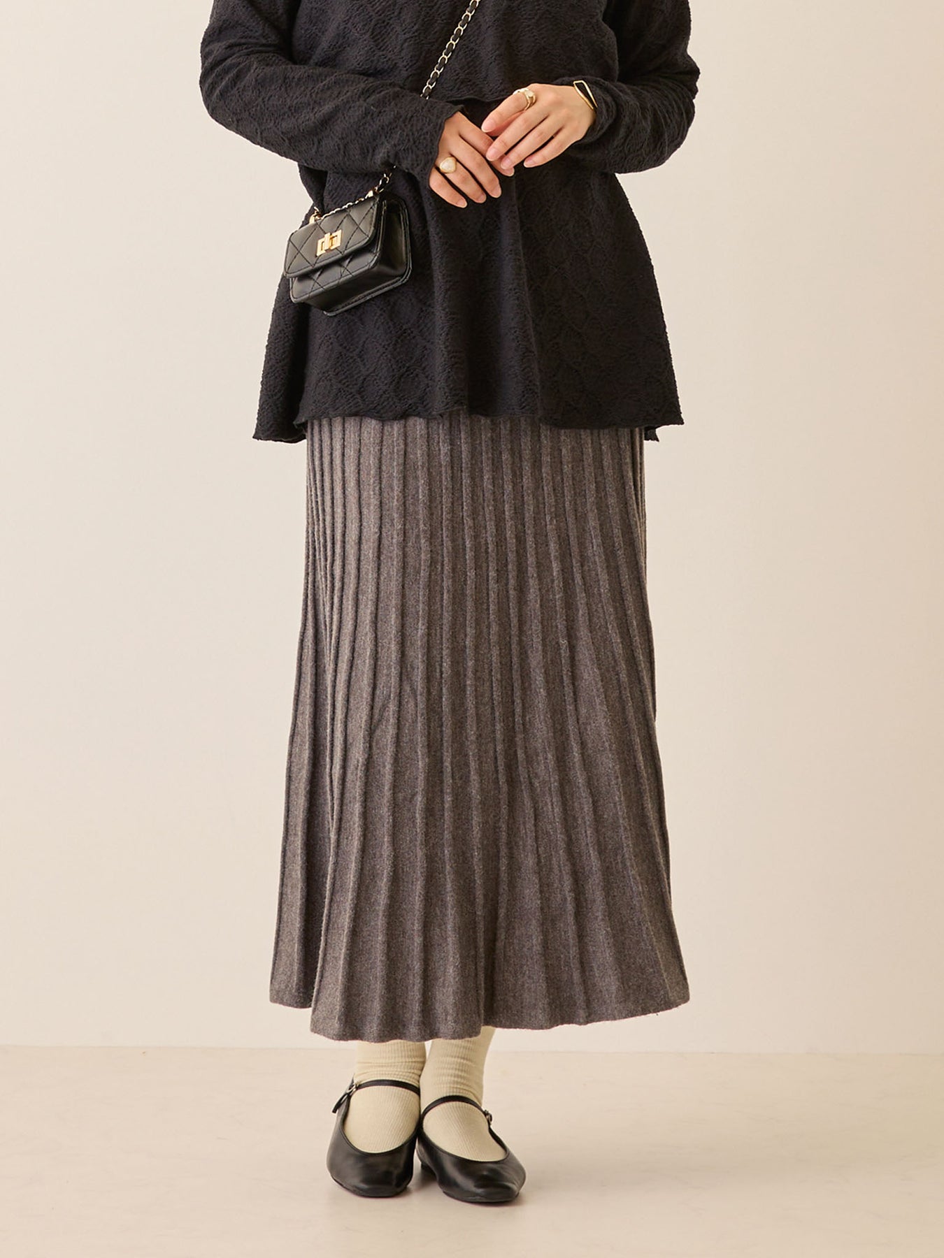 ◆お腹を締め付けずゆったりあたたかいニットプリーツスカート◆