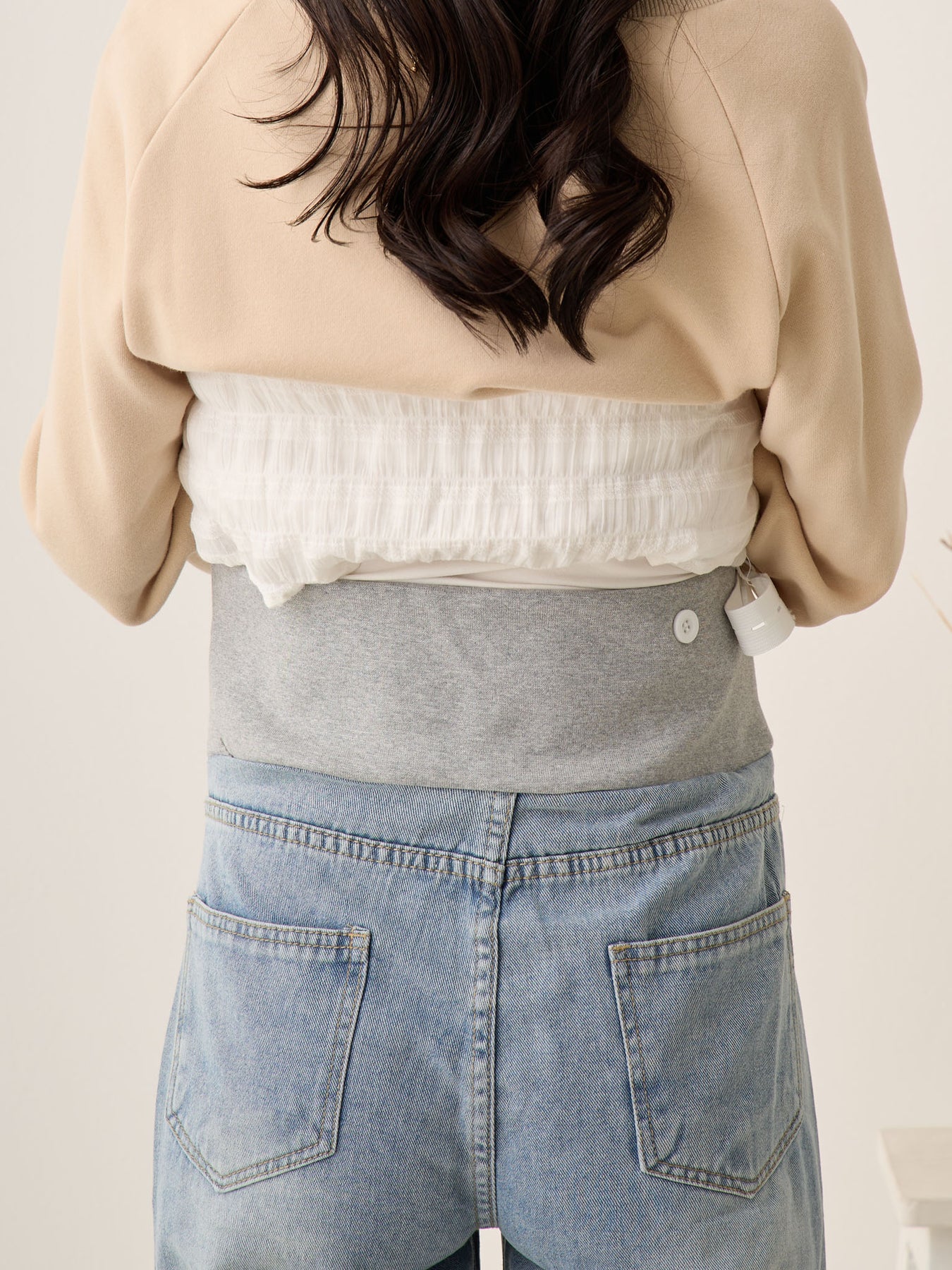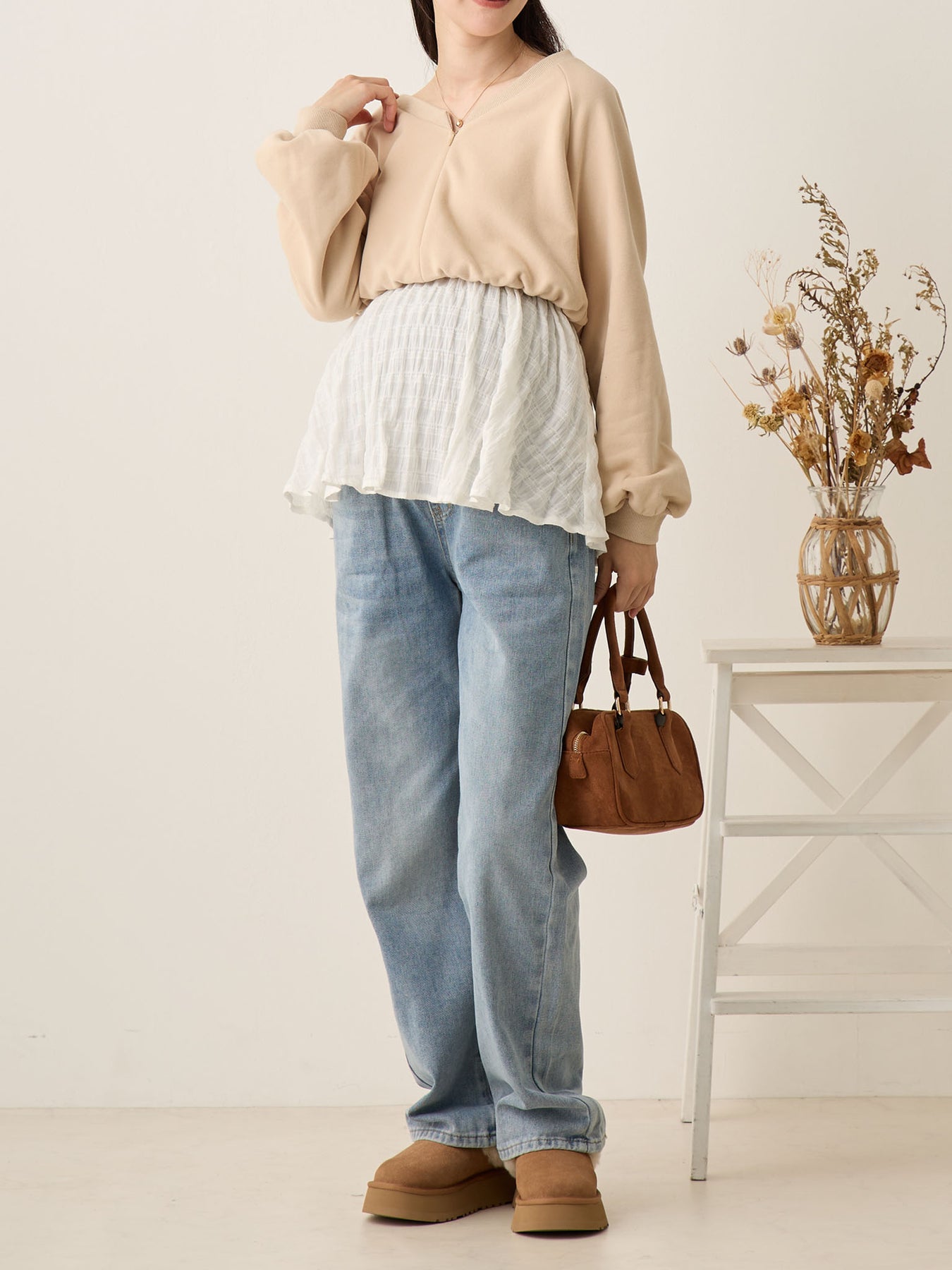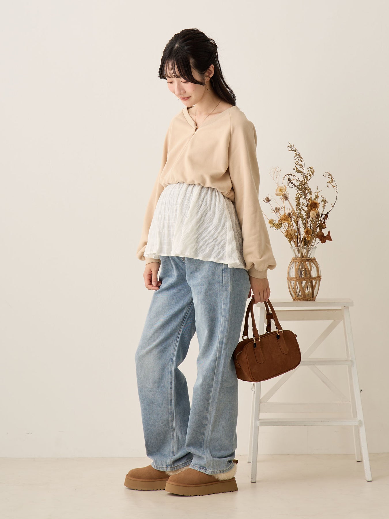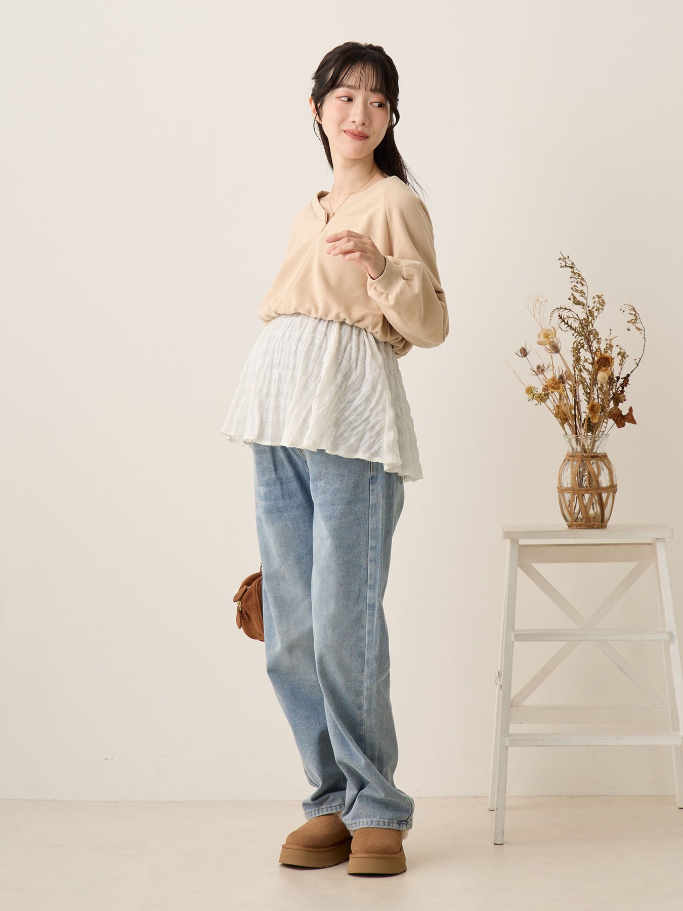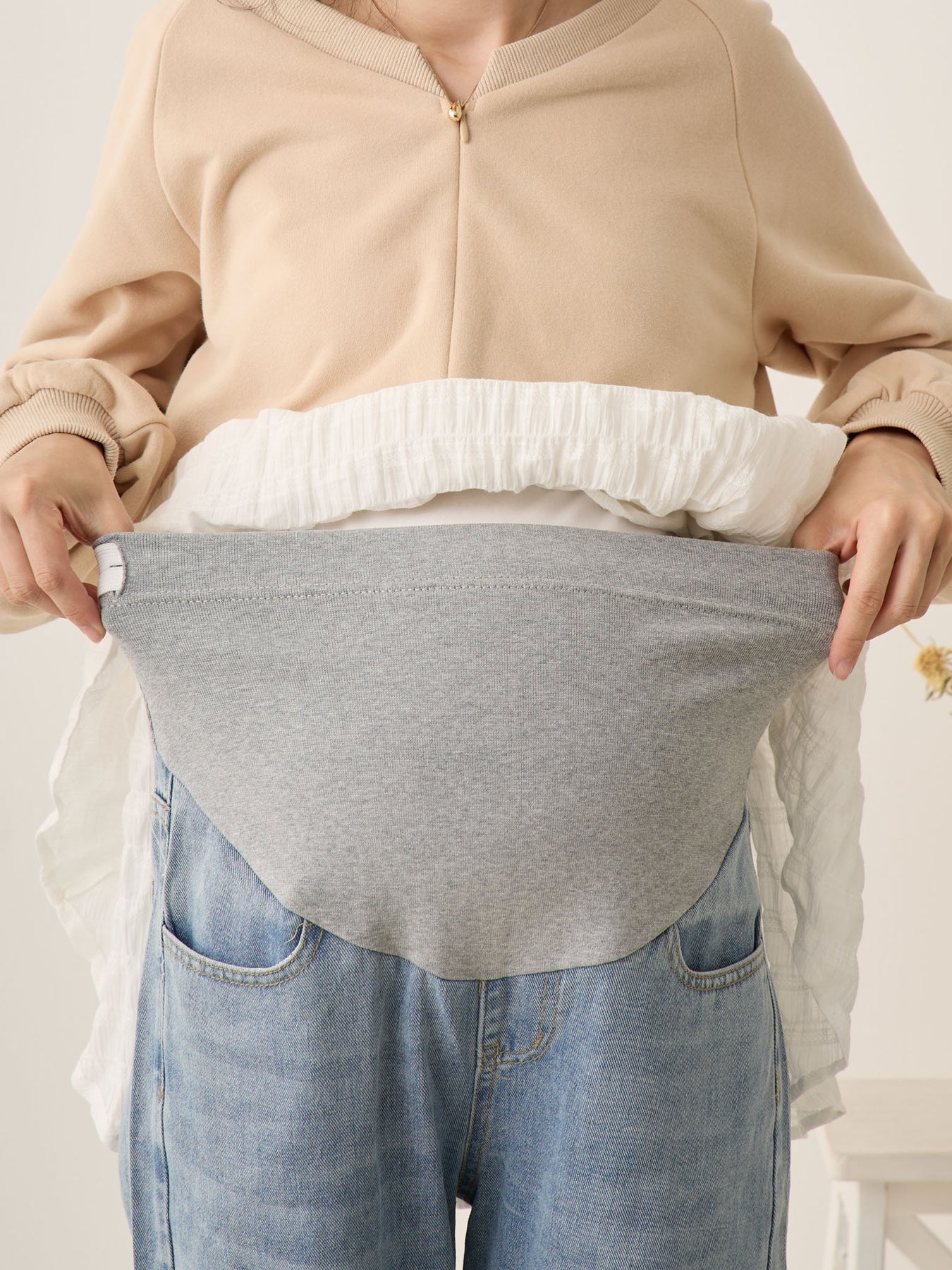 お腹周りはカットソー素材で伸縮性があり、お腹に優しくフィット。