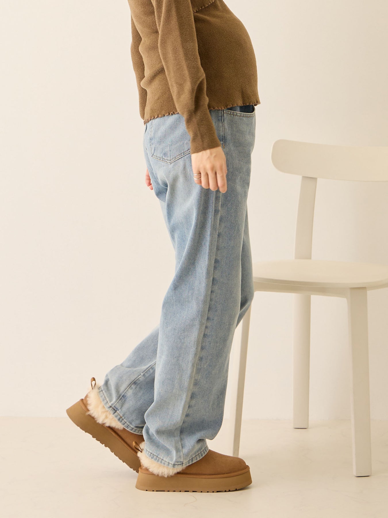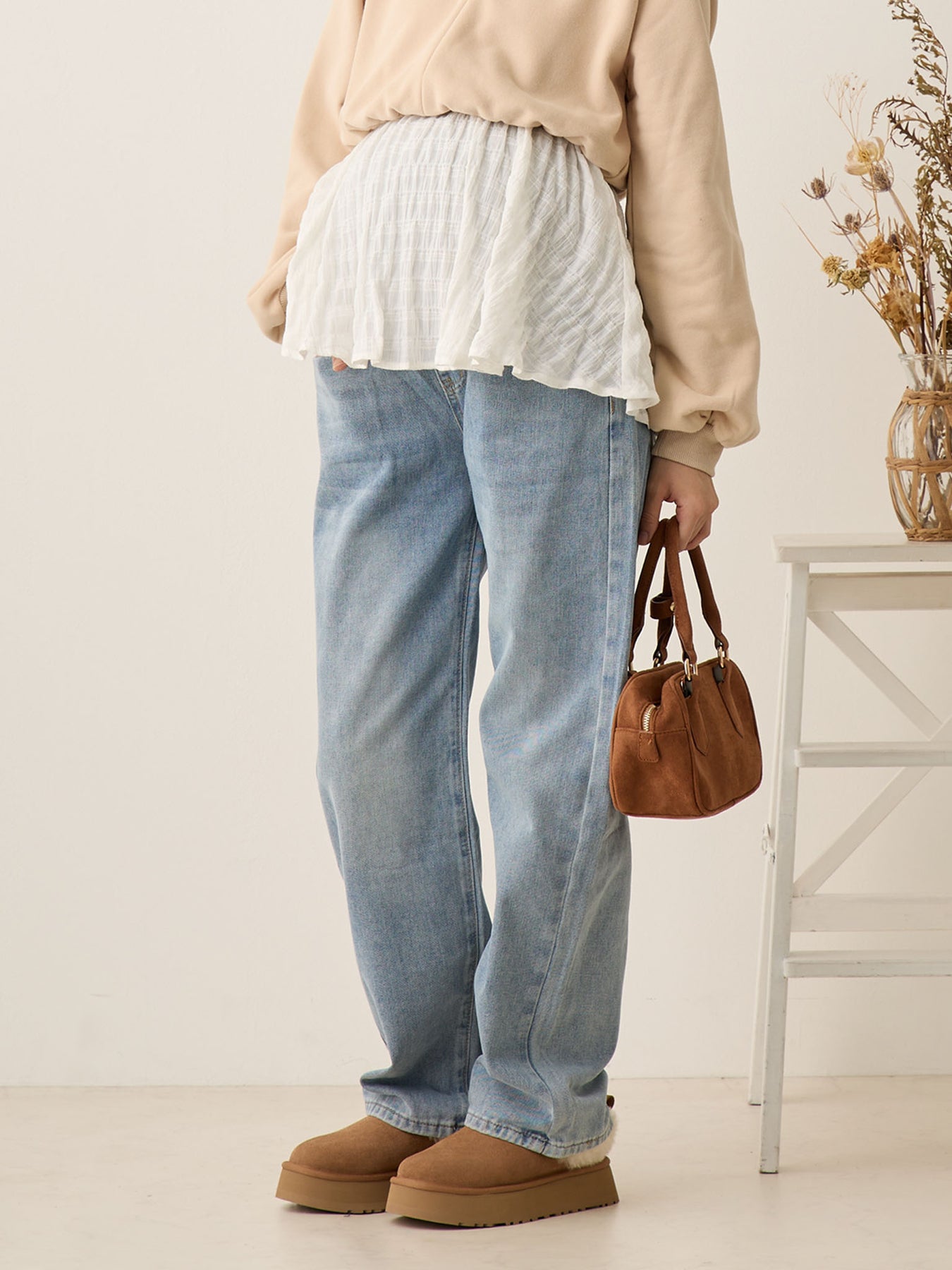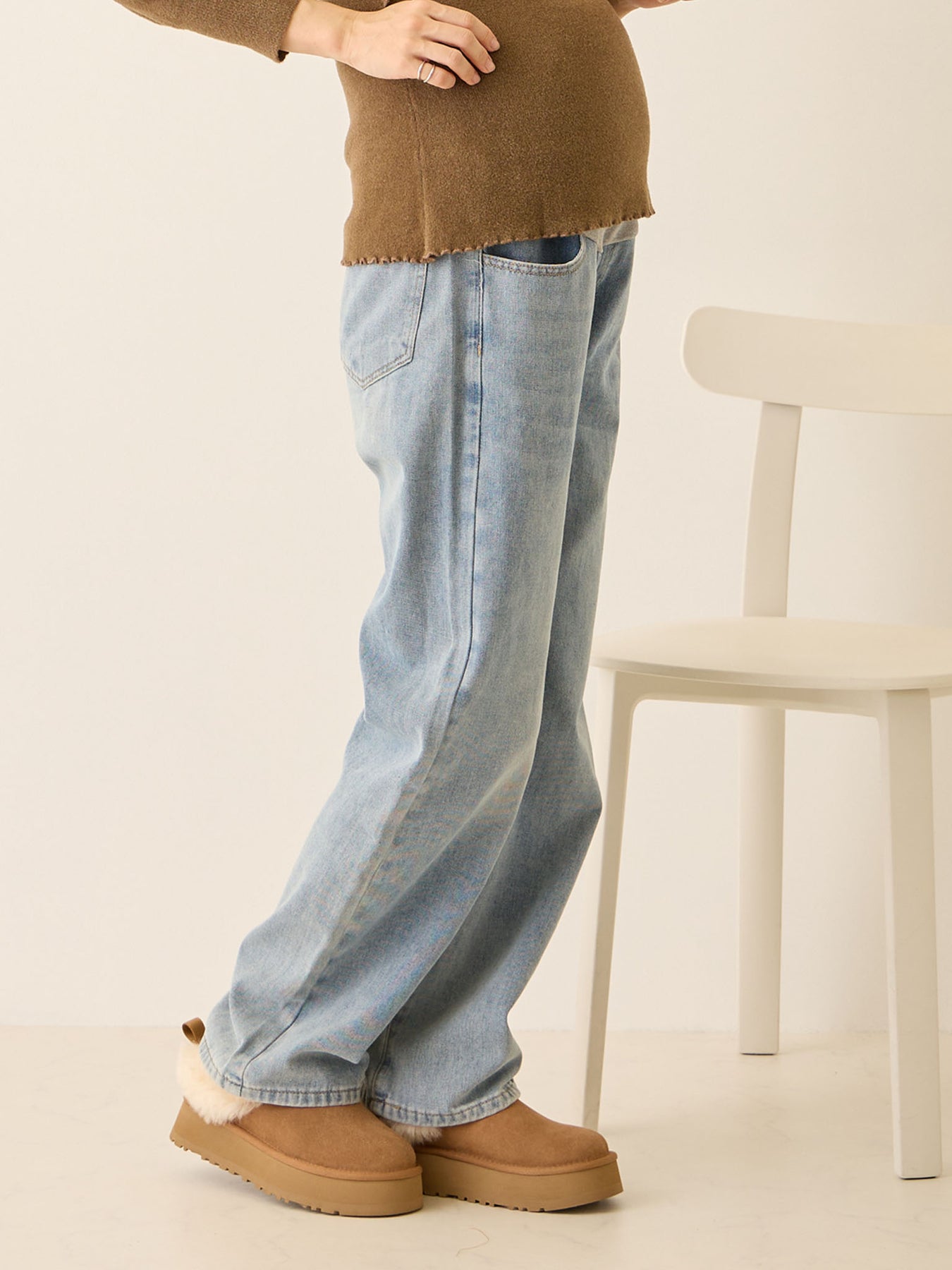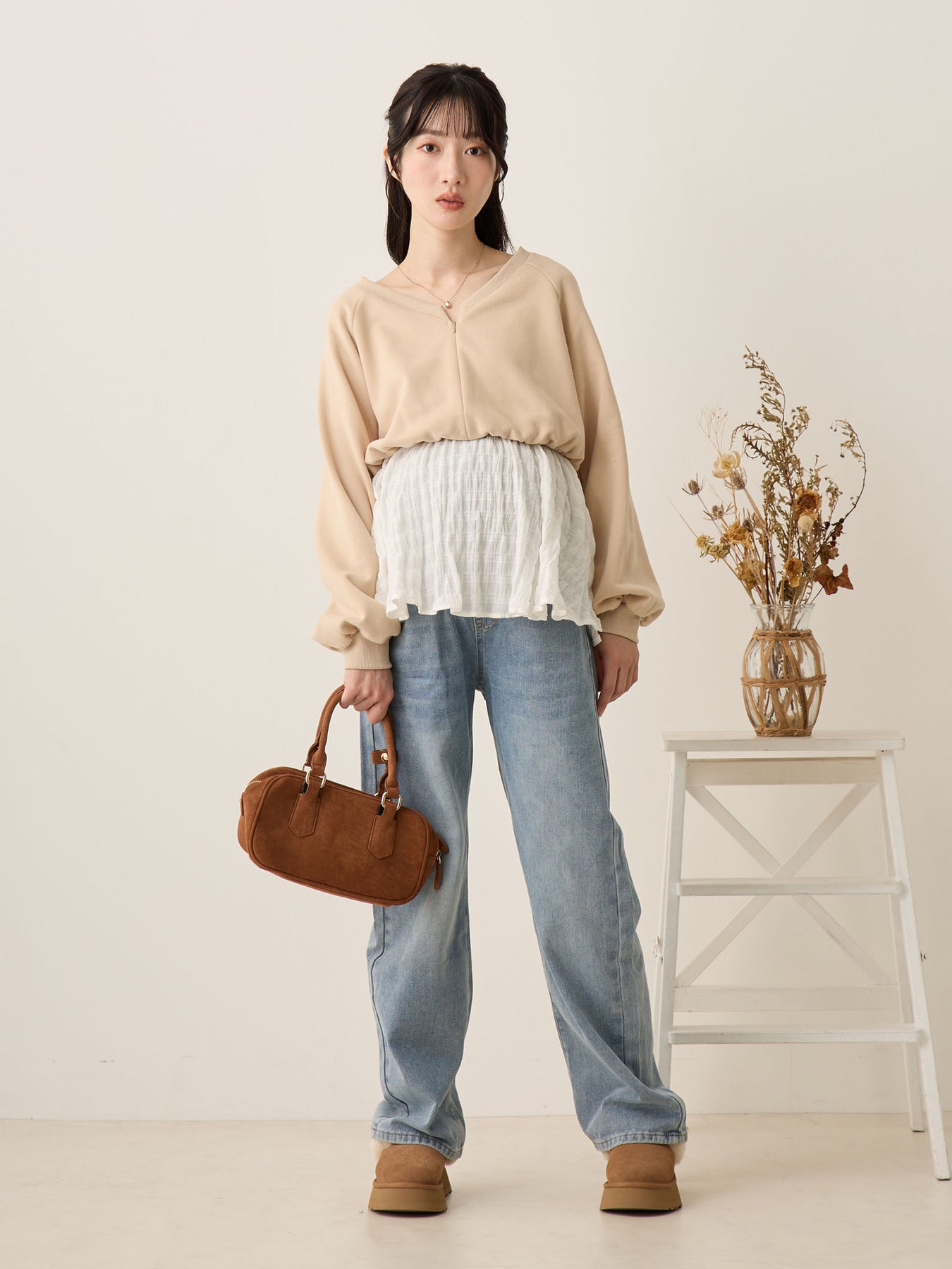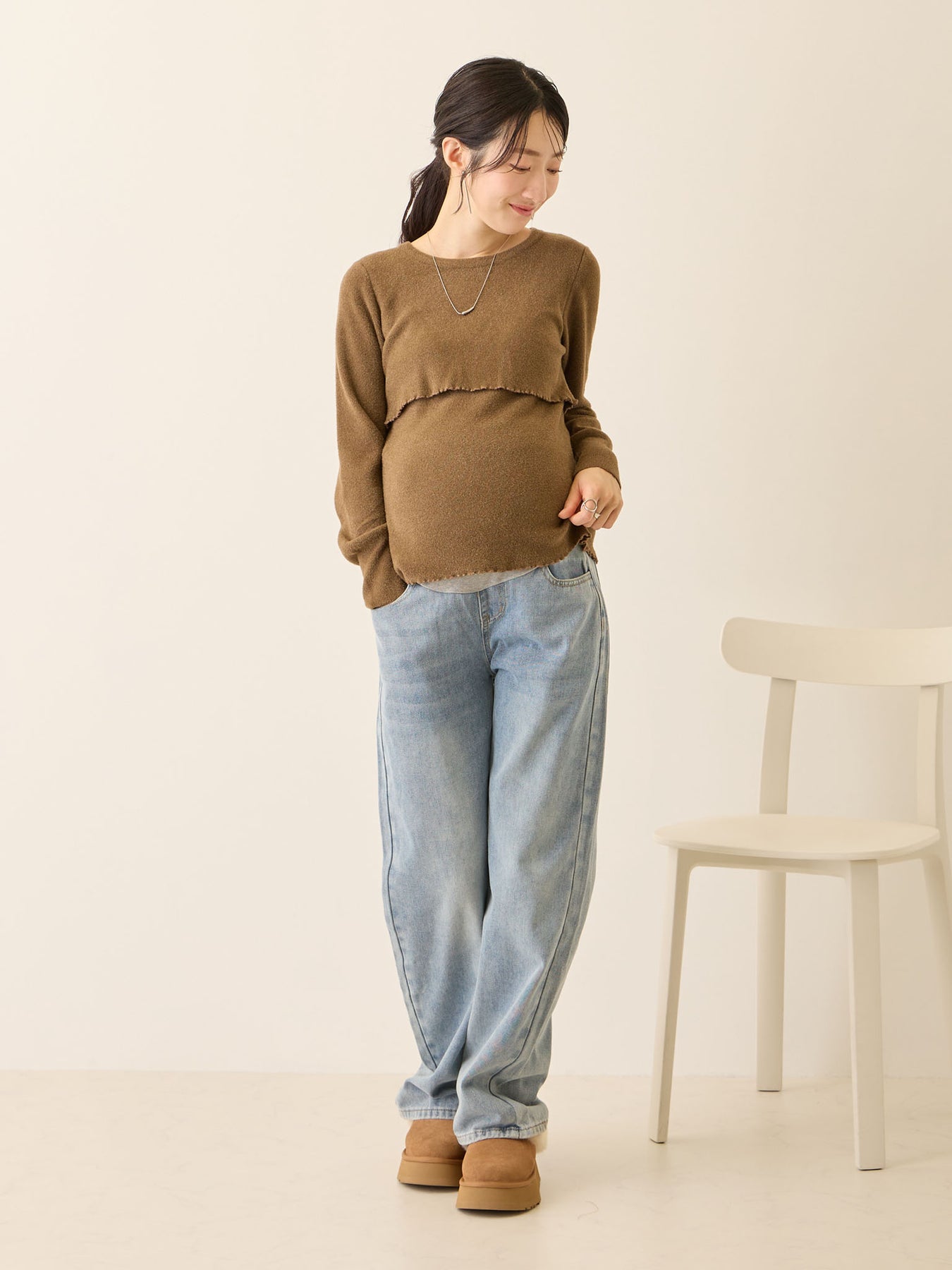 お腹周りはカットソー素材で伸縮性があり、お腹に優しくフィット。