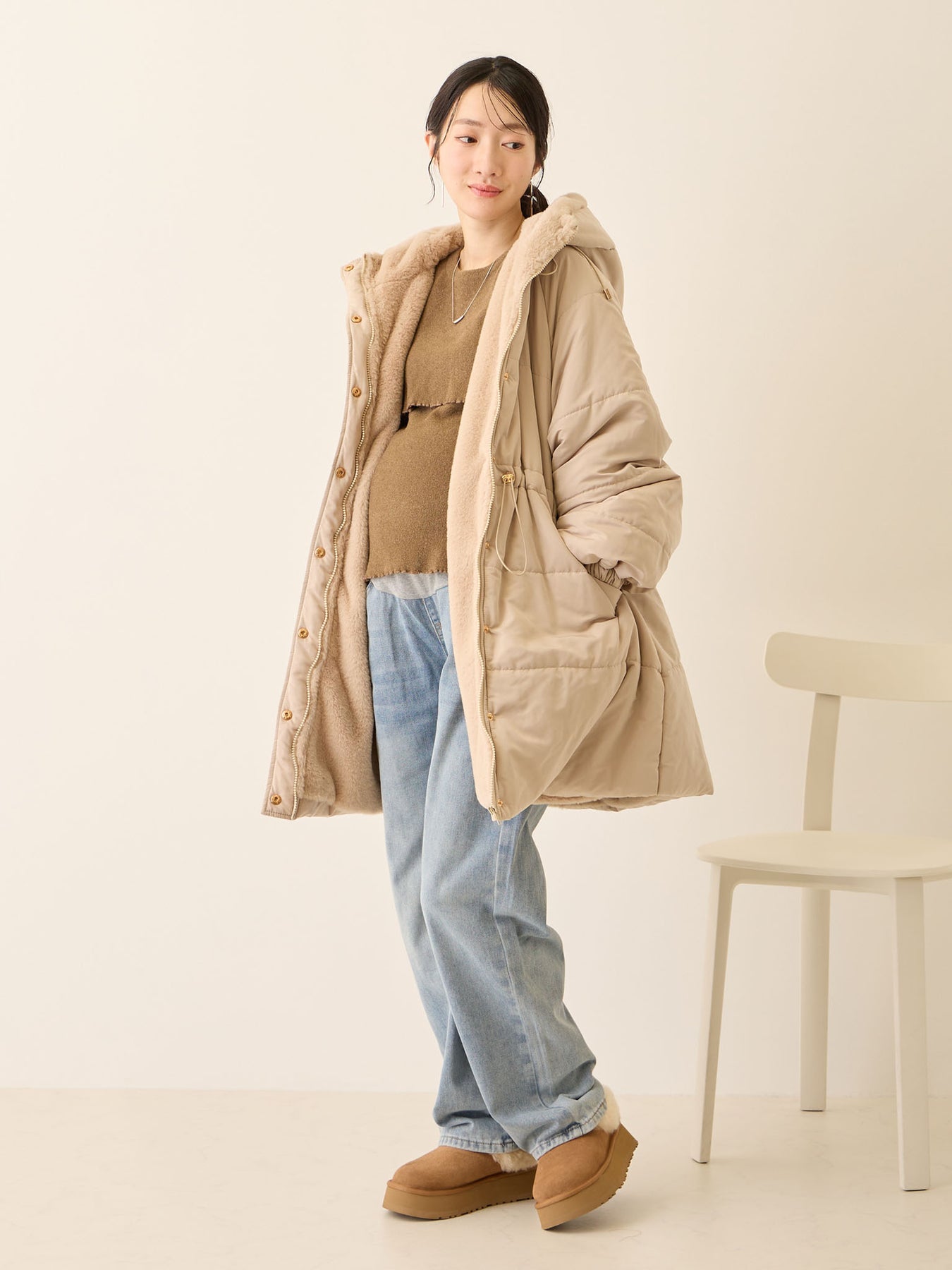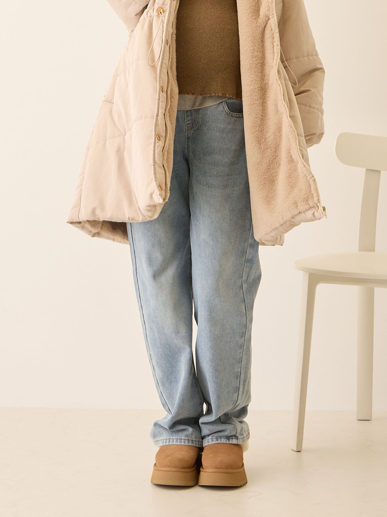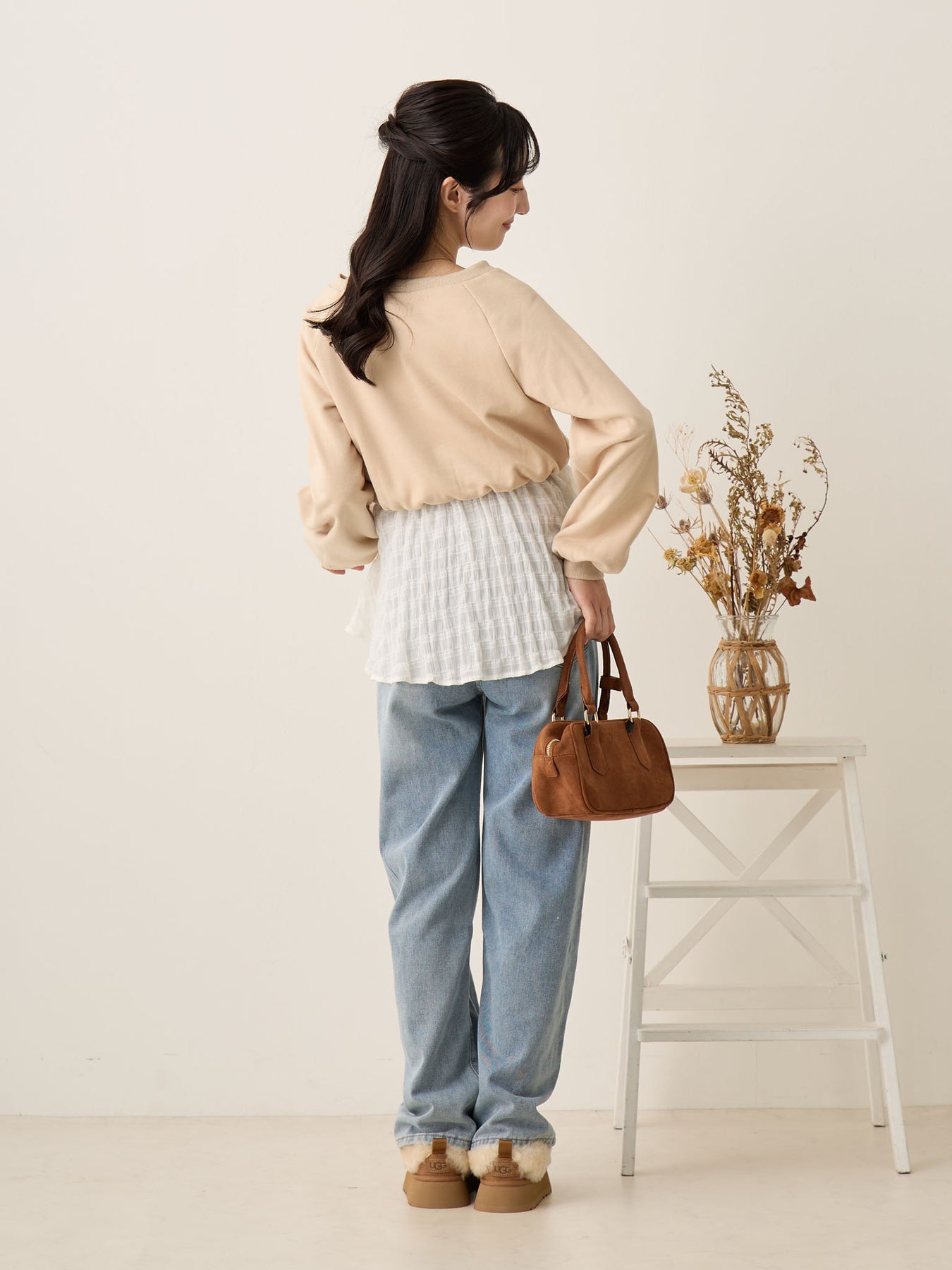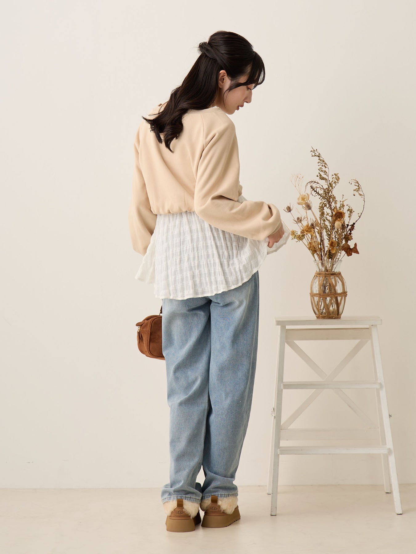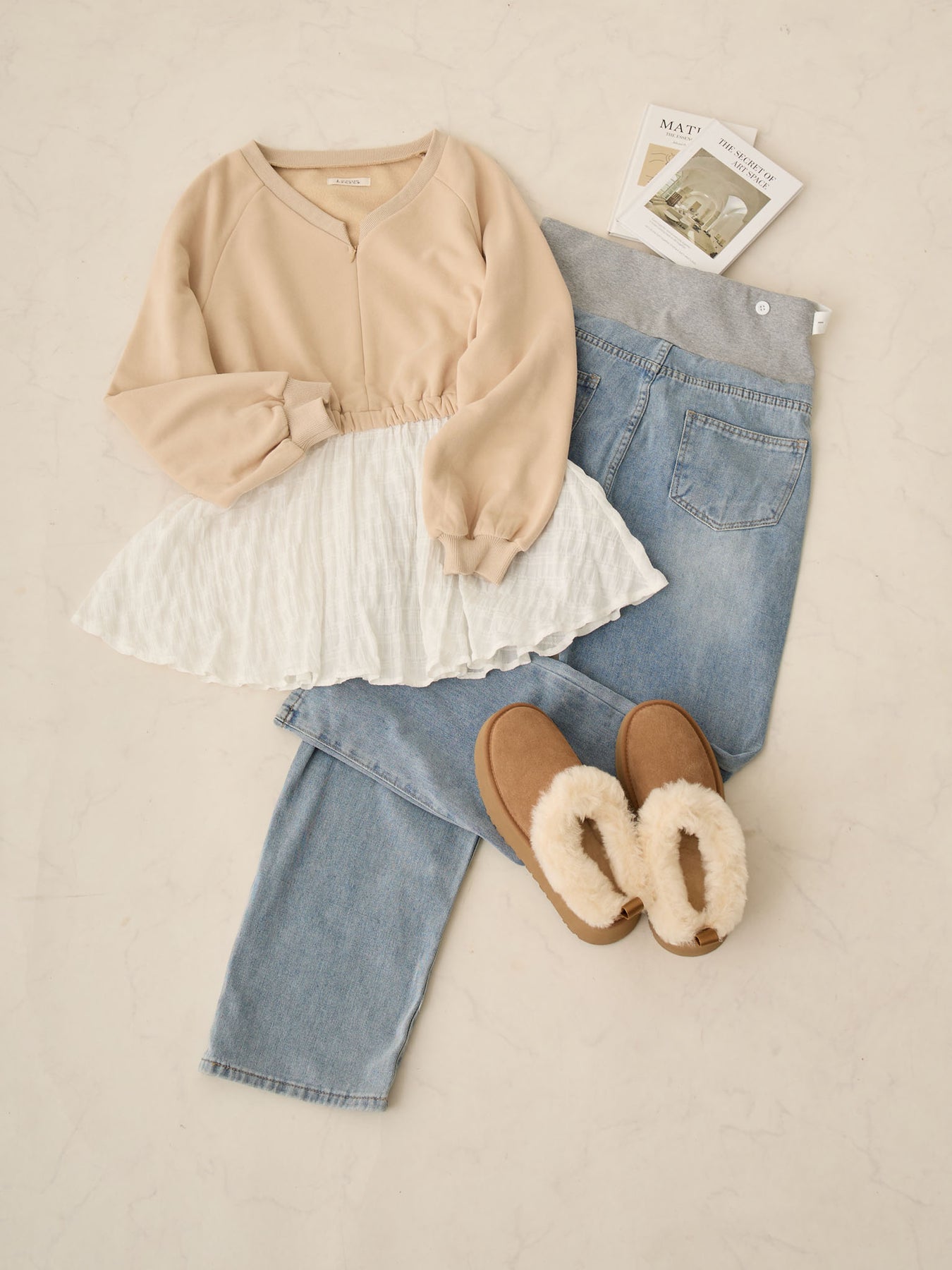 お腹周りはカットソー素材で伸縮性があり、お腹に優しくフィット。