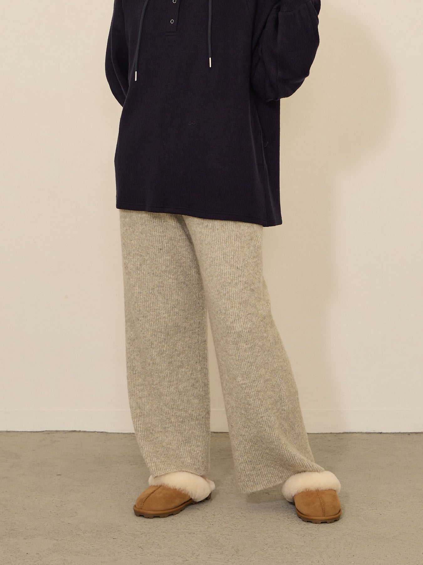 ・妊娠中のお腹を優しく包み込むのびのびリブニット素材のパンツ