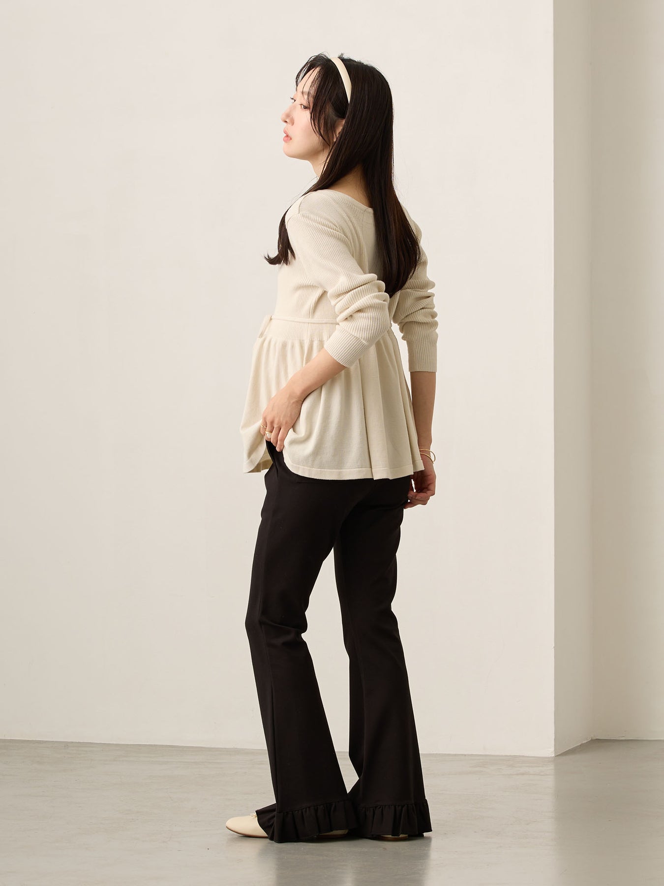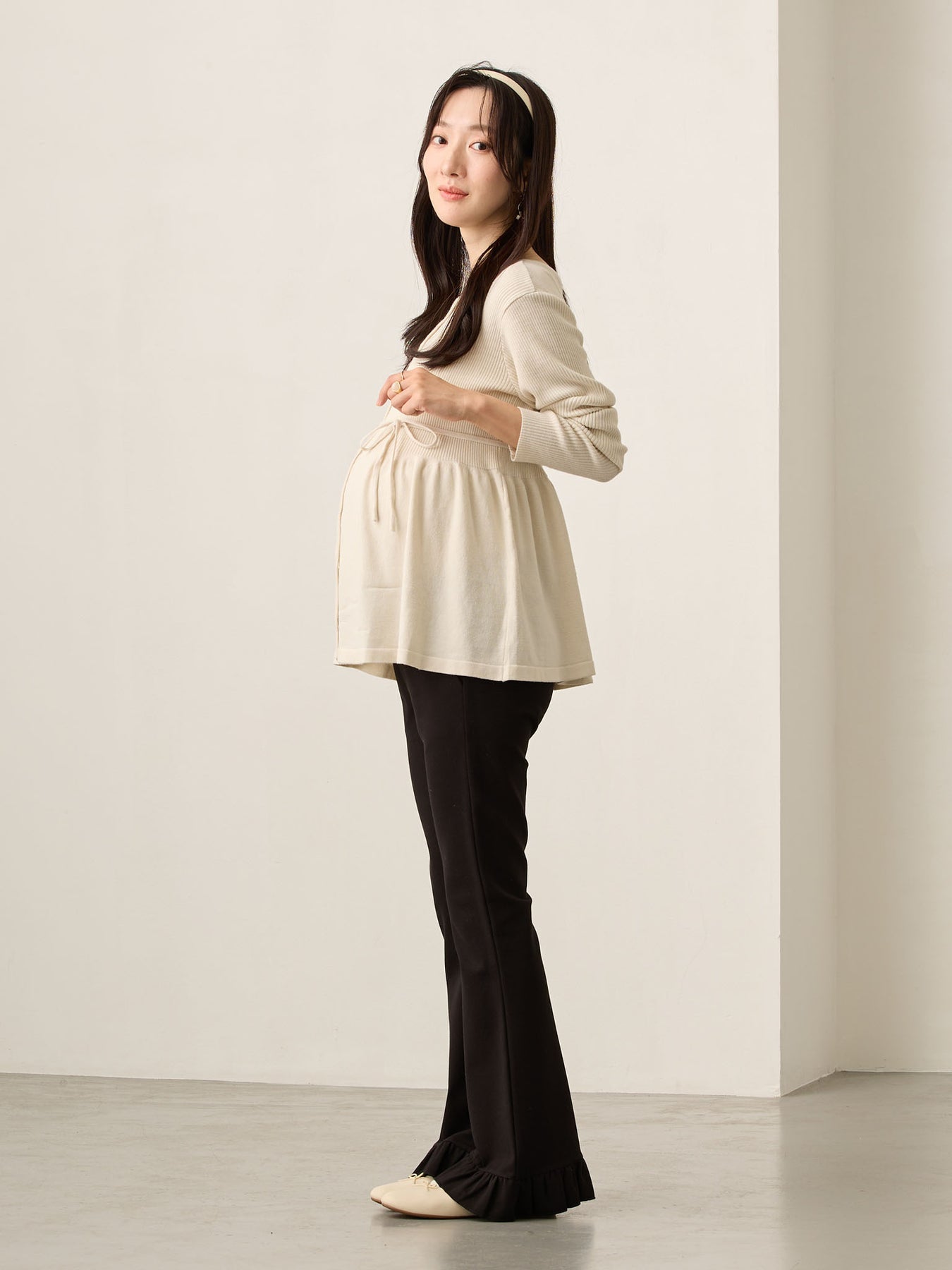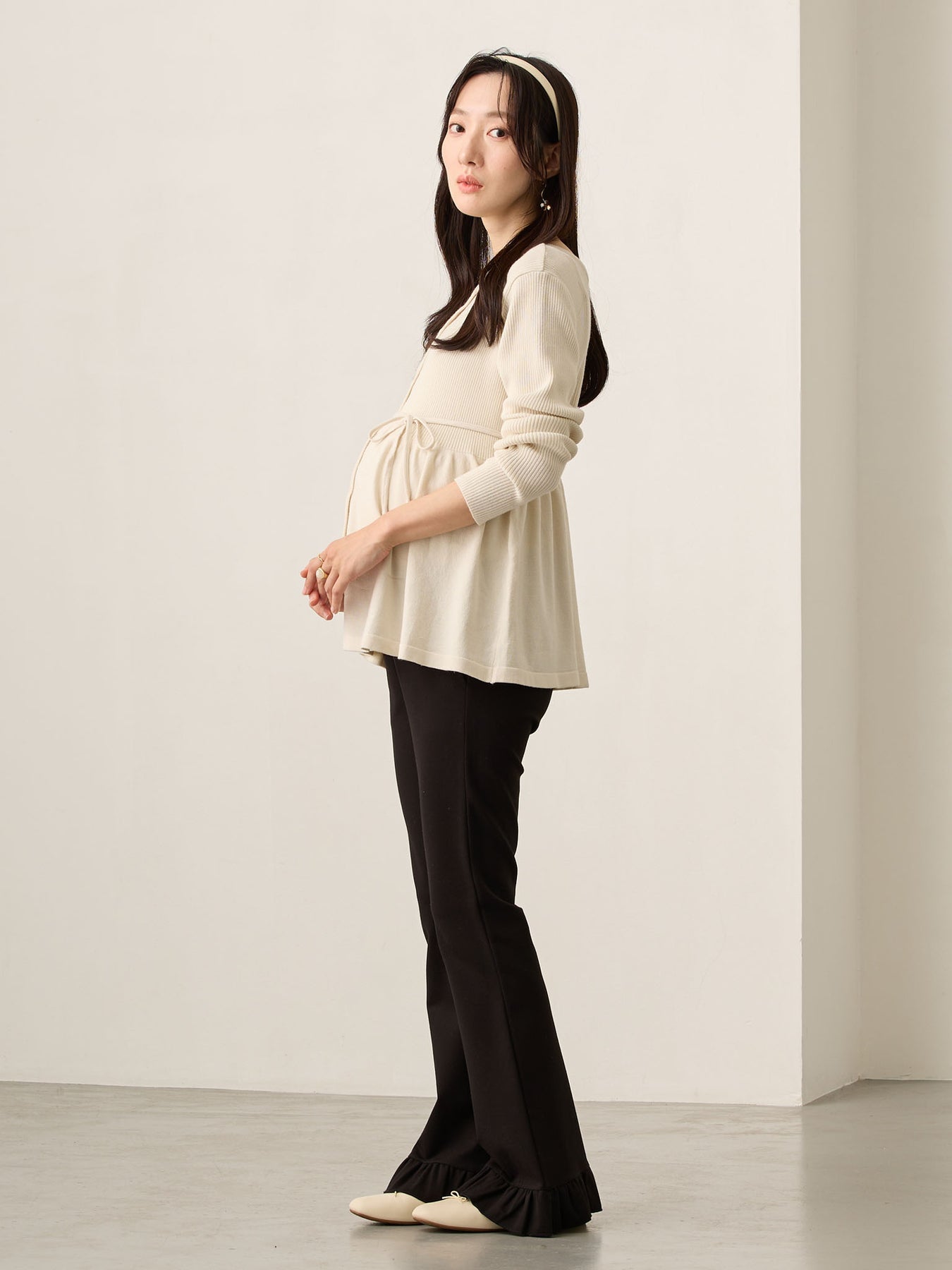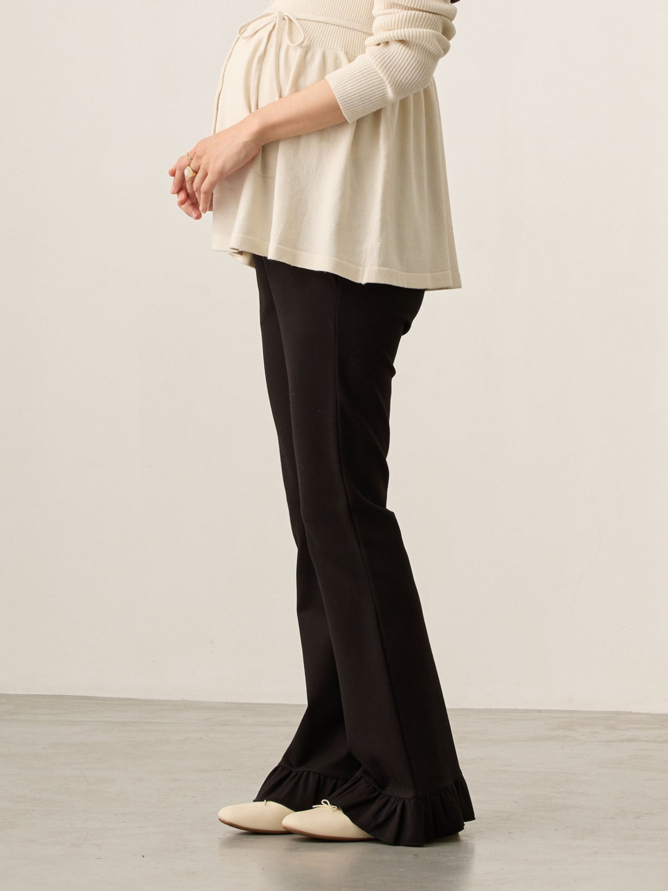 妊娠中や産後も綺麗なフレアラインが楽しめるパンツ。