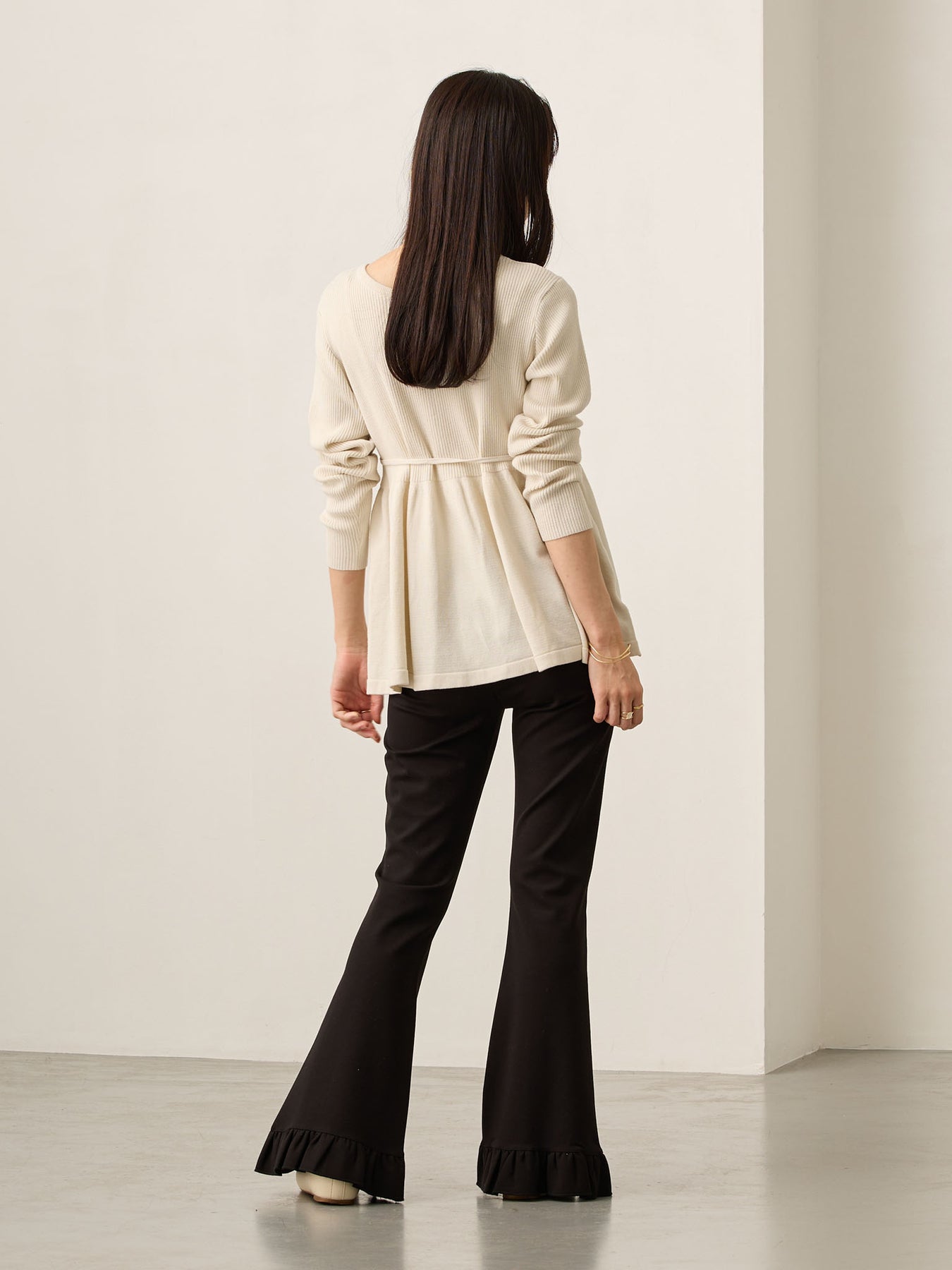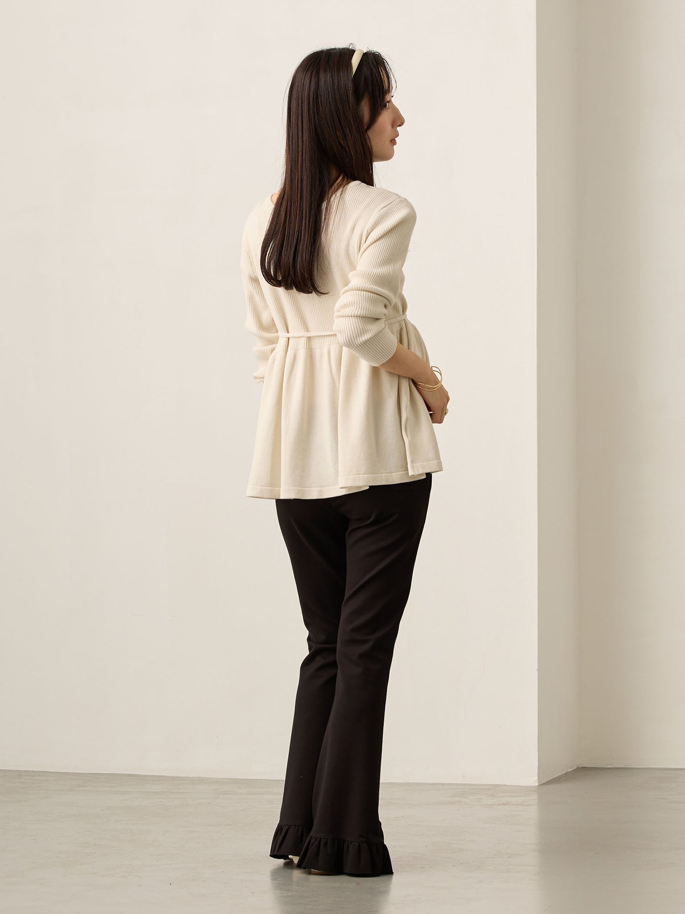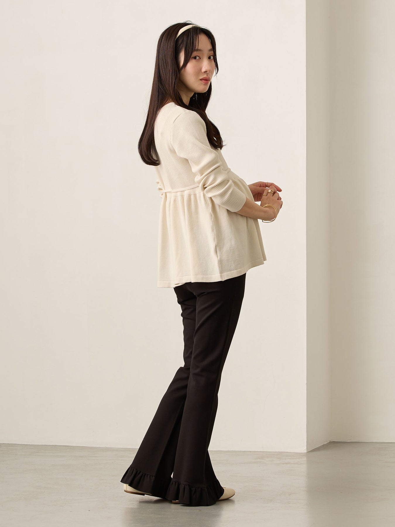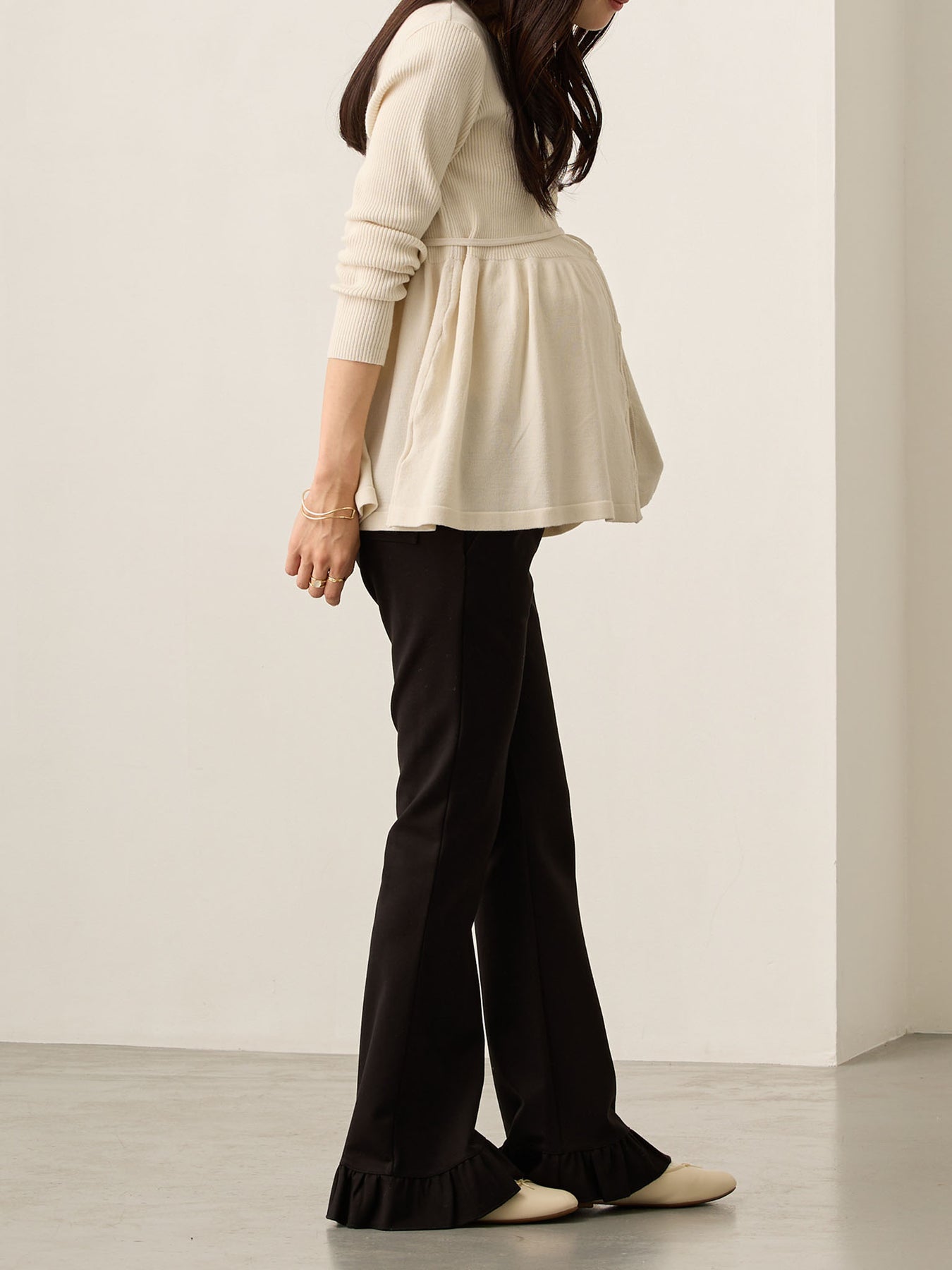 妊娠中や産後も綺麗なフレアラインが楽しめるパンツ。