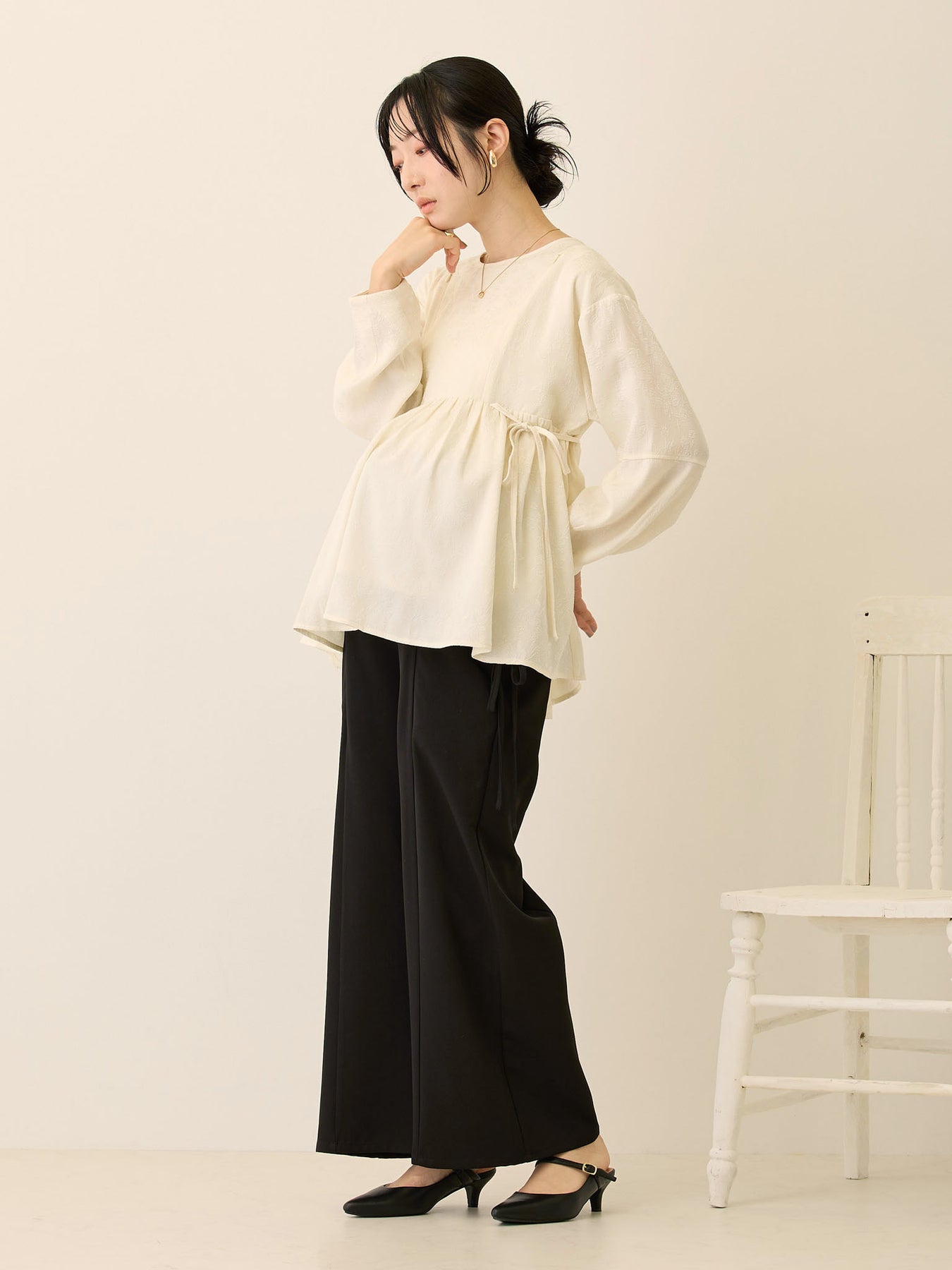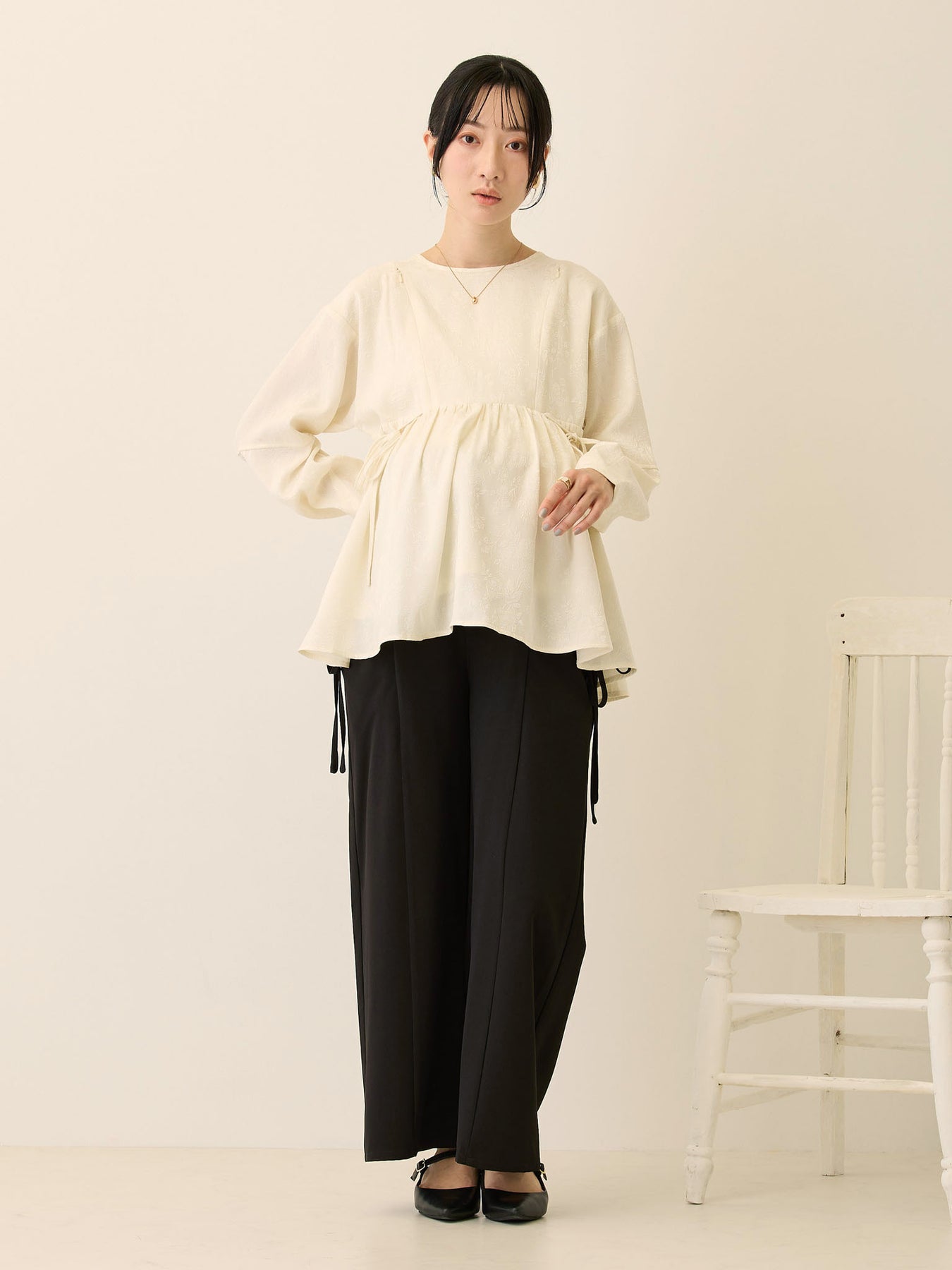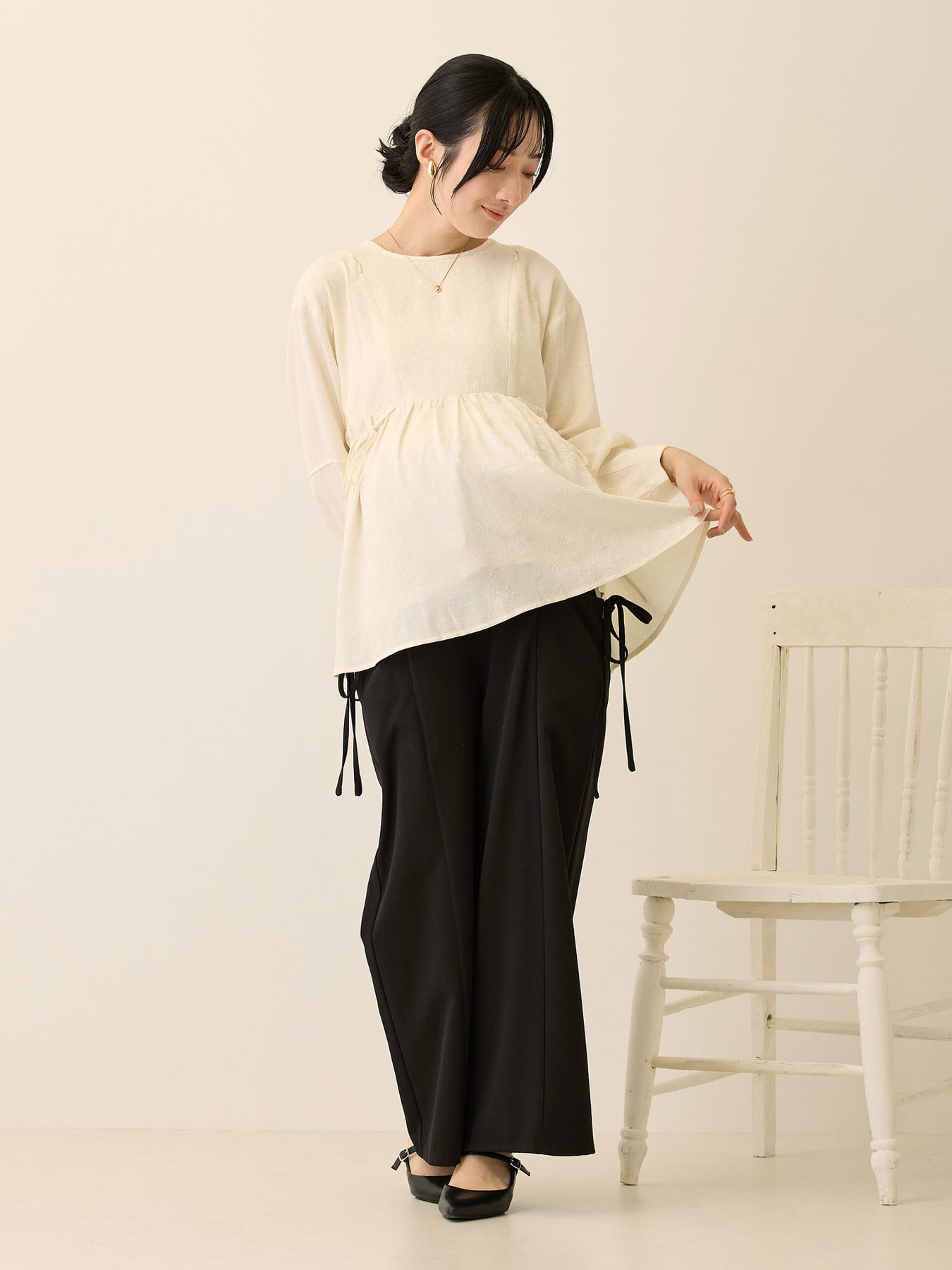 ウエストリボンも付属して、お腹サイズに合わせて自由に調整できます。