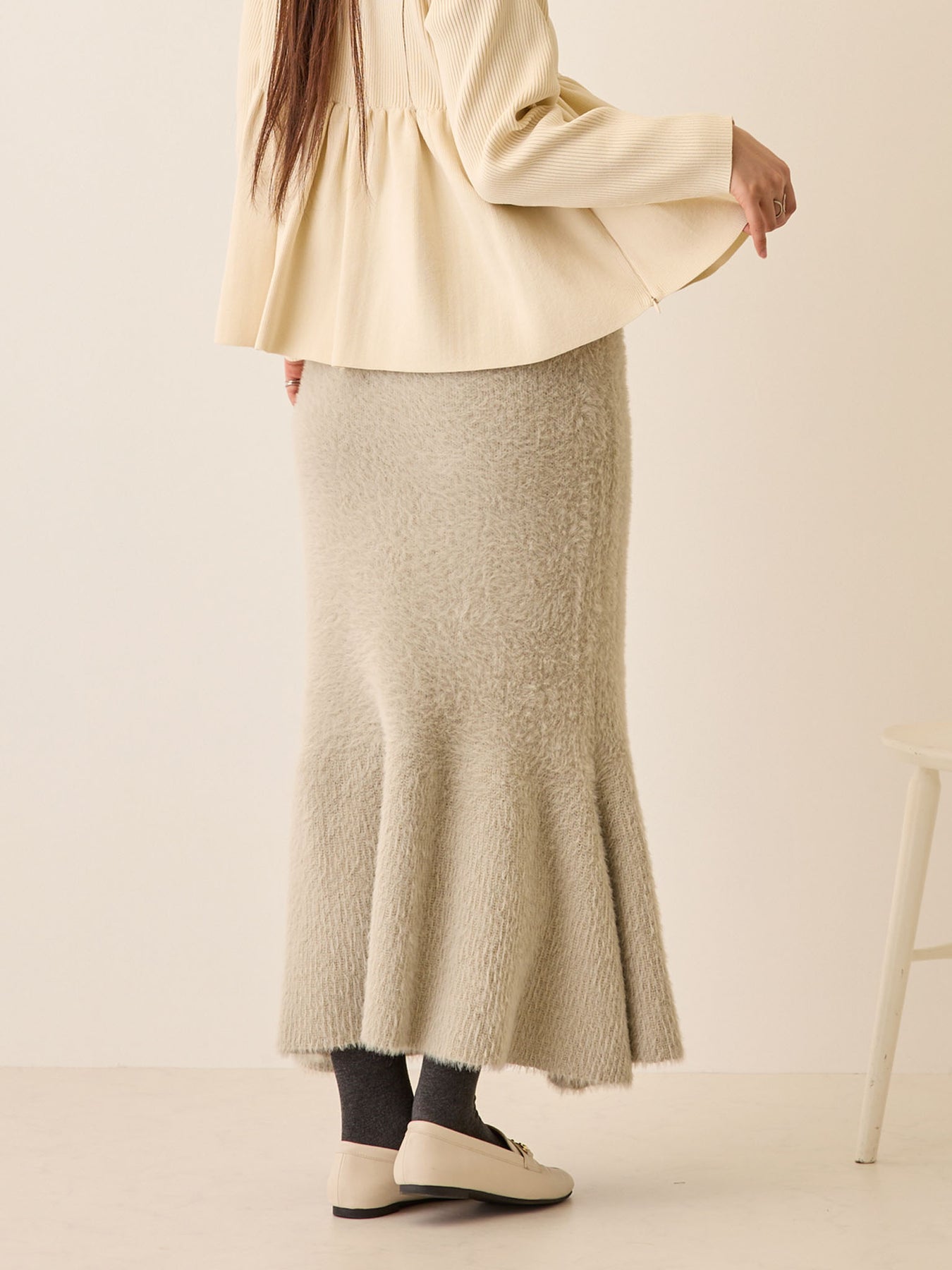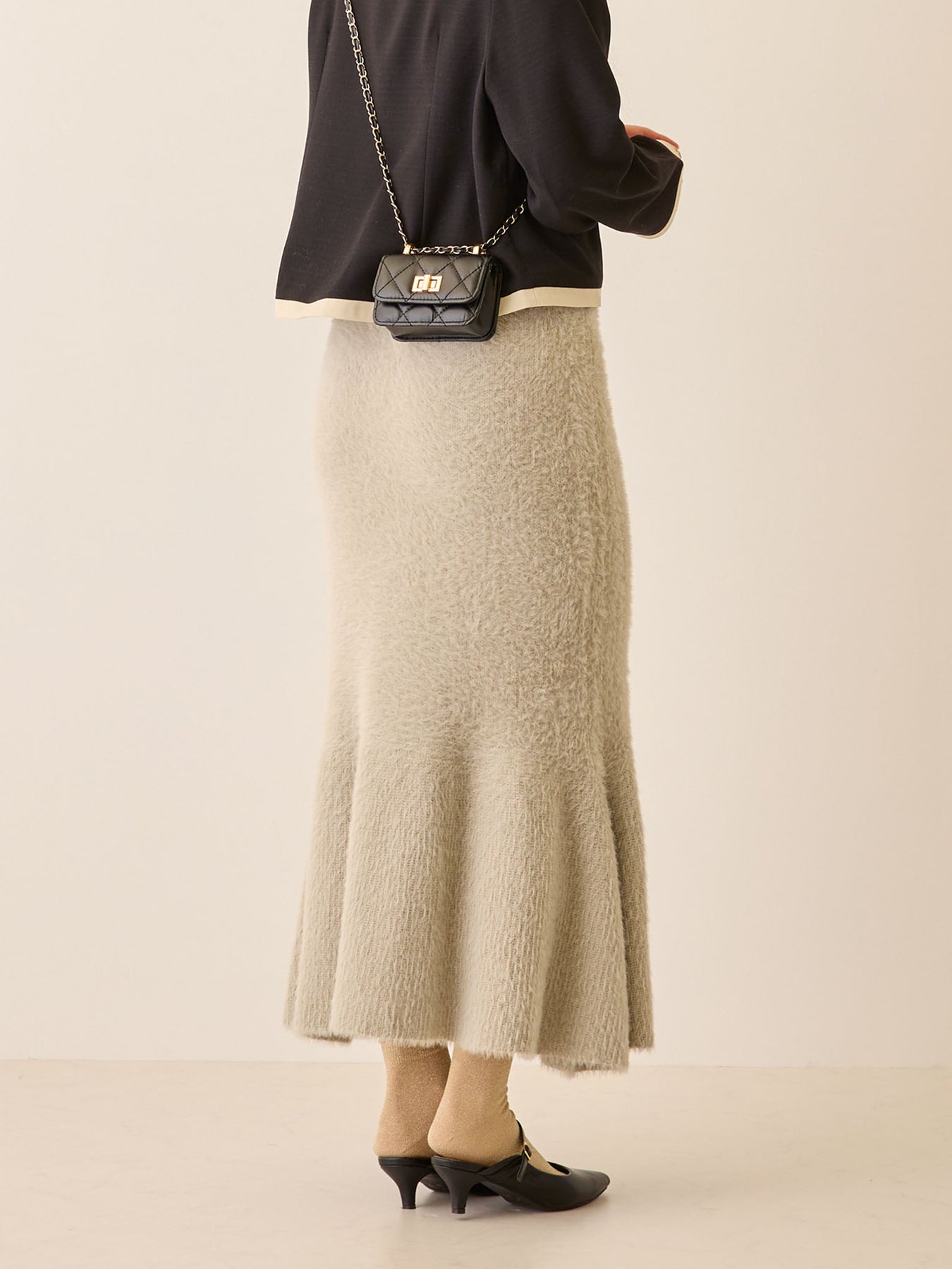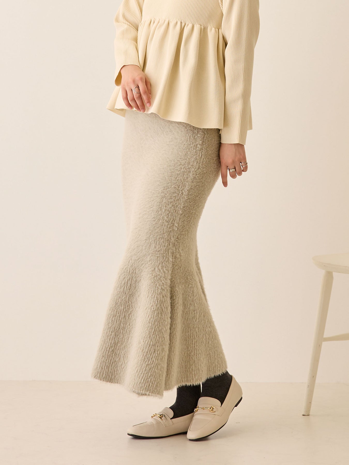 ふわっとした質感とマーメイドなシルエットが女性らしいニットスカート。