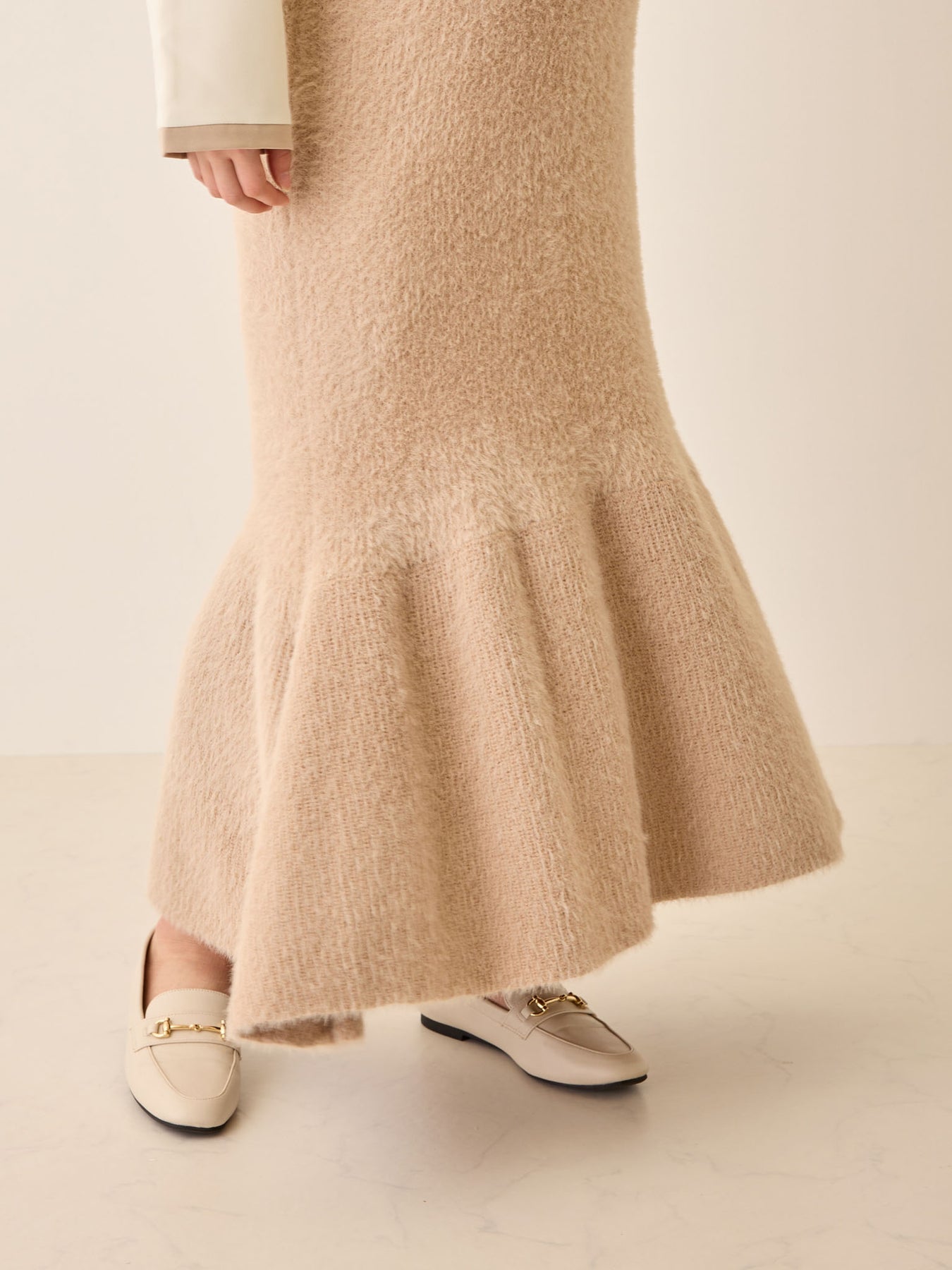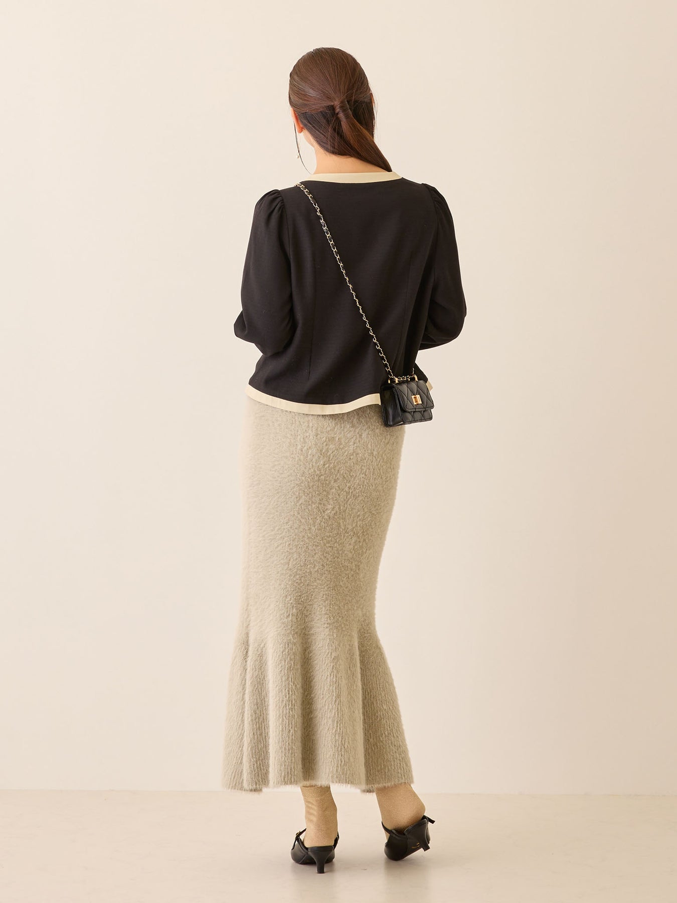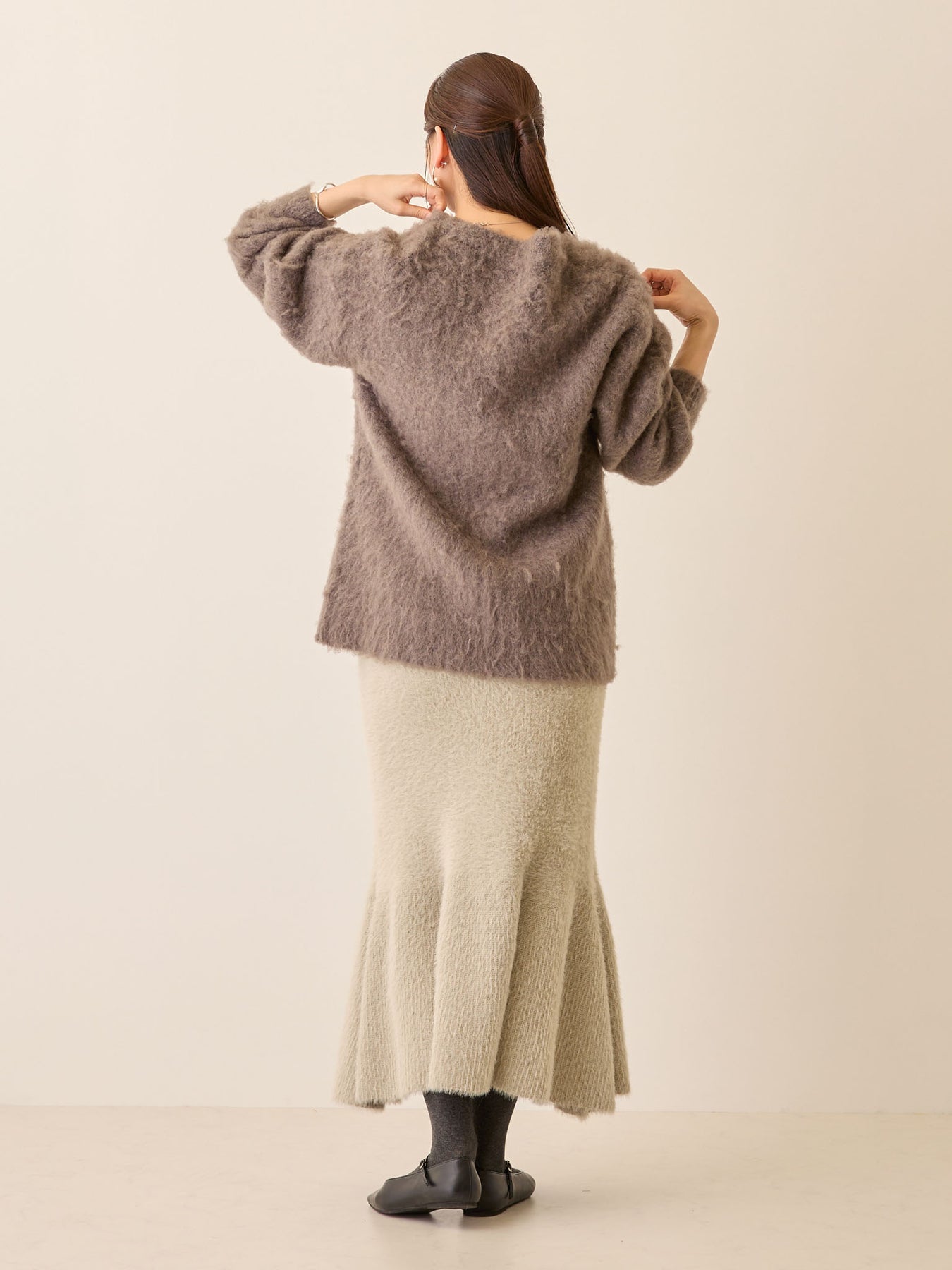ふわっとした質感とマーメイドなシルエットが女性らしいニットスカート。
