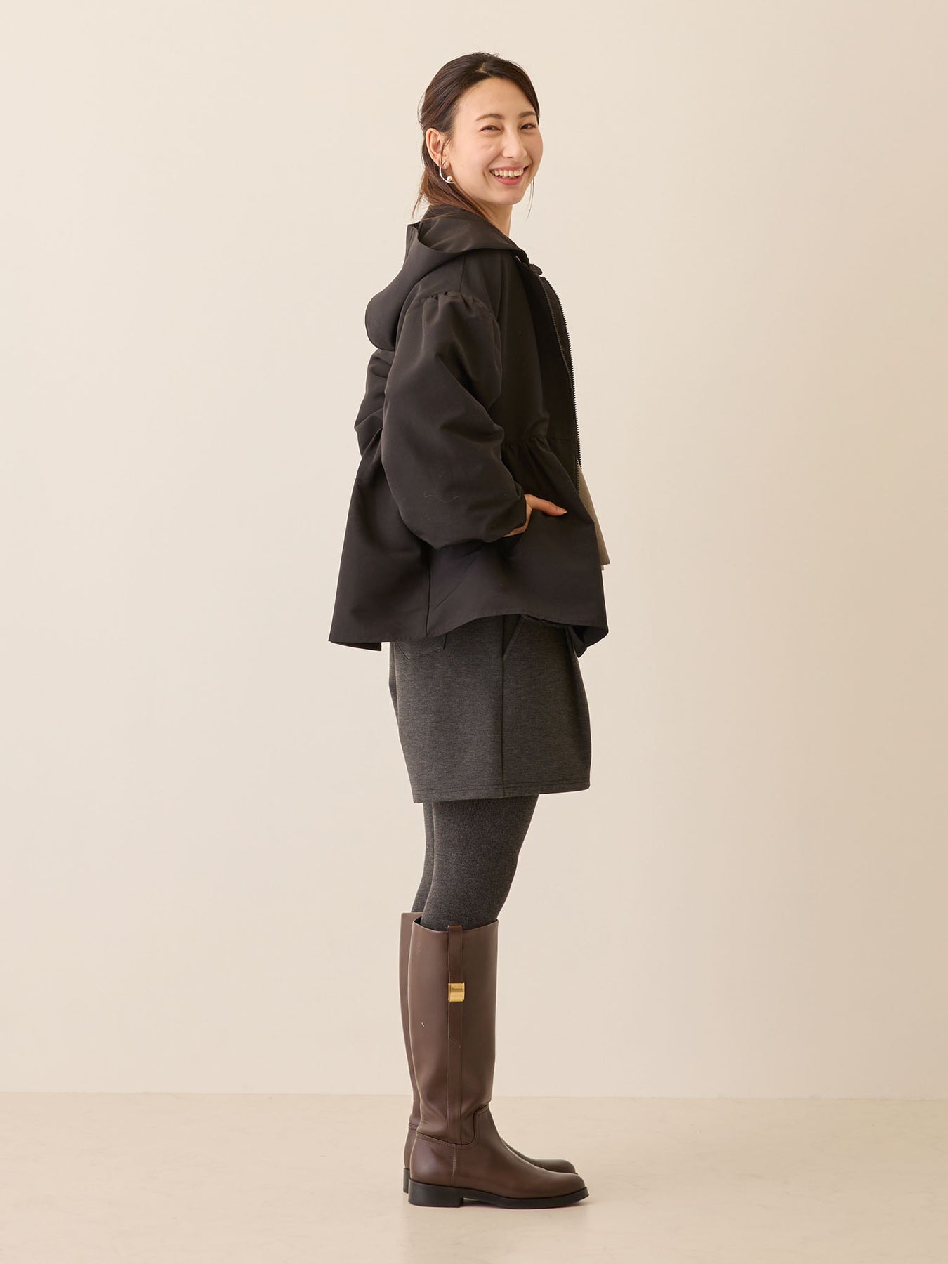 フードを外すとキレイめな印象でセレモニーやお仕事にも使いやすい◎