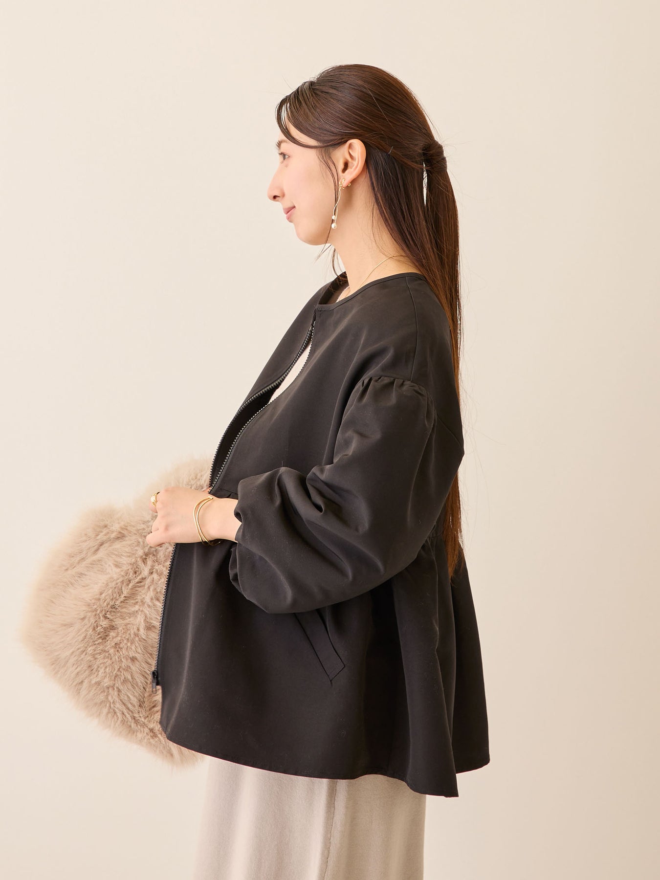 ふわふわな裏地でまだ寒い季節のライトアウターとして大活躍♩