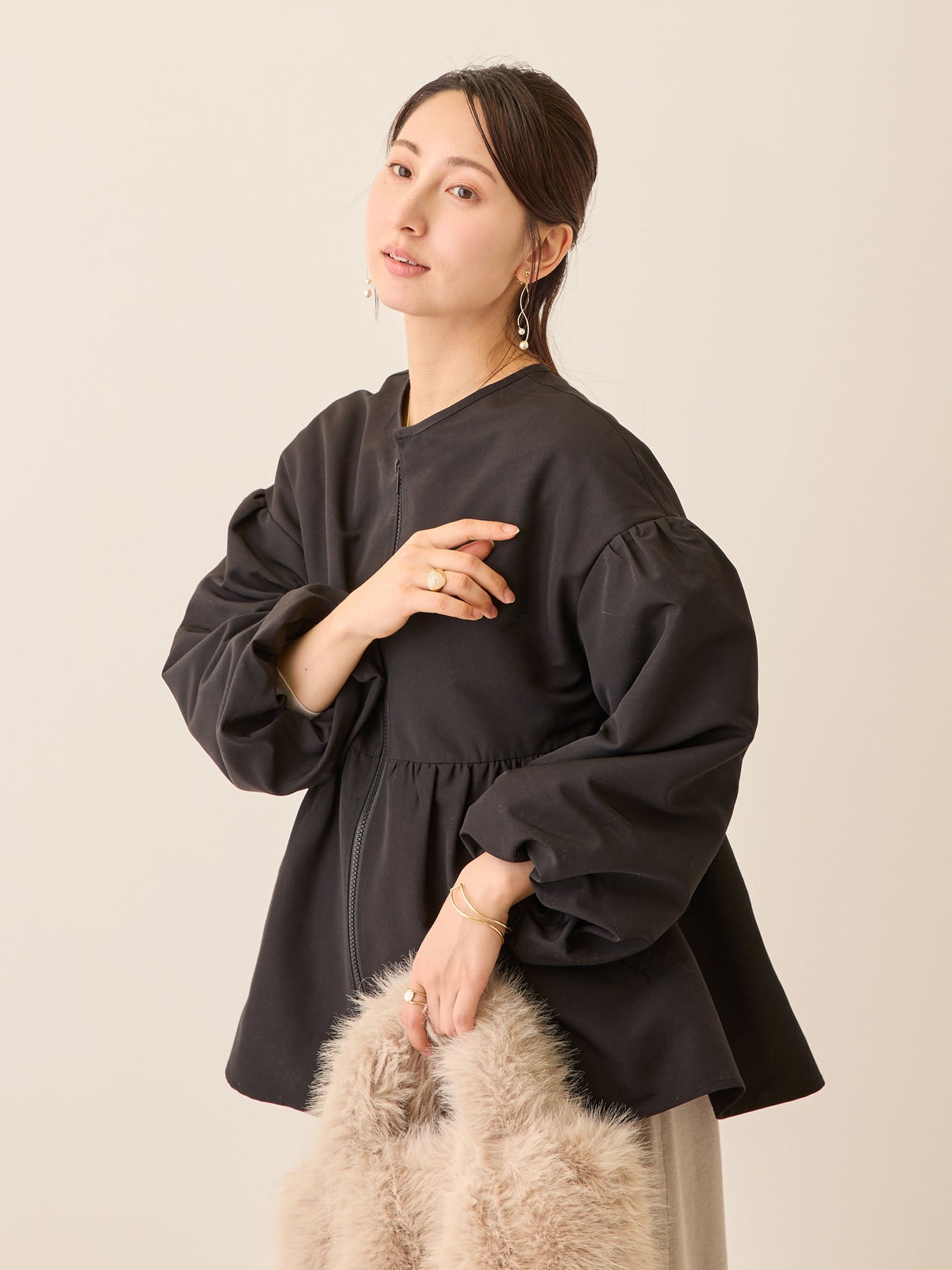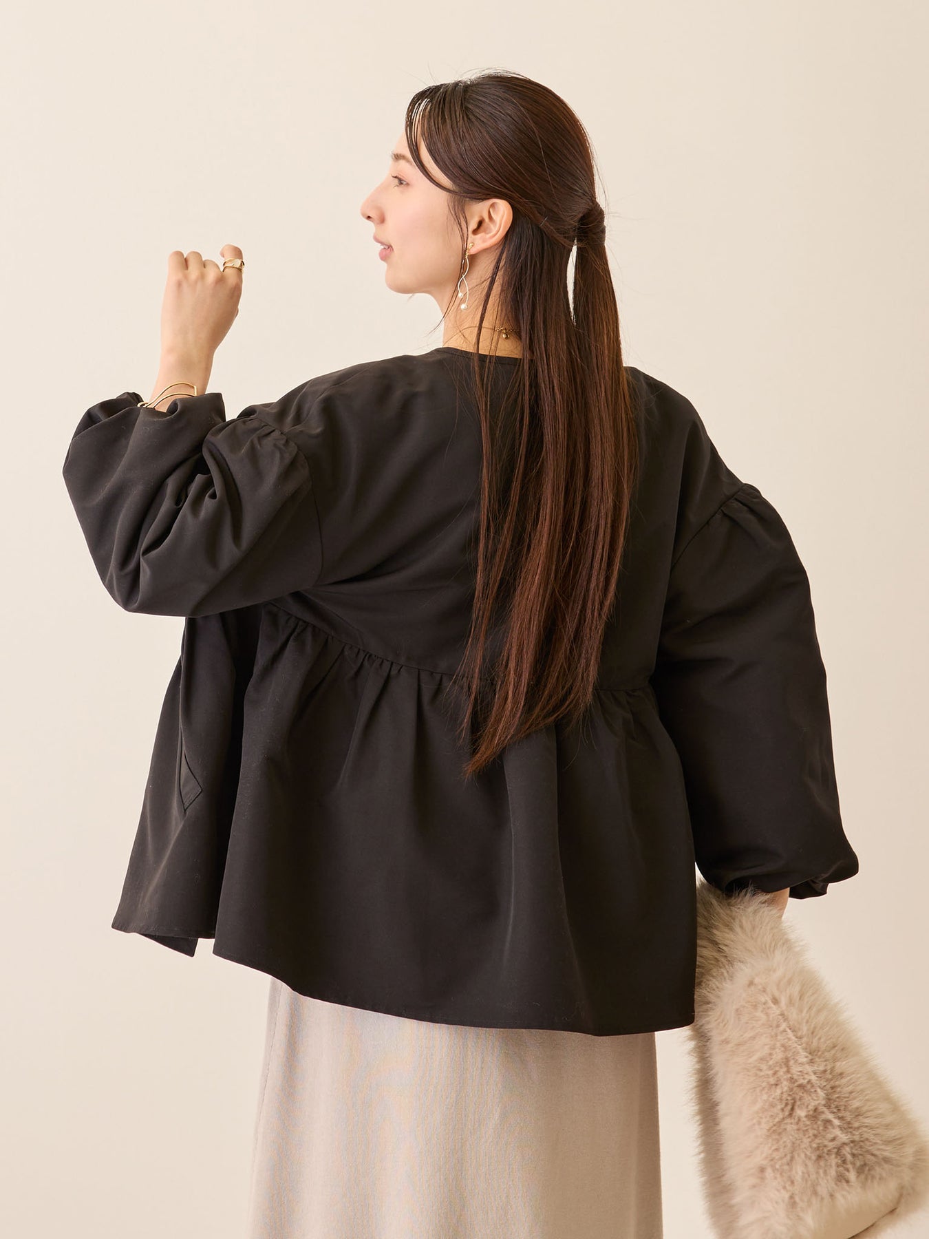 バルーン袖がふわっと華やかで、着るだけで大人可愛い♩