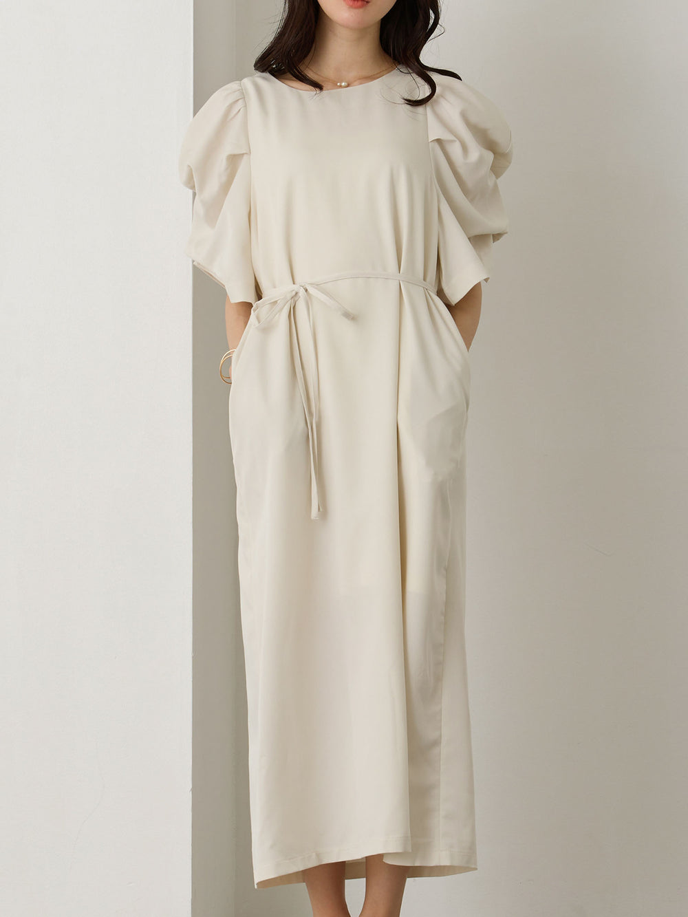 ボリューム袖Iラインワンピース Ecru