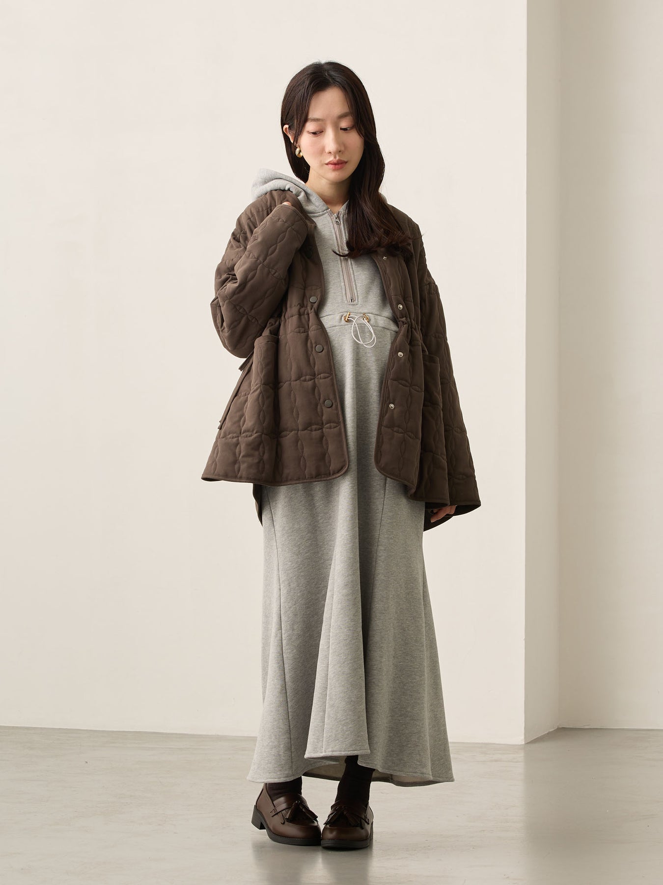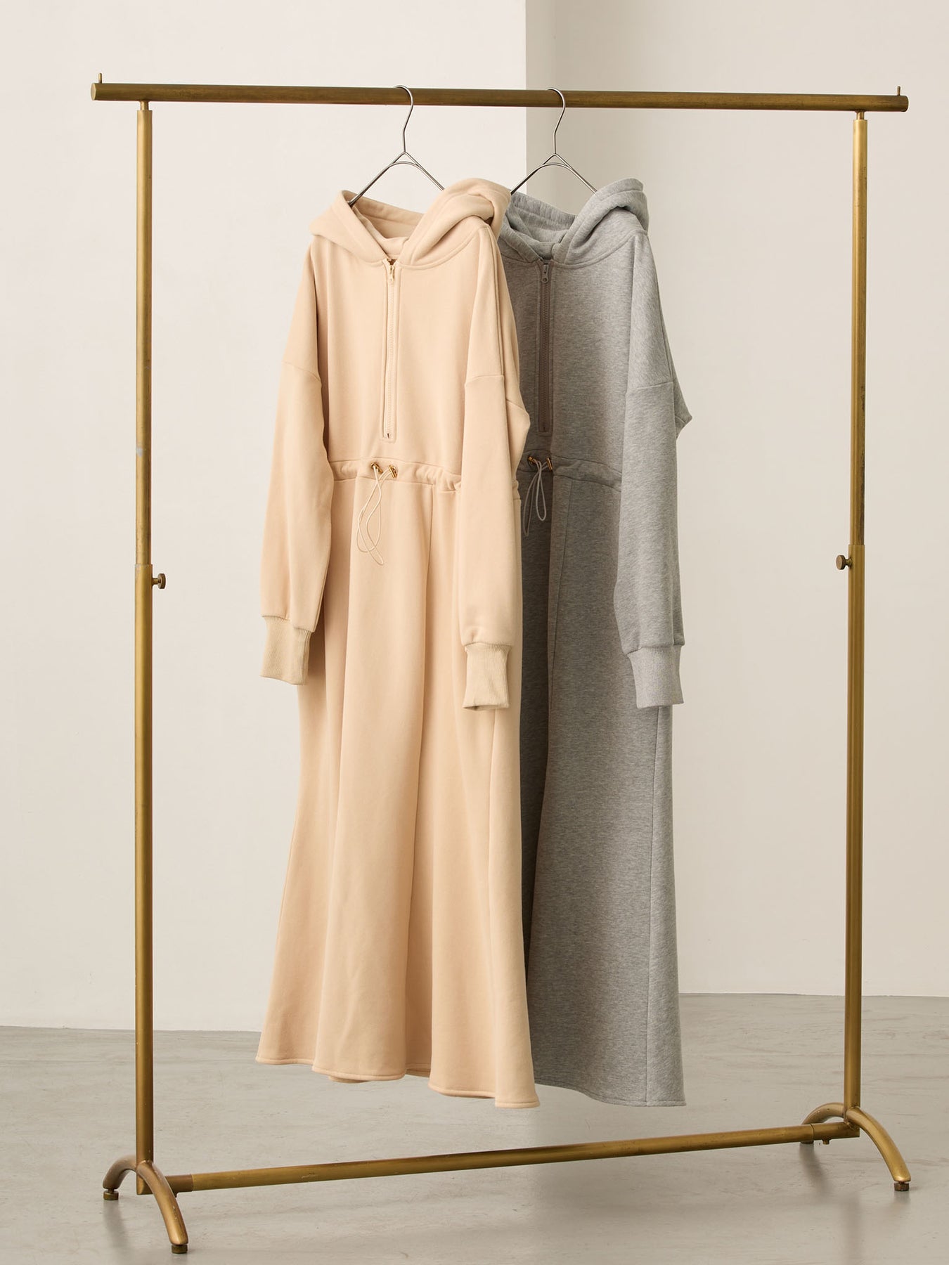 ハーフジップのパーカーワンピースは、一枚あると助かる存在!