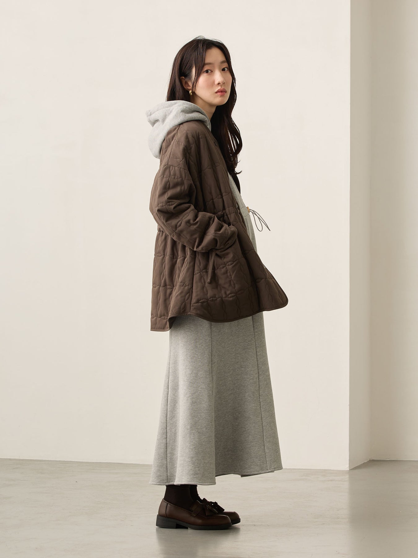 ドローストリングで自由に絞れるので産後はキュッと絞ってスタイルアップも可能♩