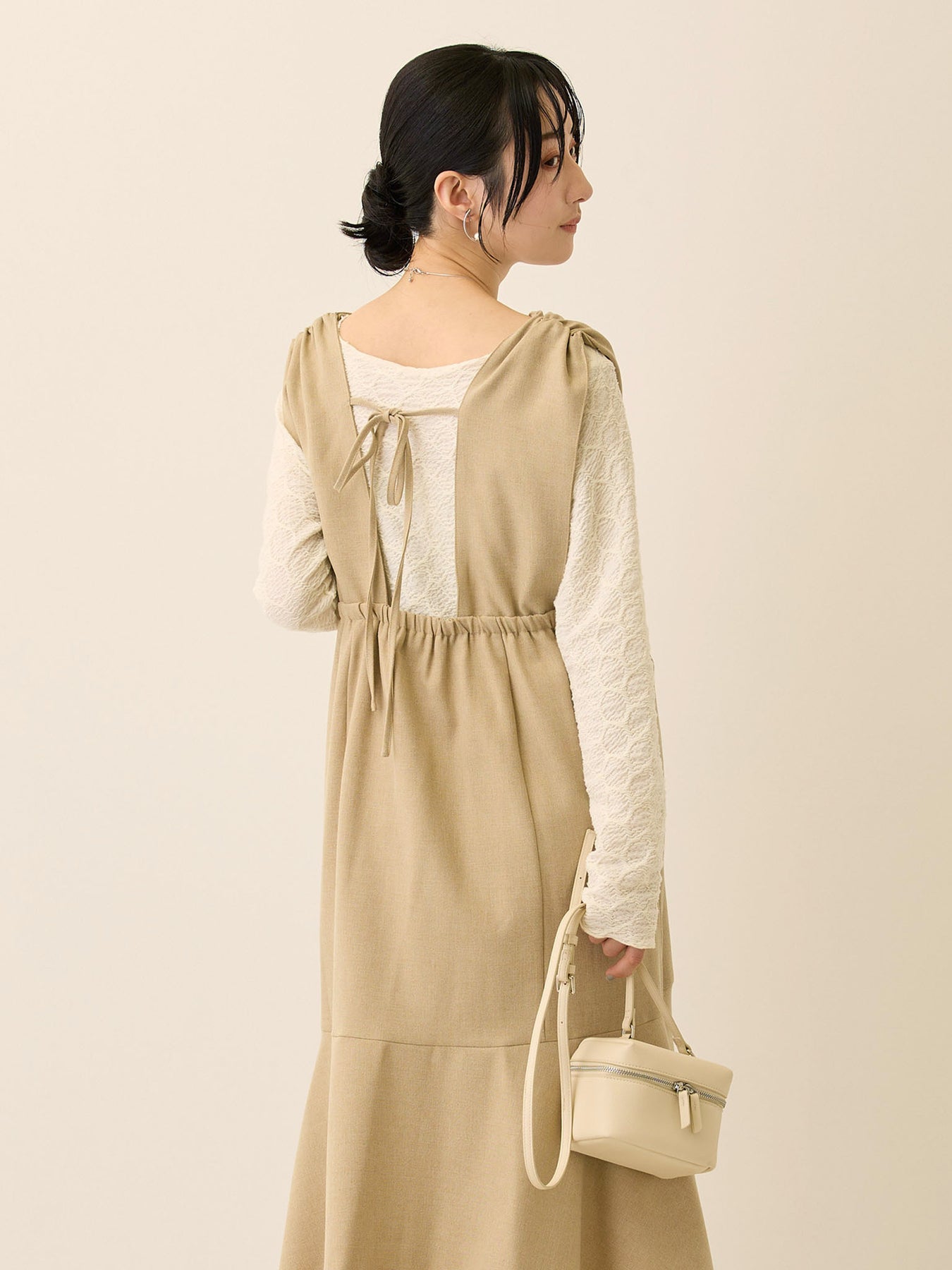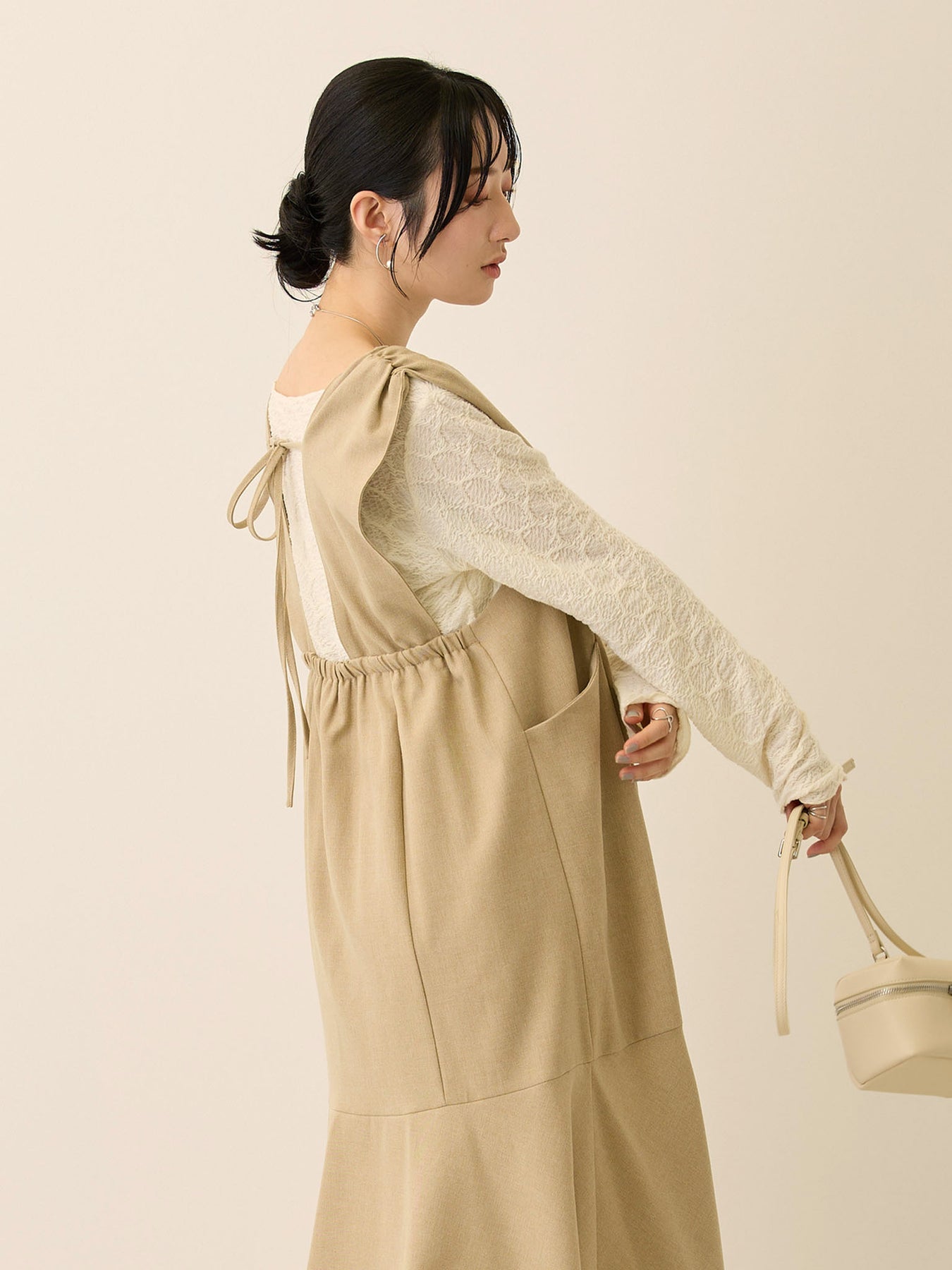 後ろはリボンが付いており肩紐がすべり落ちにくい仕様。