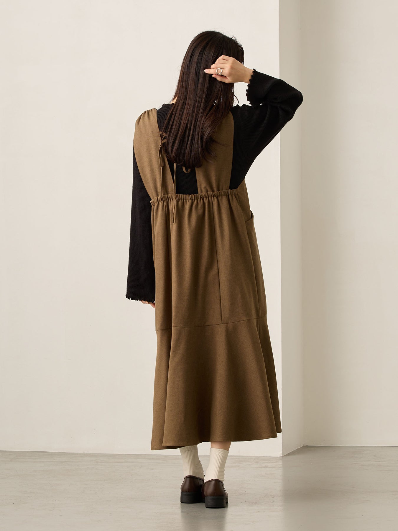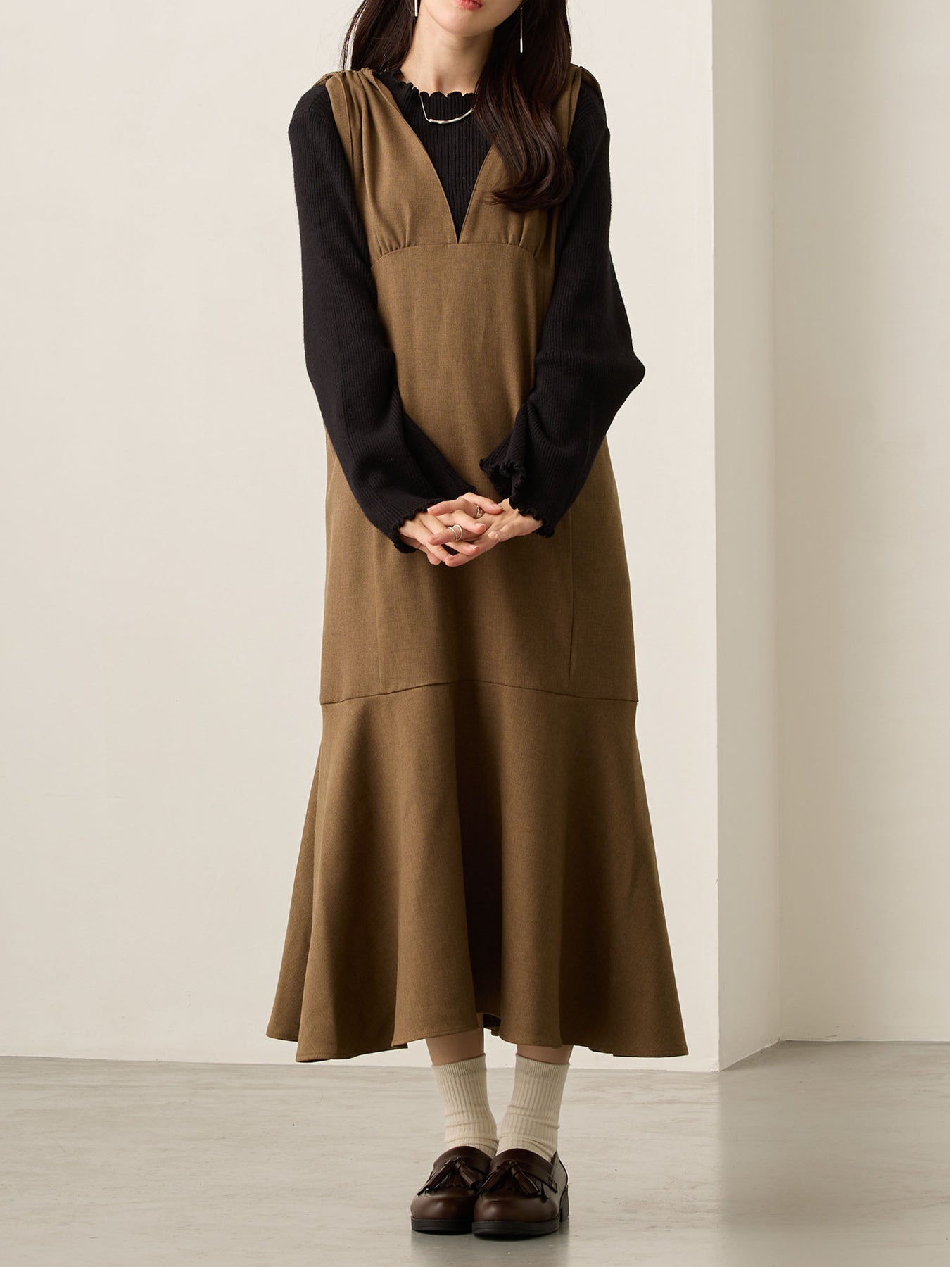 スッキリと見えるシルエットを追求したジャンパースカート。