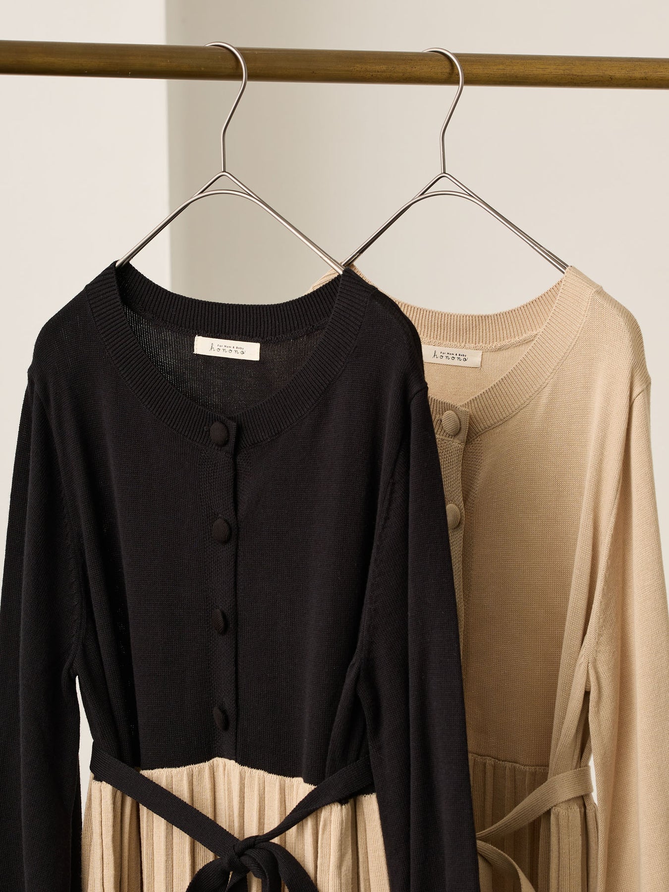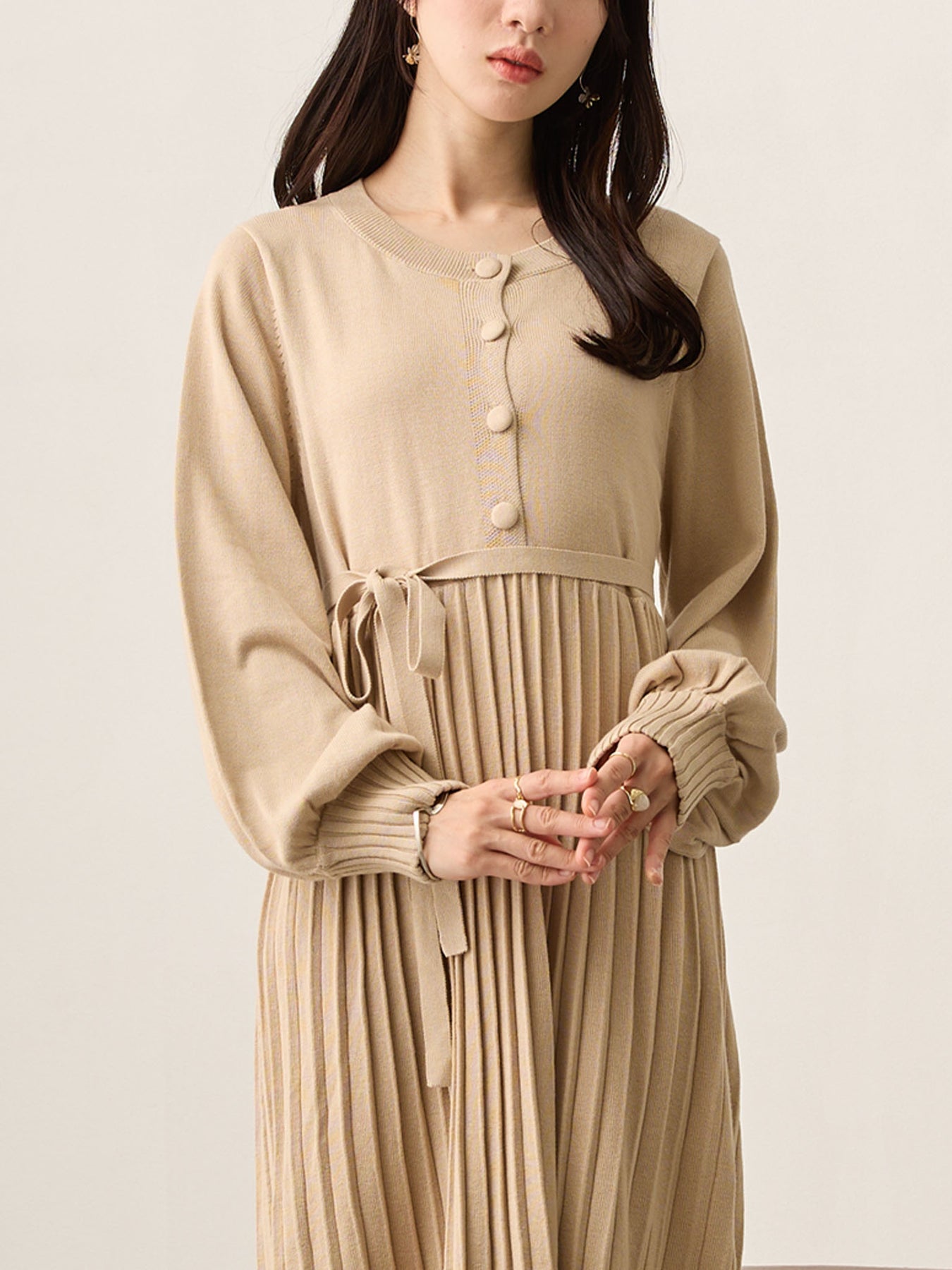女性らしいシルエットを引き立てる、プリーツのニットワンピース。