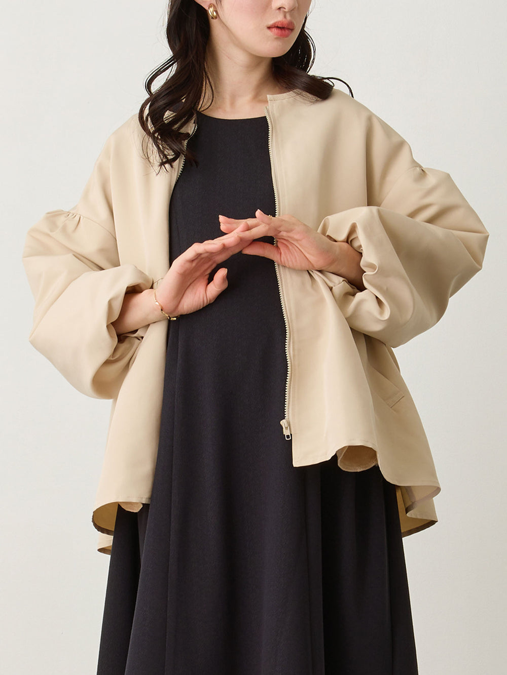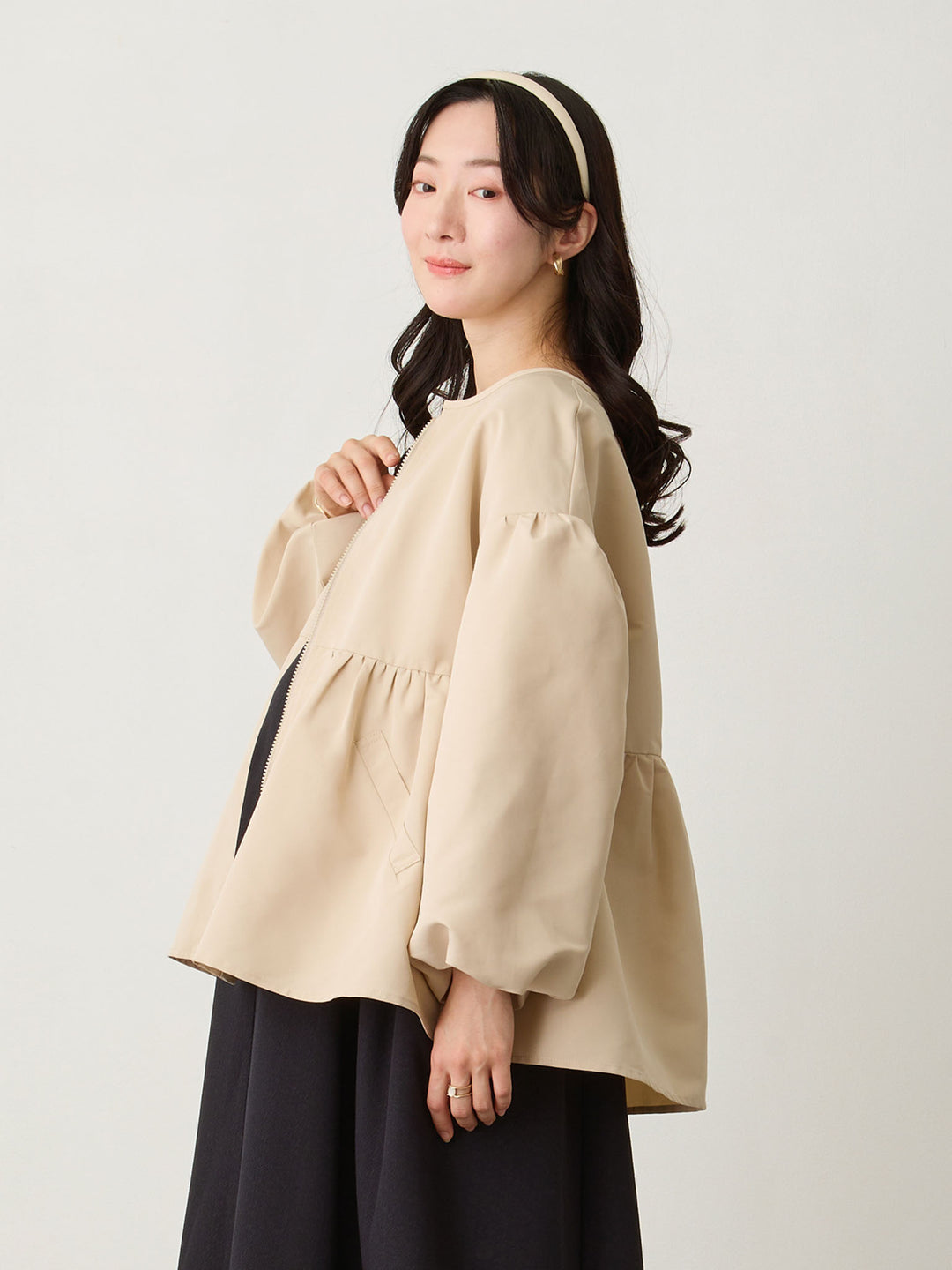 フード付きペプラムライトアウター Beige
