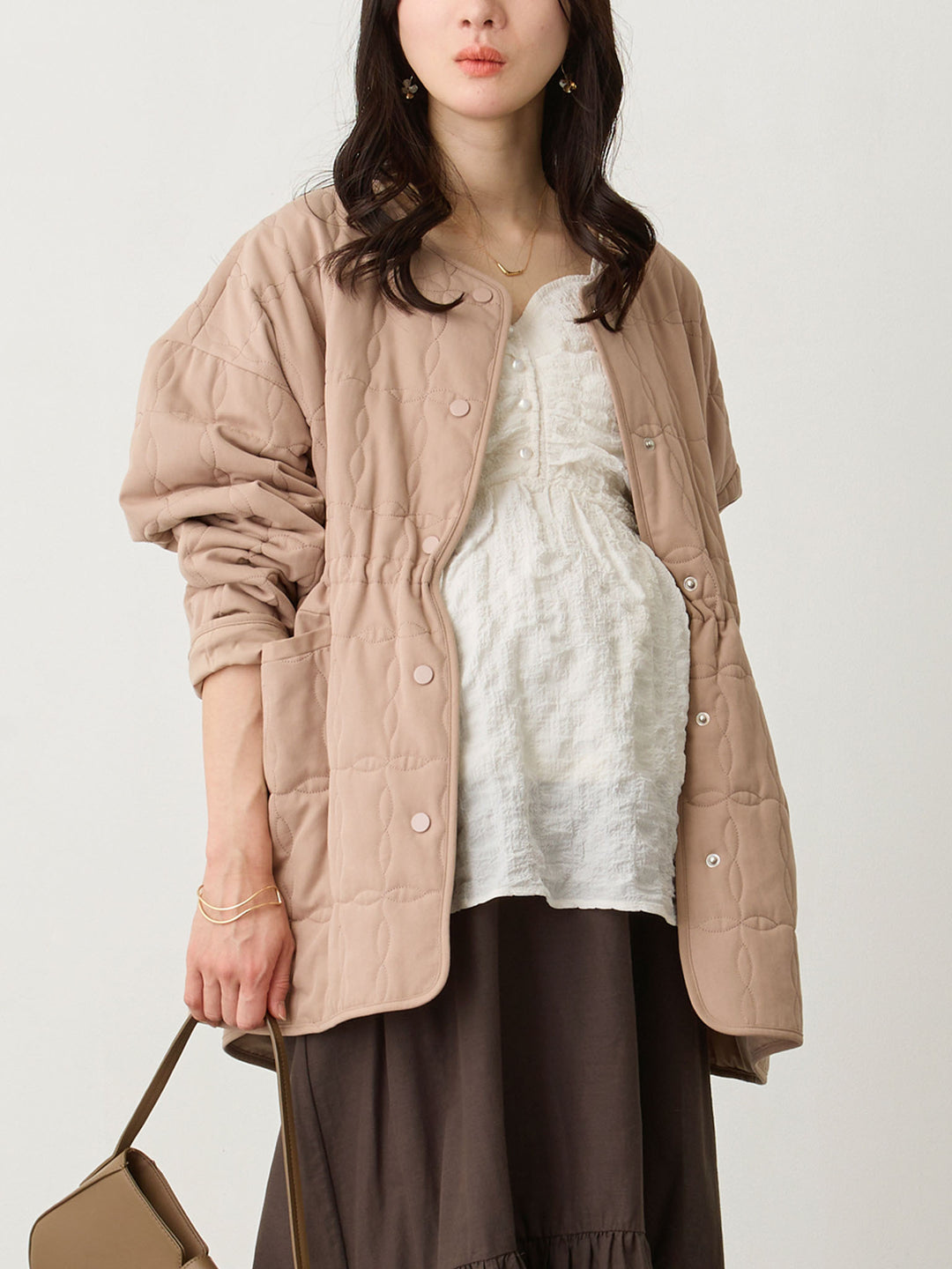 ダッカー付きオリジナルキルティングアウター Greige