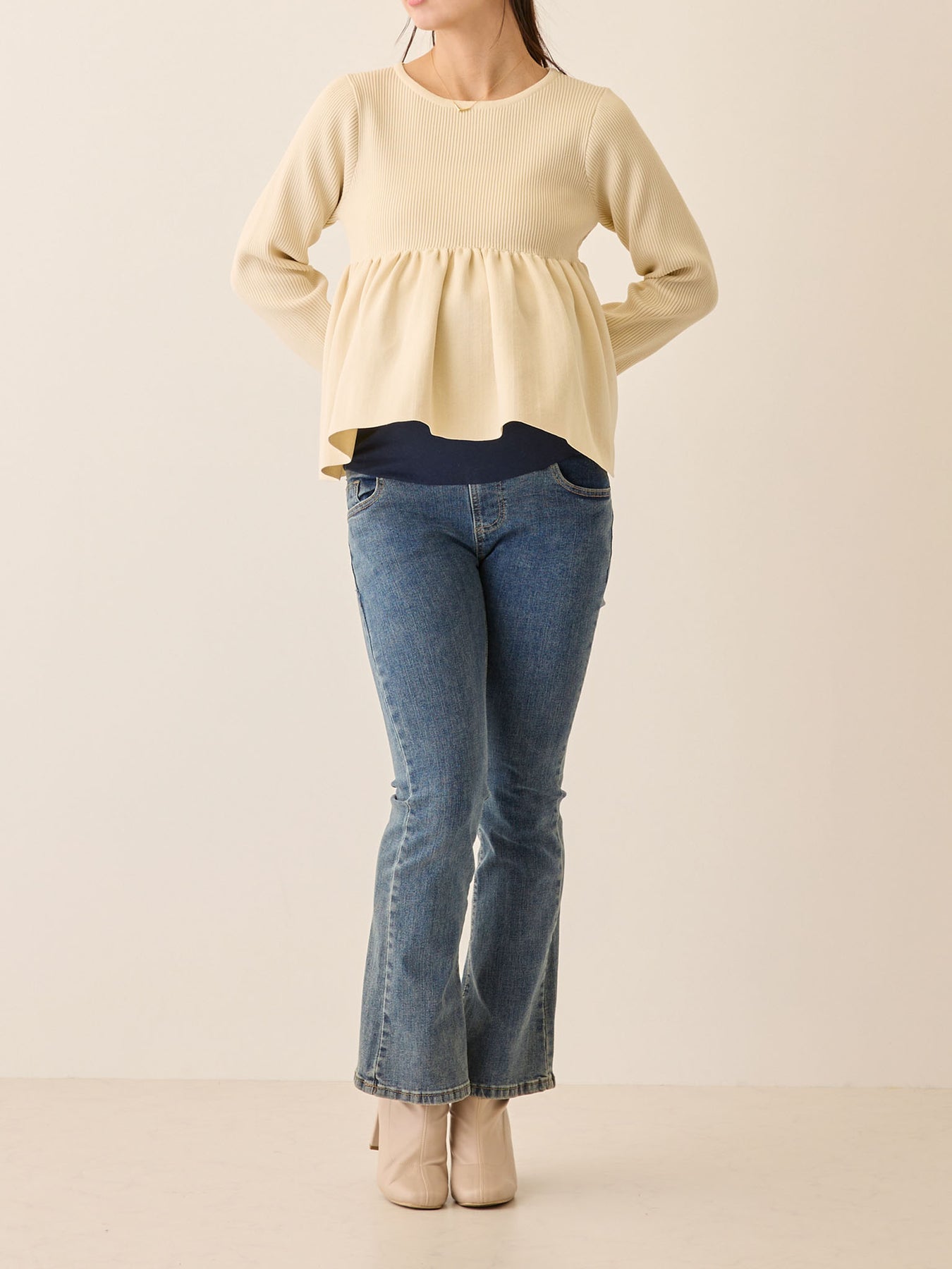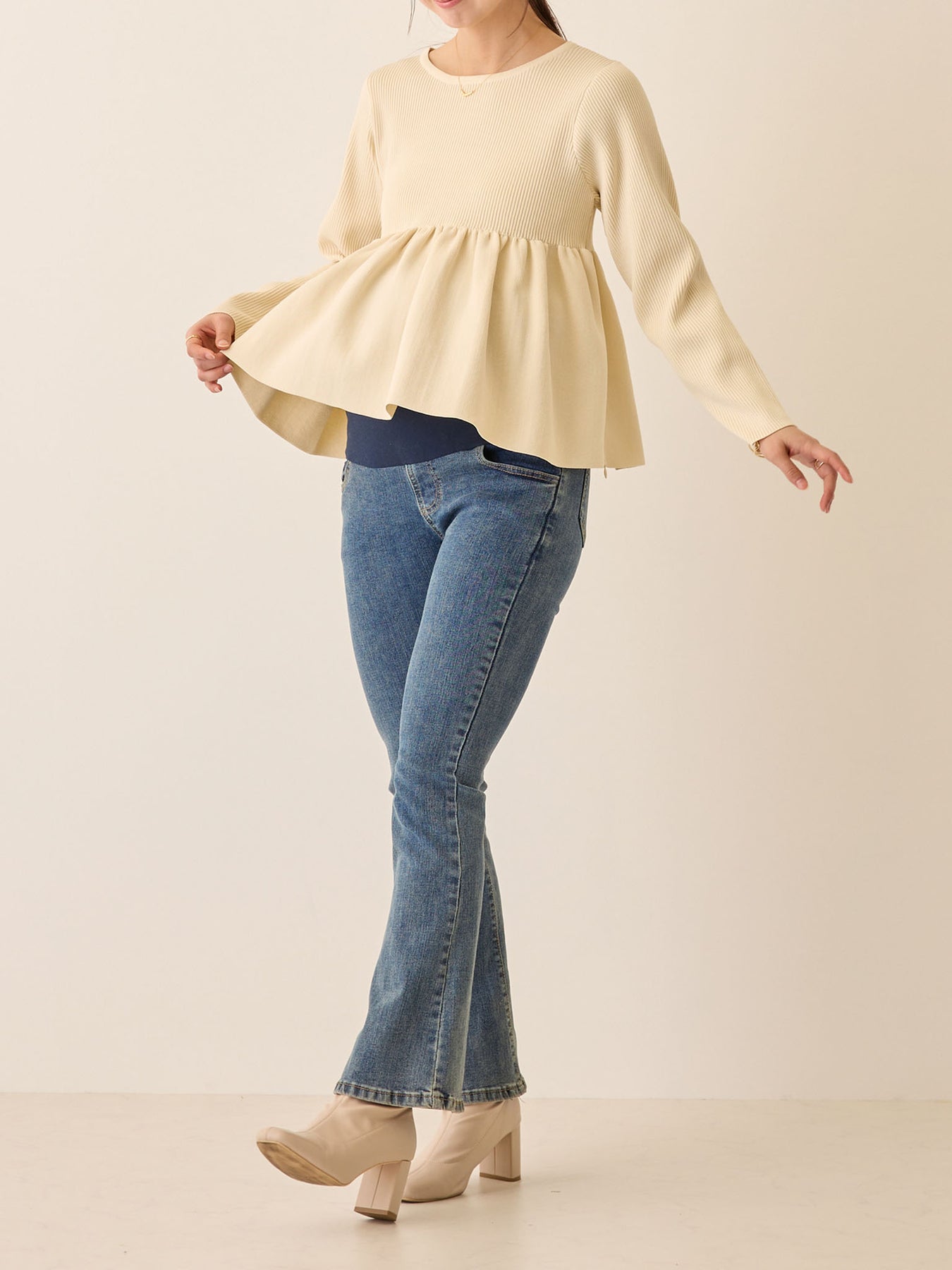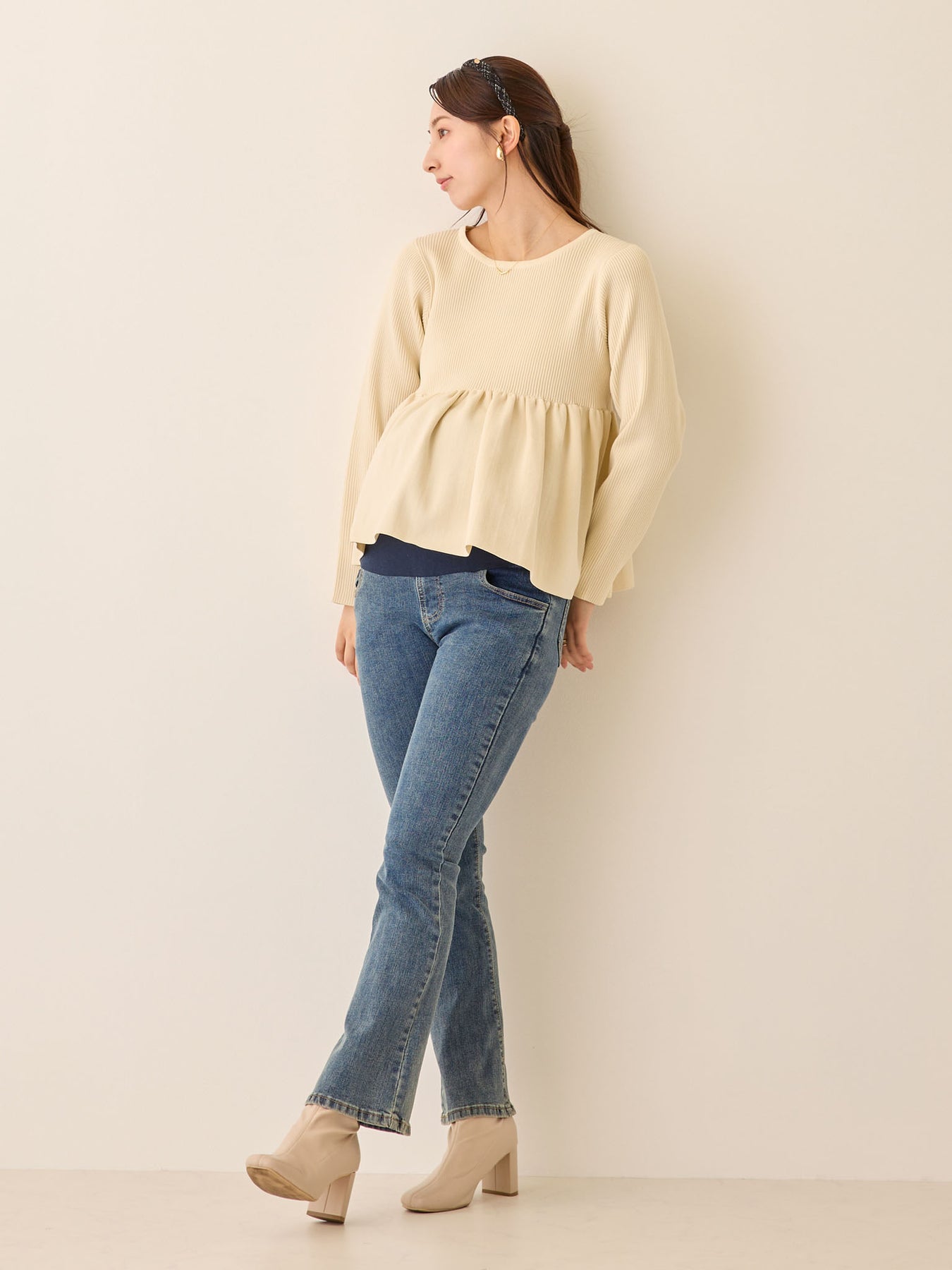 ・フレアシルエットが妊娠中のスタイルアップのポイントになってくれます。
