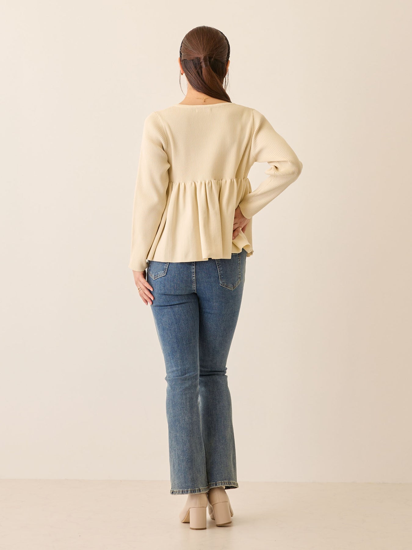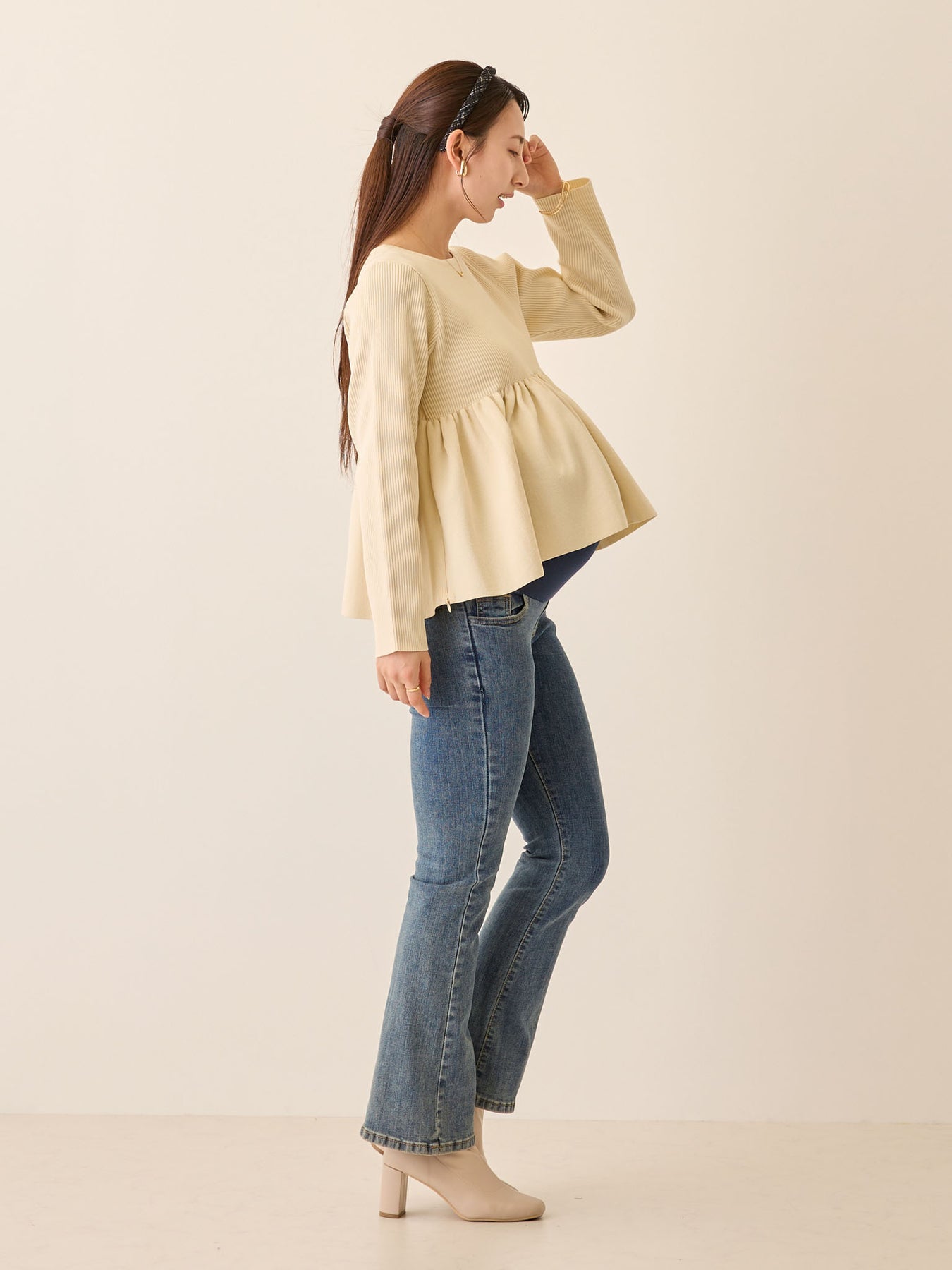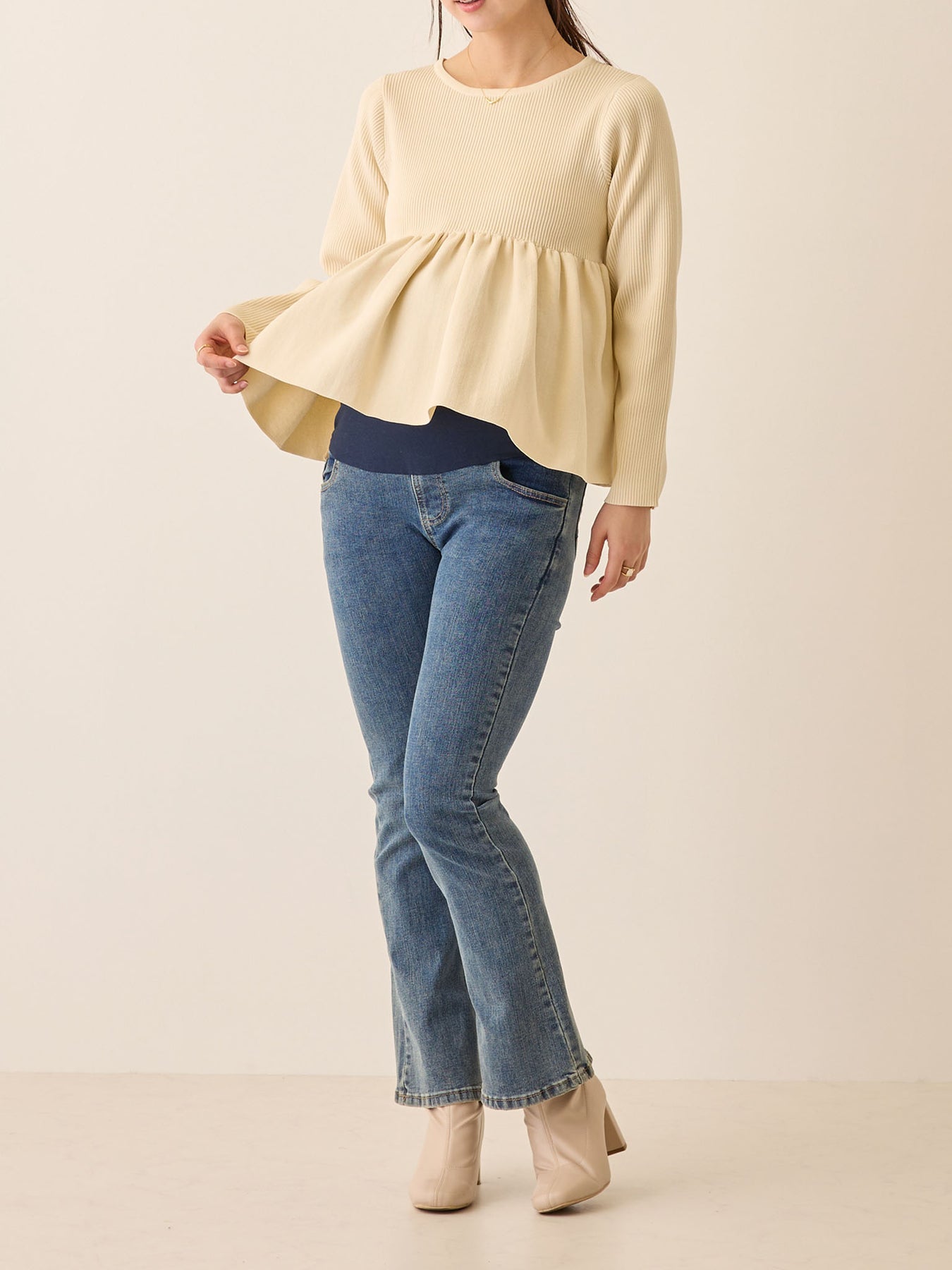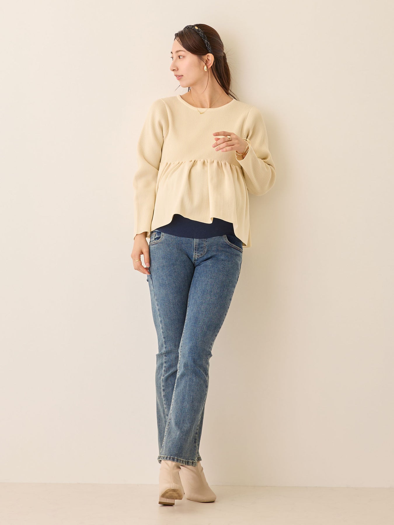 ・フレアシルエットが妊娠中のスタイルアップのポイントになってくれます。