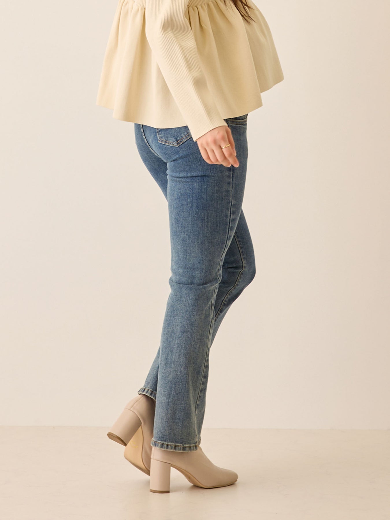 着回し抜群アイテム!美脚効果のフレアデニムパンツ。