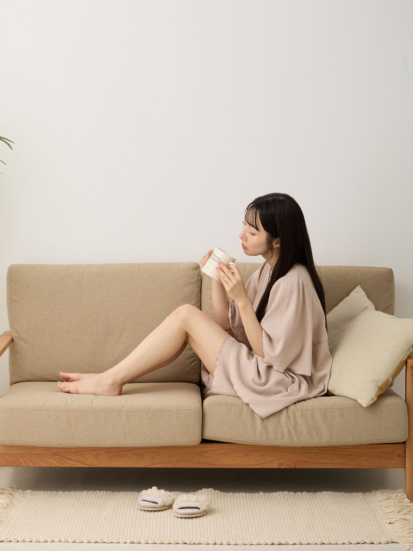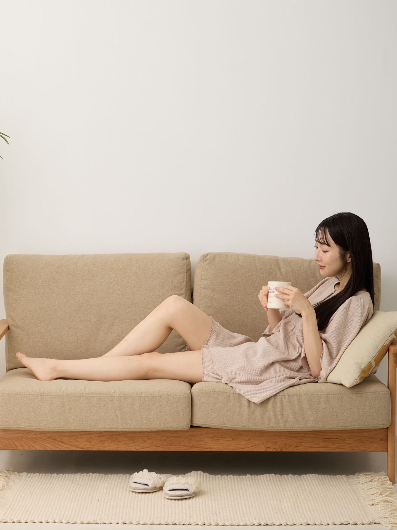 ボトムは同じ生地のはらまき一体型で、お腹を冷えから守ってくれます。