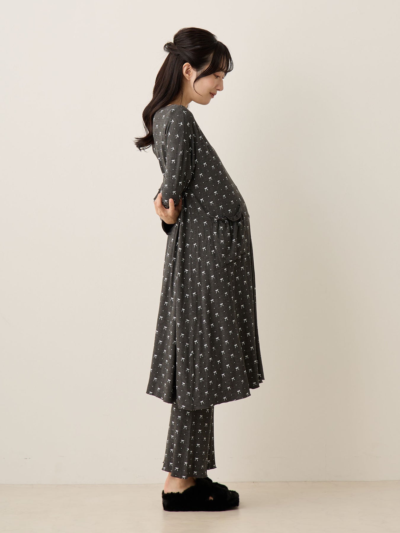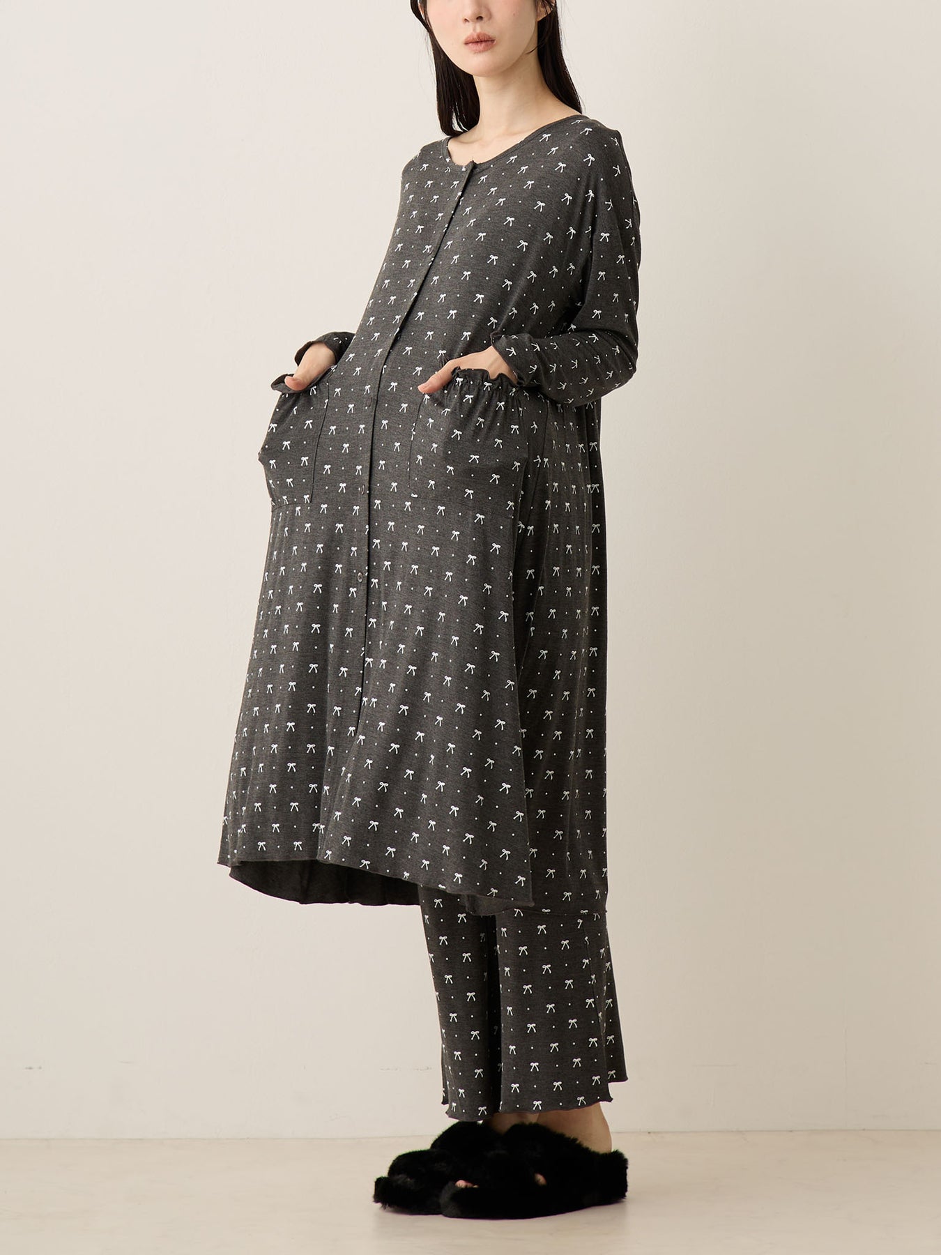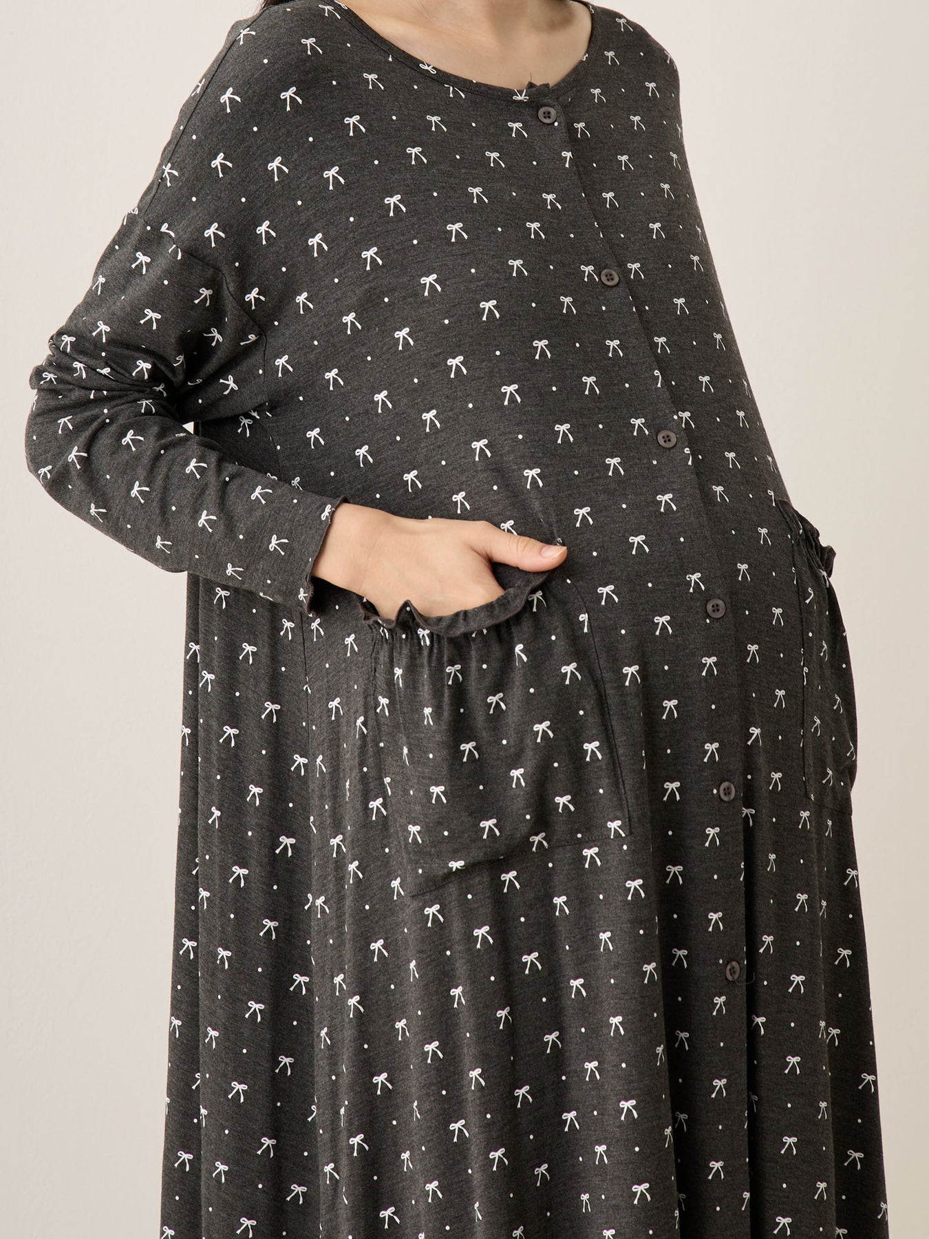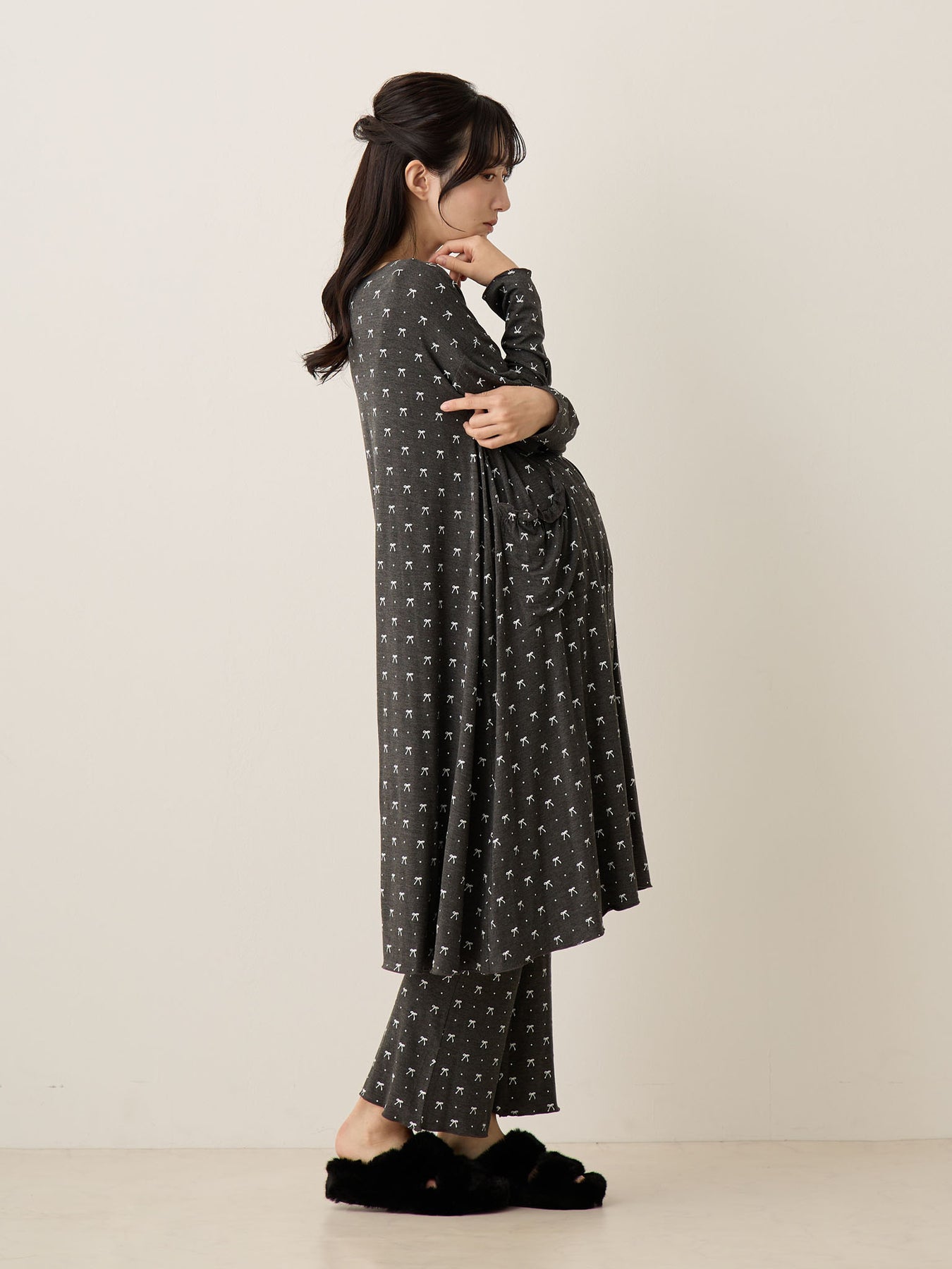 前ボタン全開タイプ・長め着丈で産後の授乳や入院着としても使いやすい。