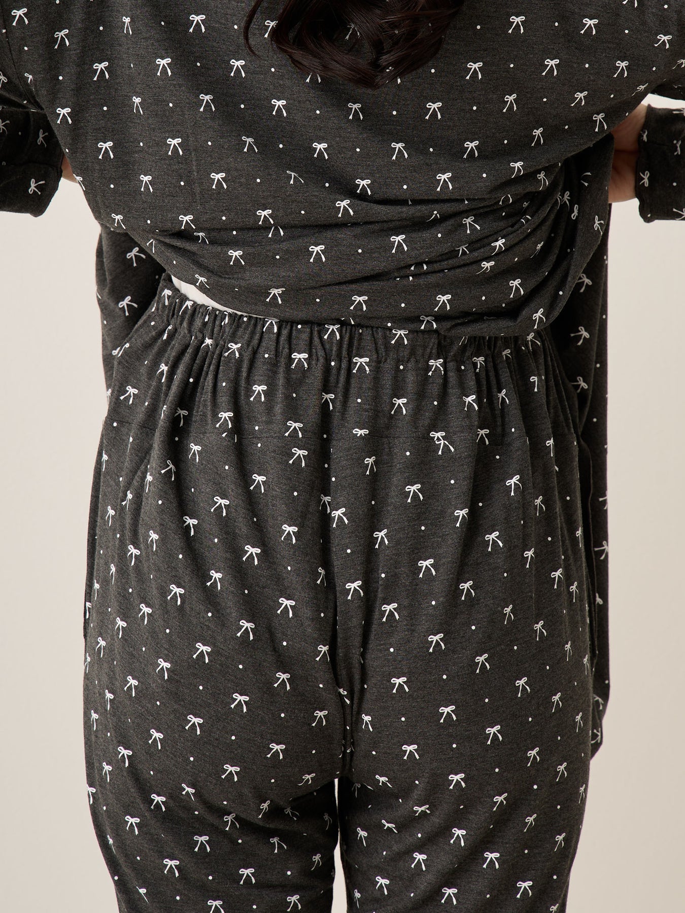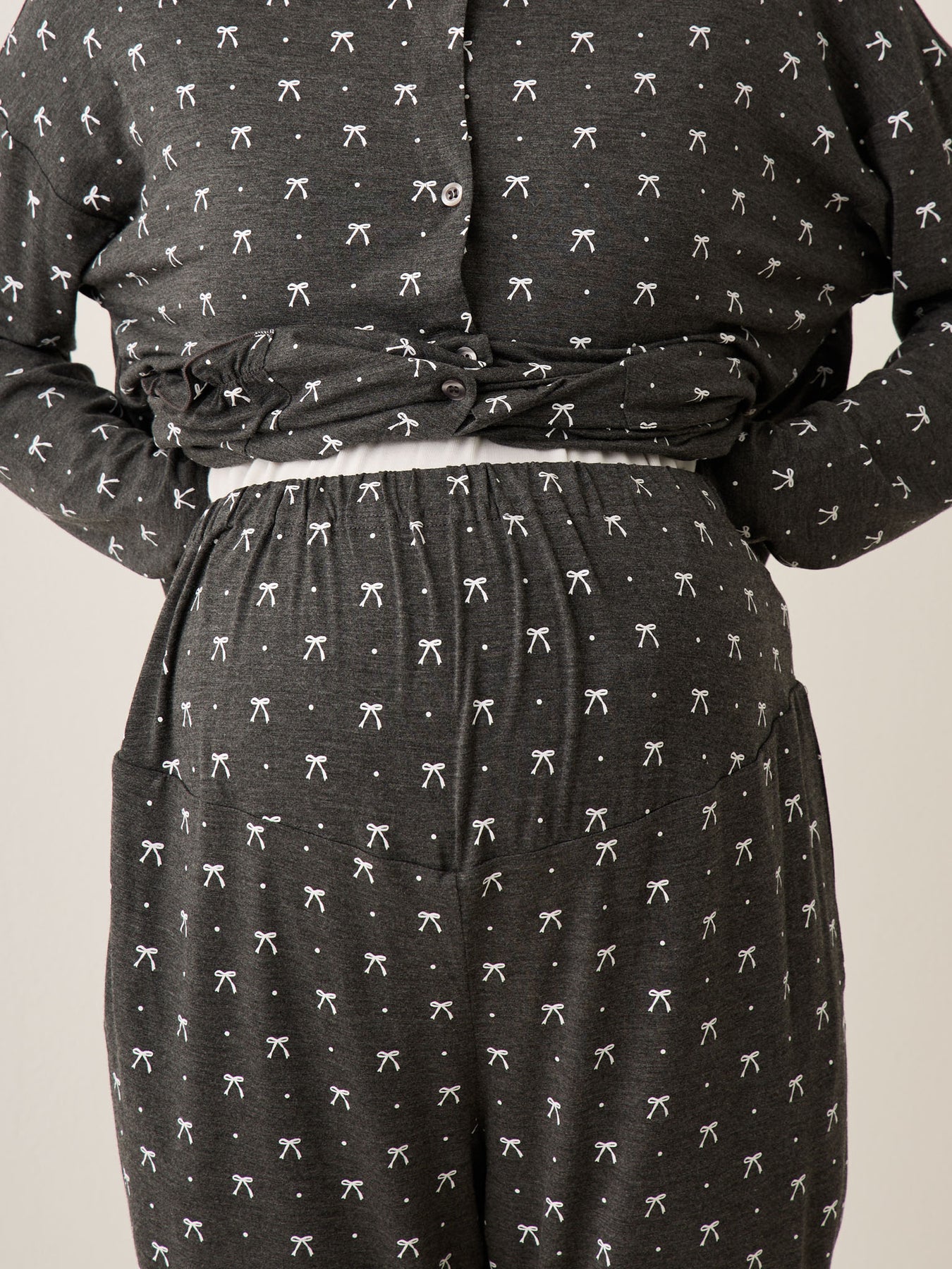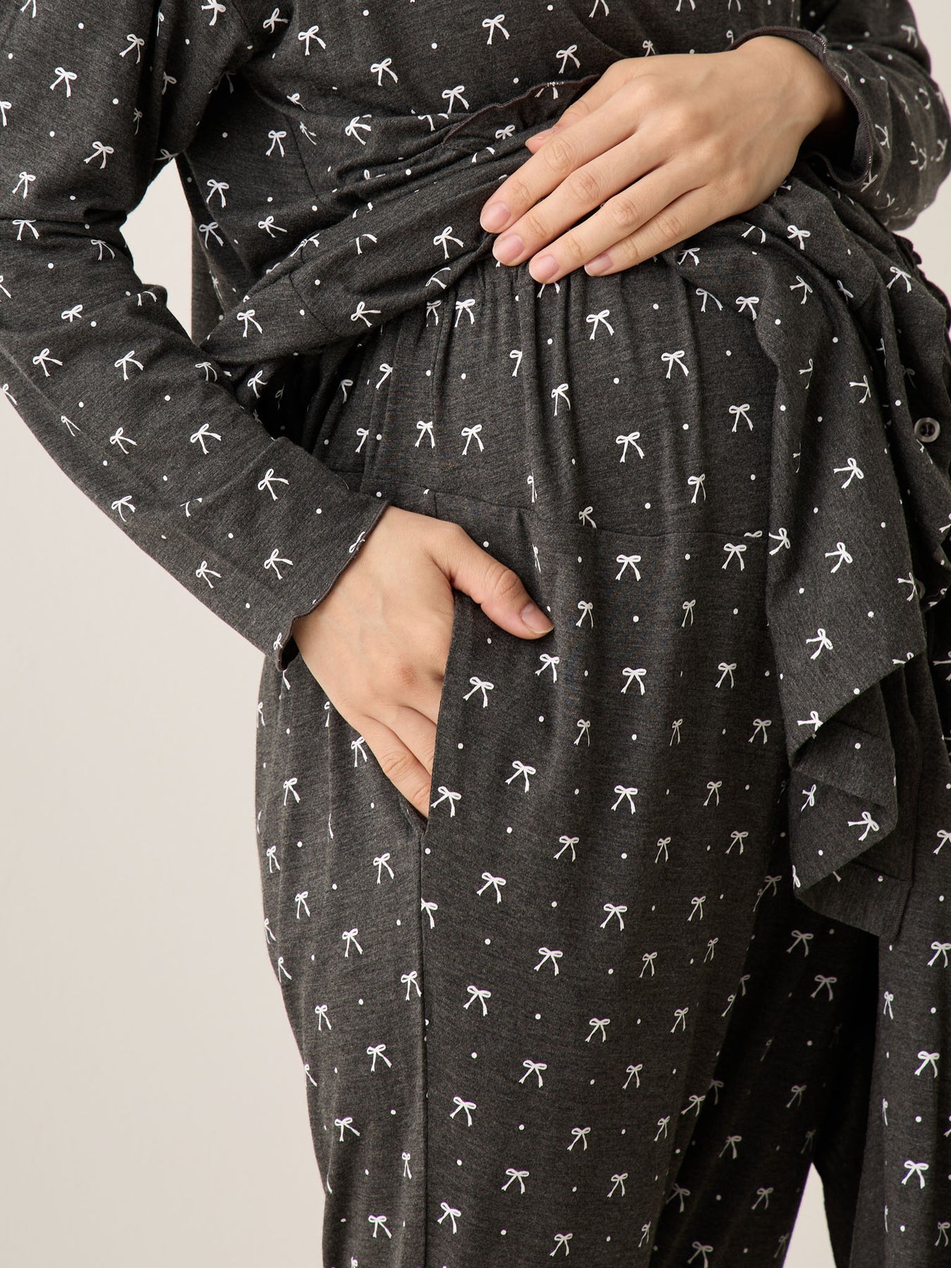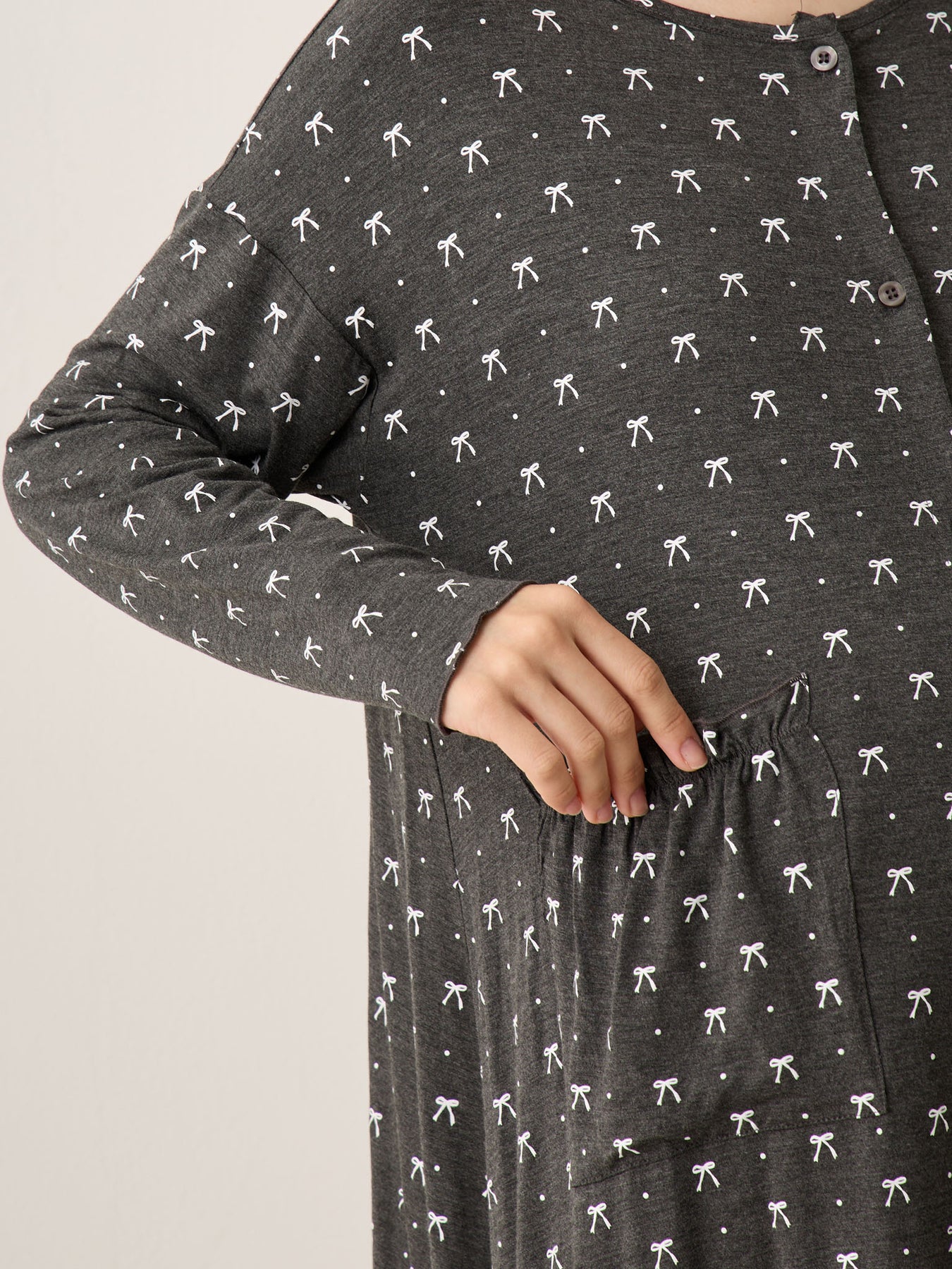 前ボタン全開タイプ・長め着丈で産後の授乳や入院着としても使いやすい。