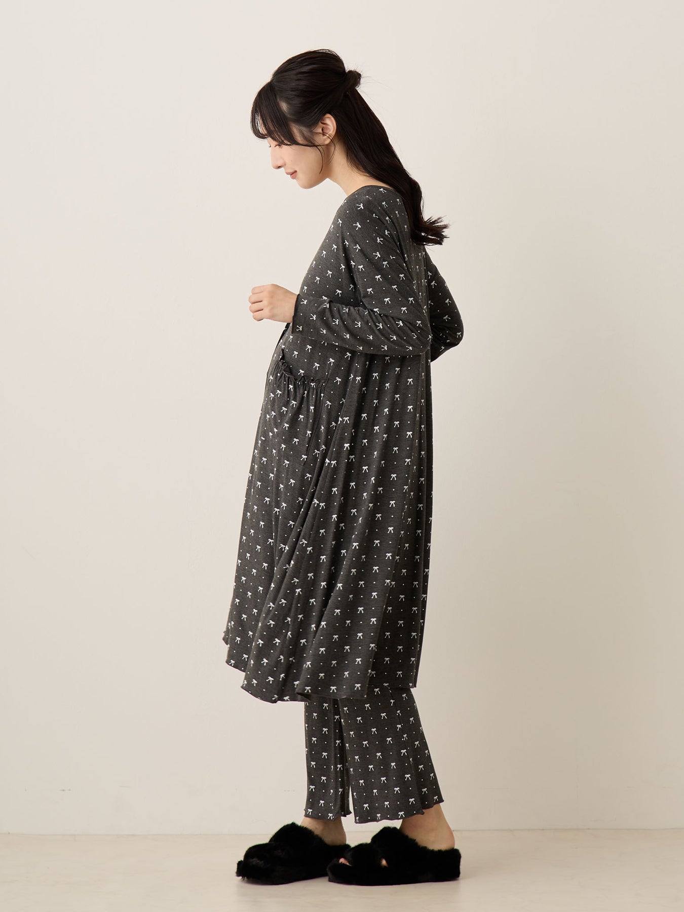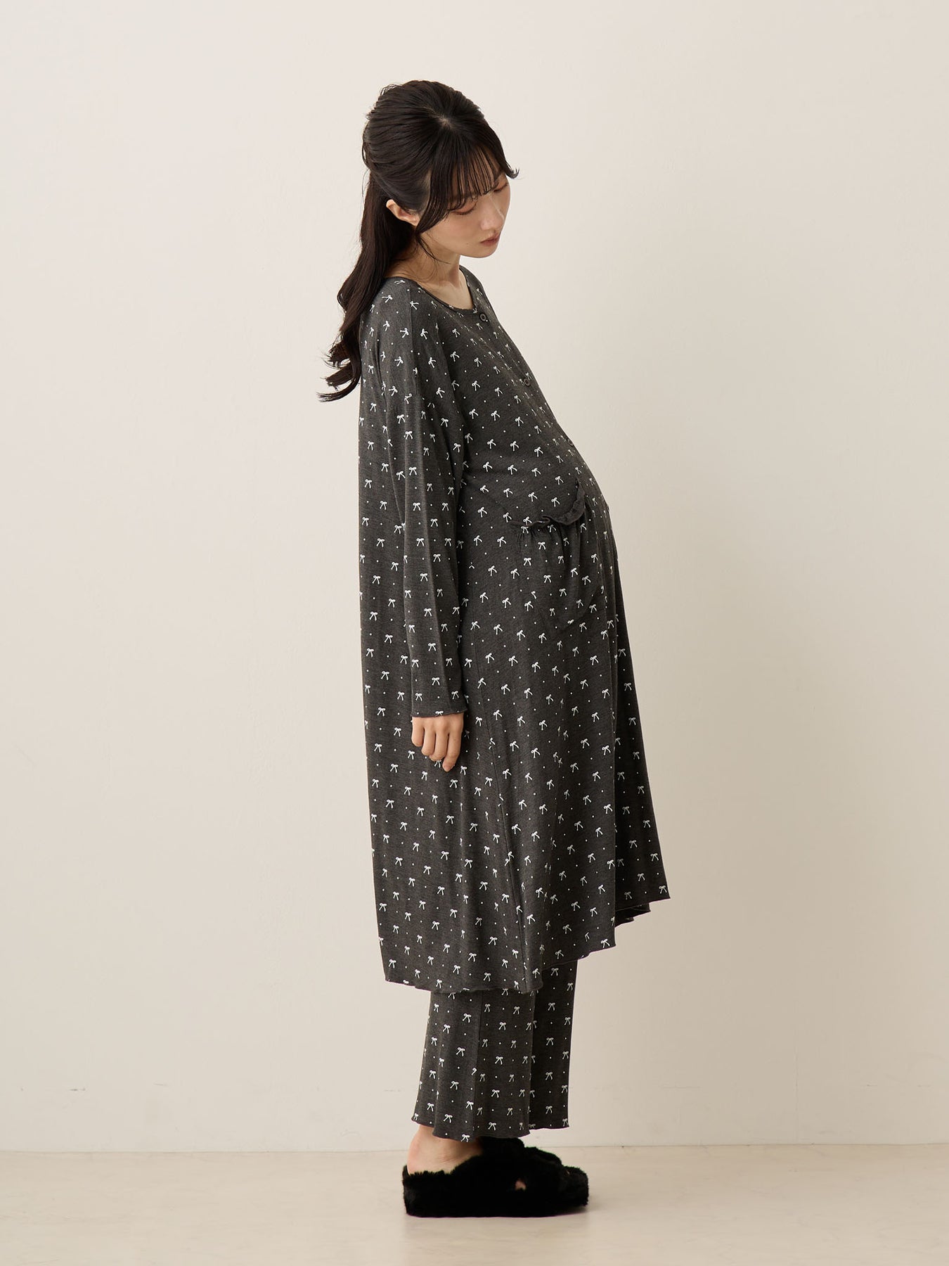 入院着にもおすすめの長め丈トップスと、ウエストサイズ自由に調整可能なパンツのルームセット!