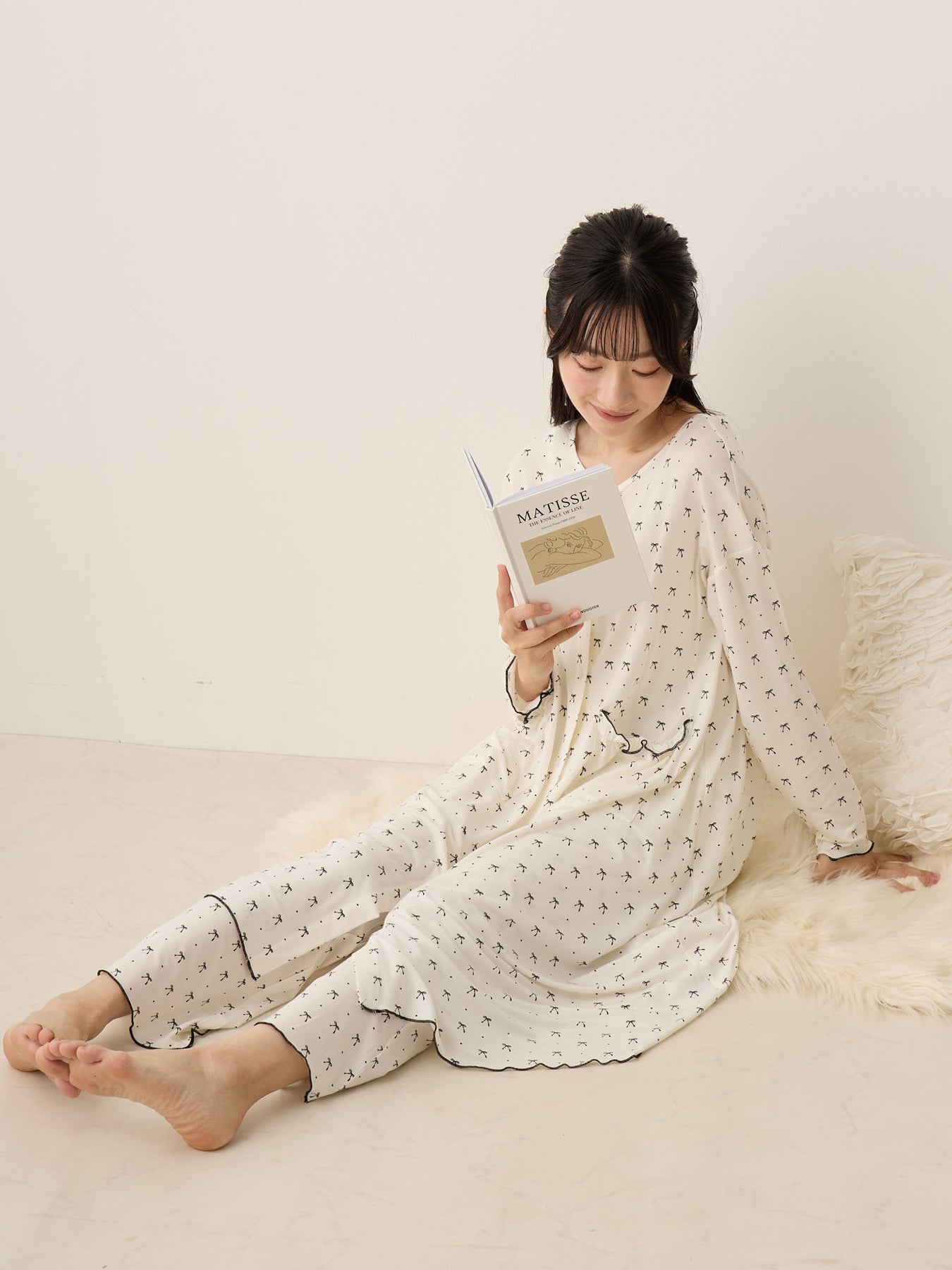 ◆hononoオリジナルリボンドット柄が可愛いルームウェア上下セット◆
