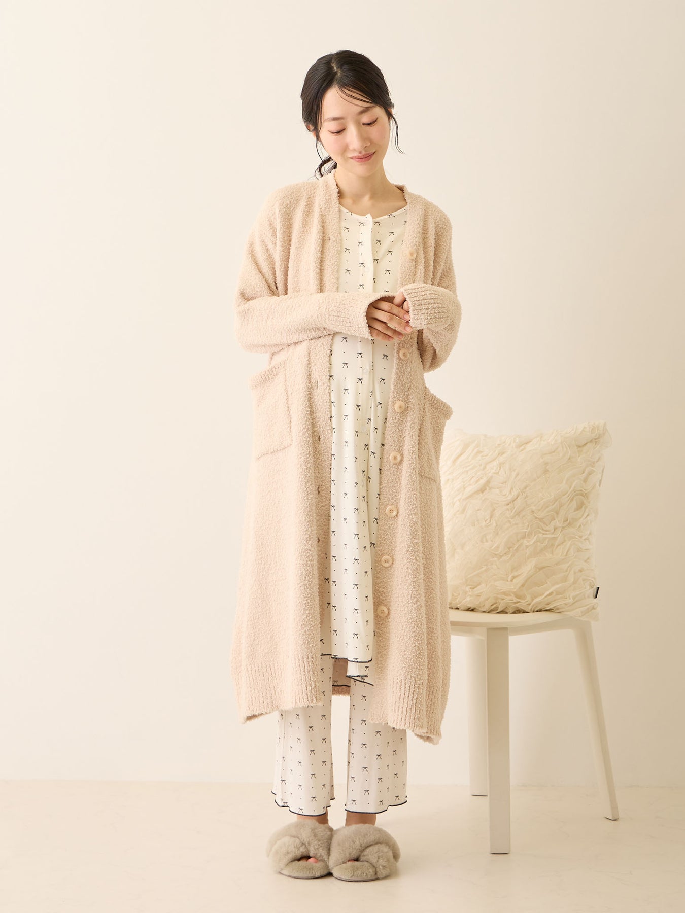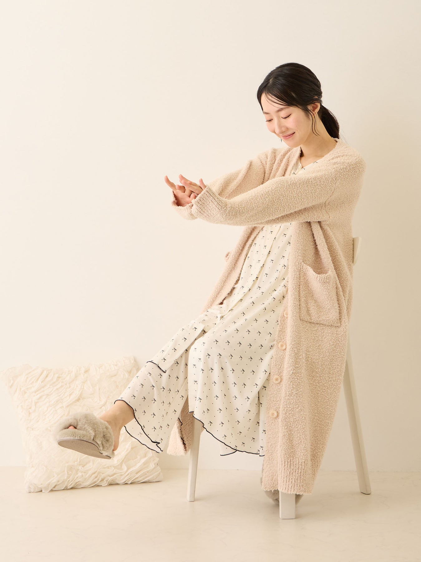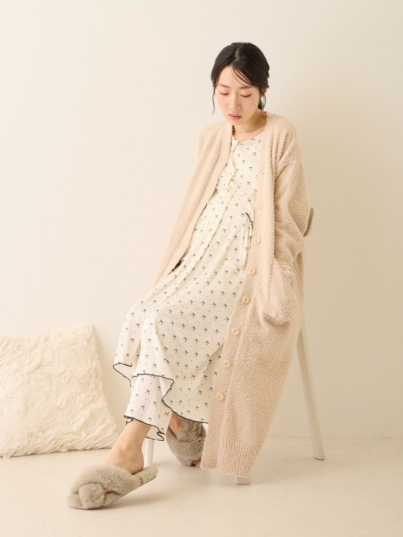 前ボタン全開タイプ・長め着丈で産後の授乳や入院着としても使いやすい。