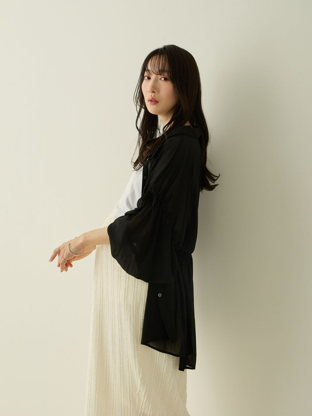 袖リボンシアーシャツ Black