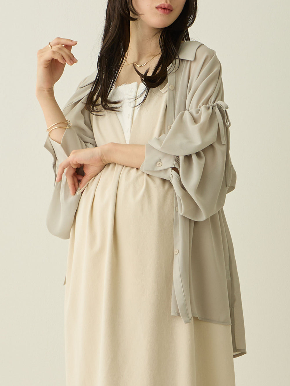 袖リボンシアーシャツ Light gray