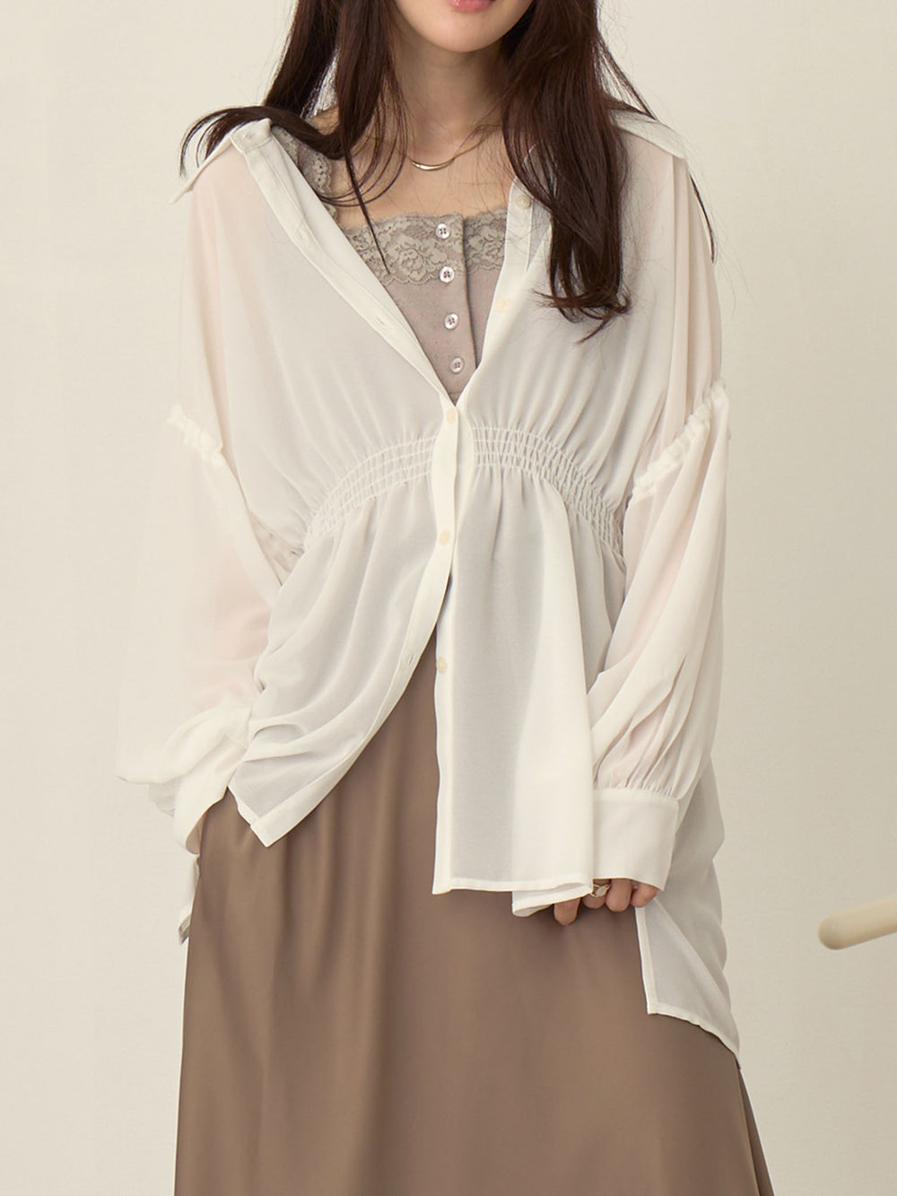 袖リボンシアーシャツ White