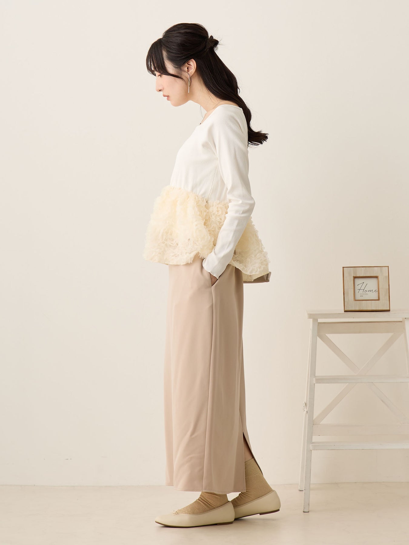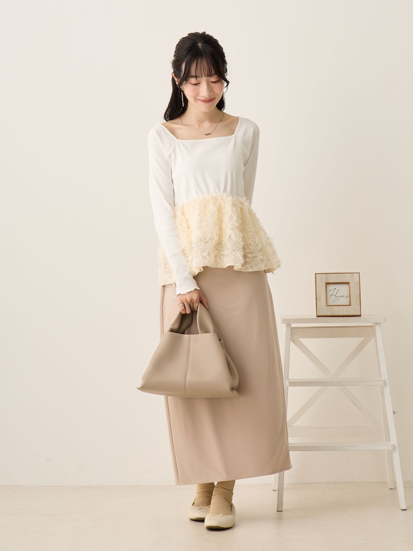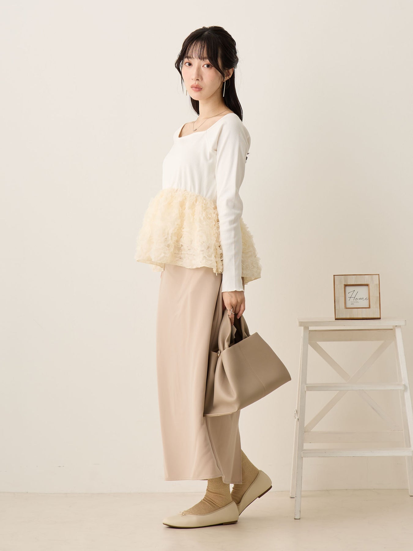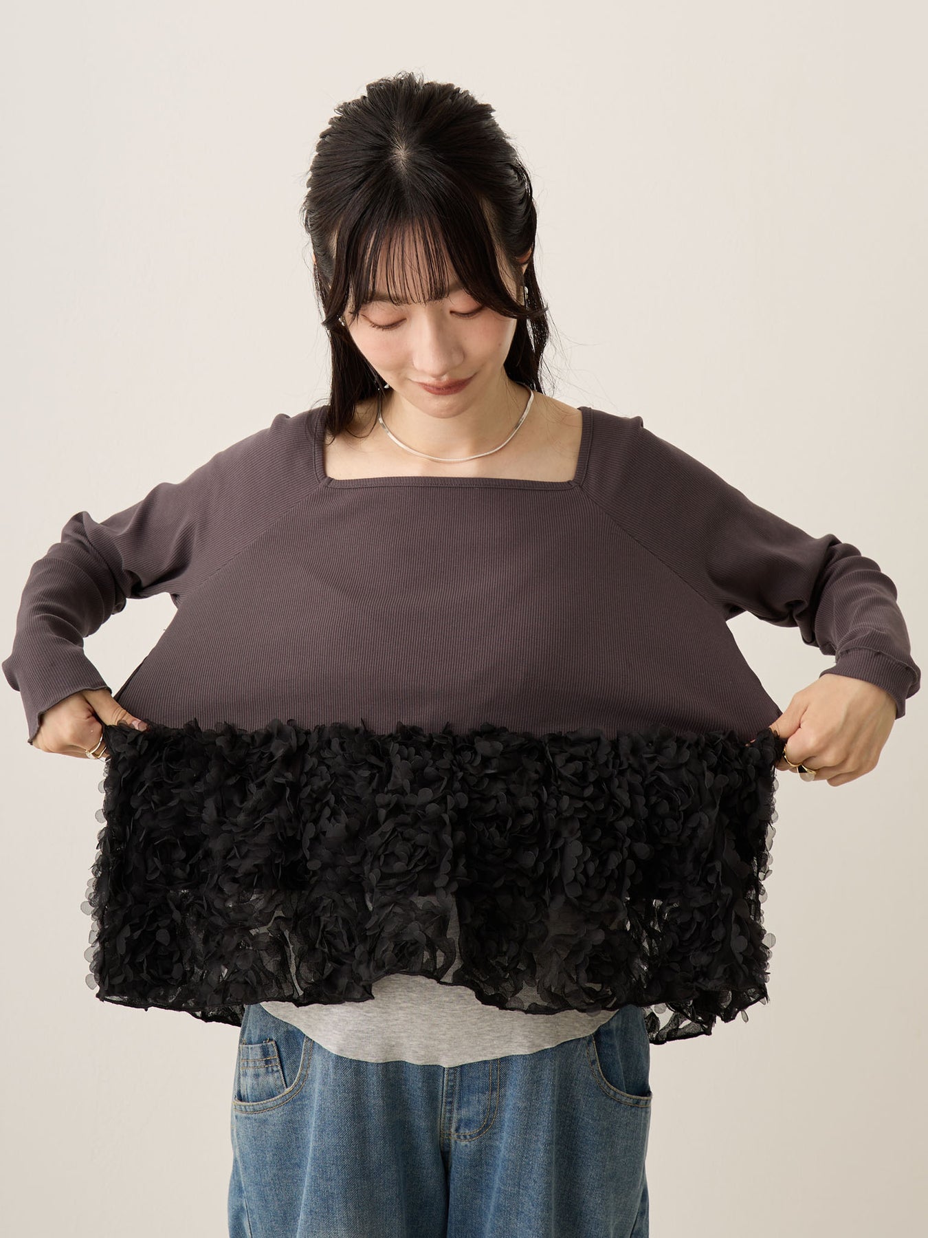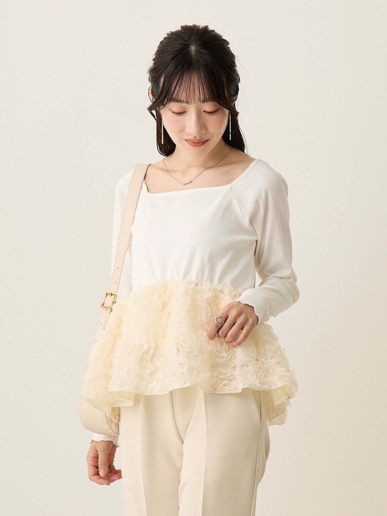 花びらのようなチュール素材が華やかでコレ一枚で着映えするアイテムです!