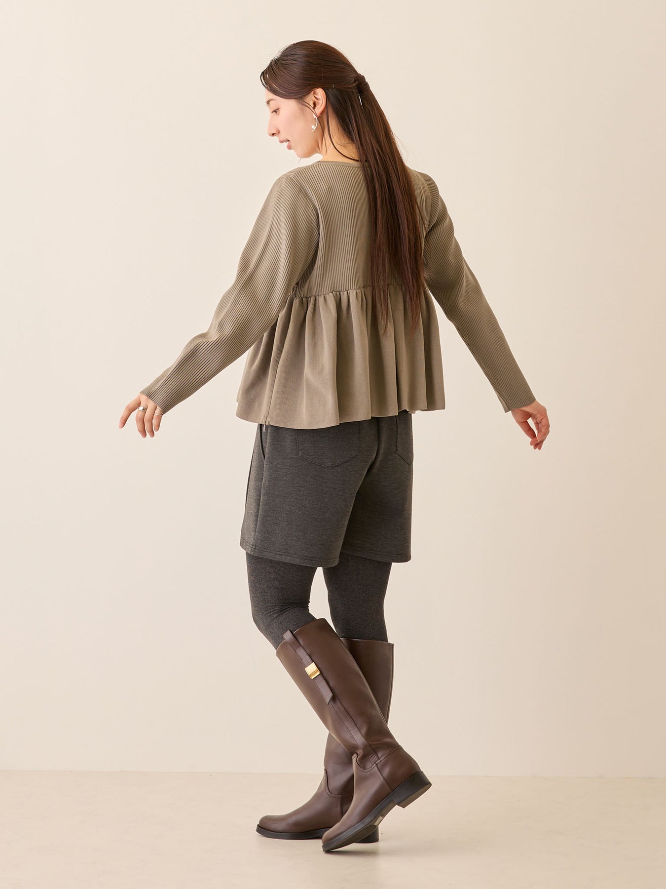 ハリのある素材を活かしたペプラムシルエットで、マタニティボトムとの相性もばつぐん◎