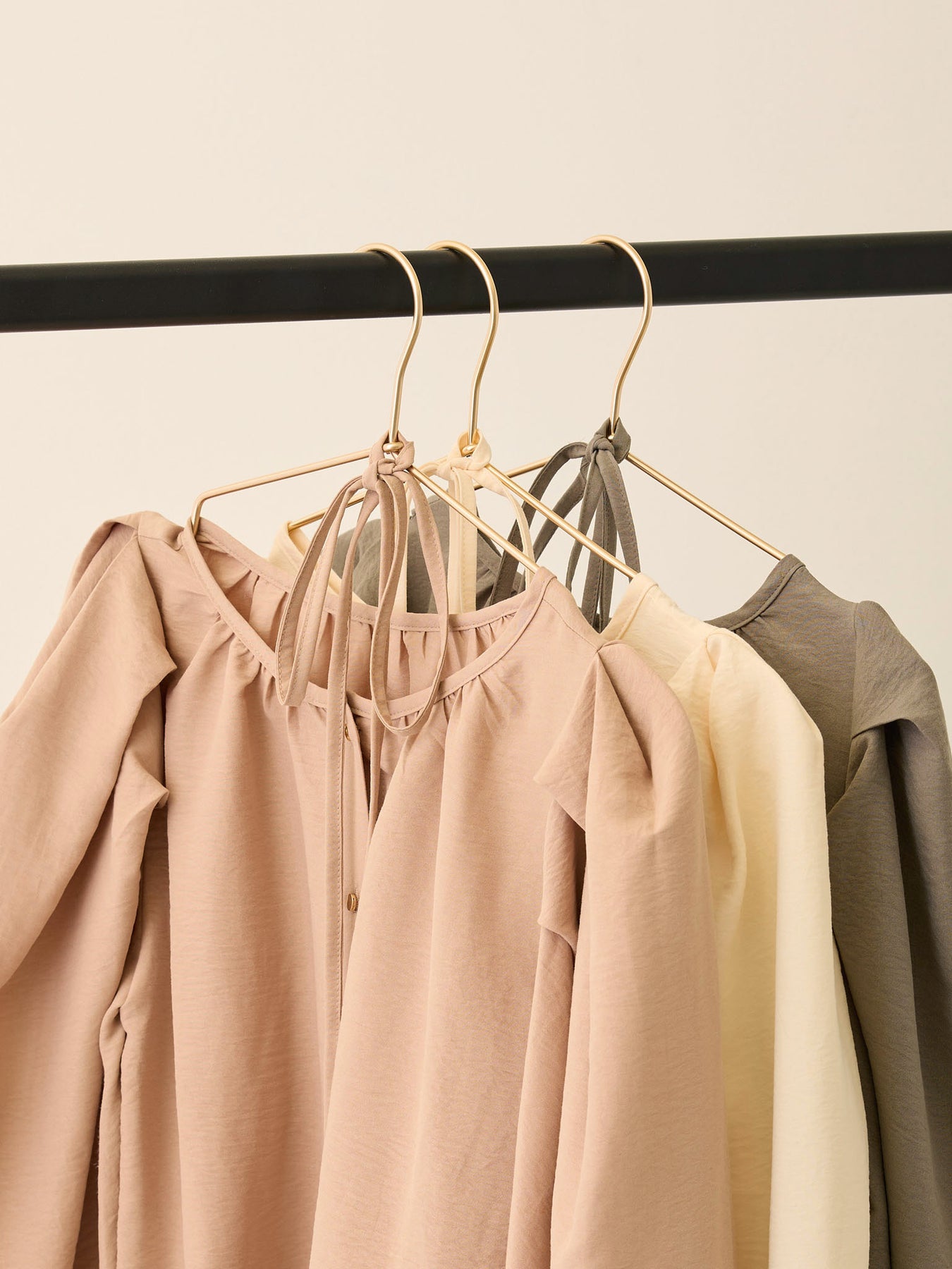 ほんのり光沢のあるやわらか素材のボリュームブラウス。