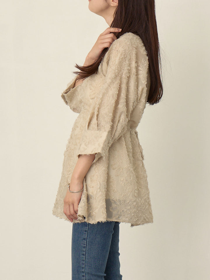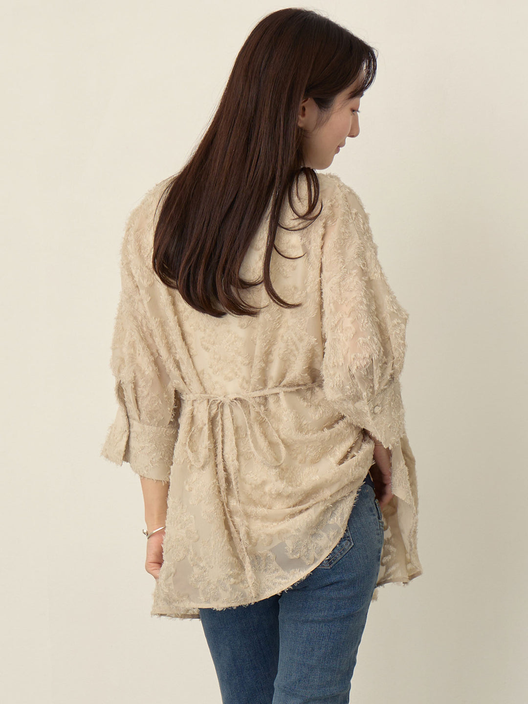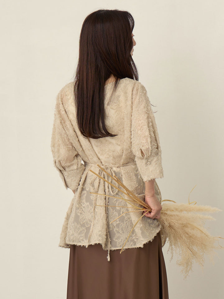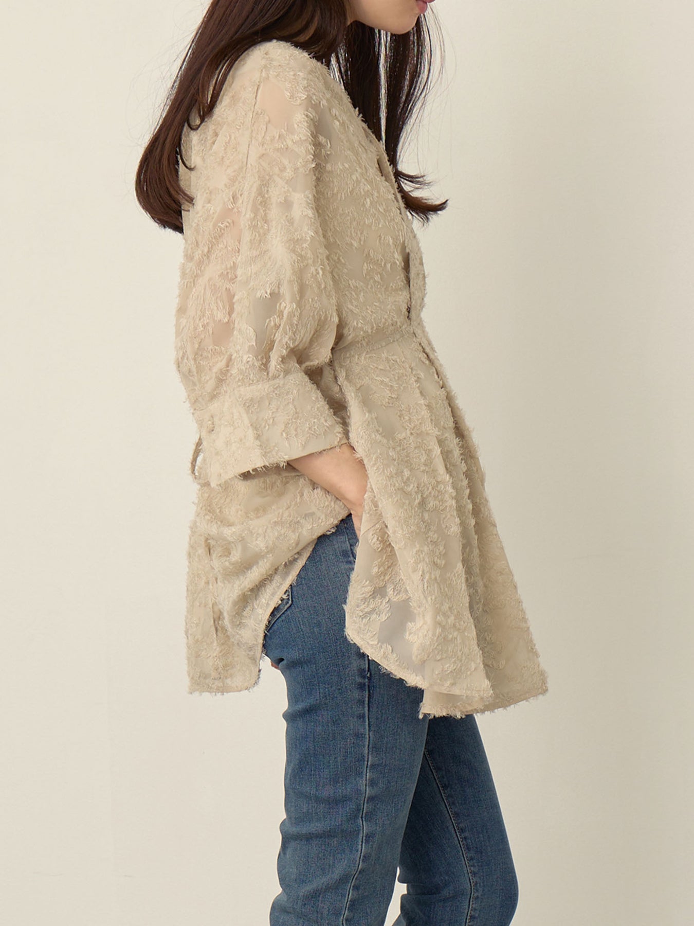 This blouse has a slightly sheer feel and fluffy feathers that will lift your spirits.