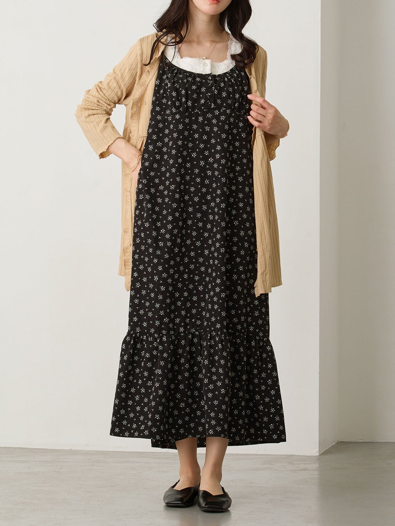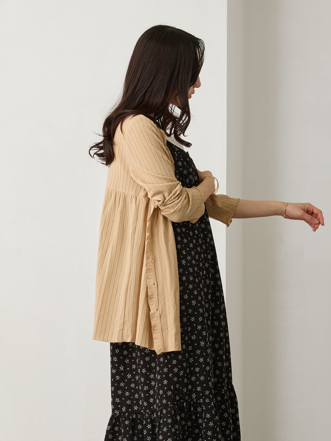 荷叶边廓形让您在怀孕期间也能轻松穿着。