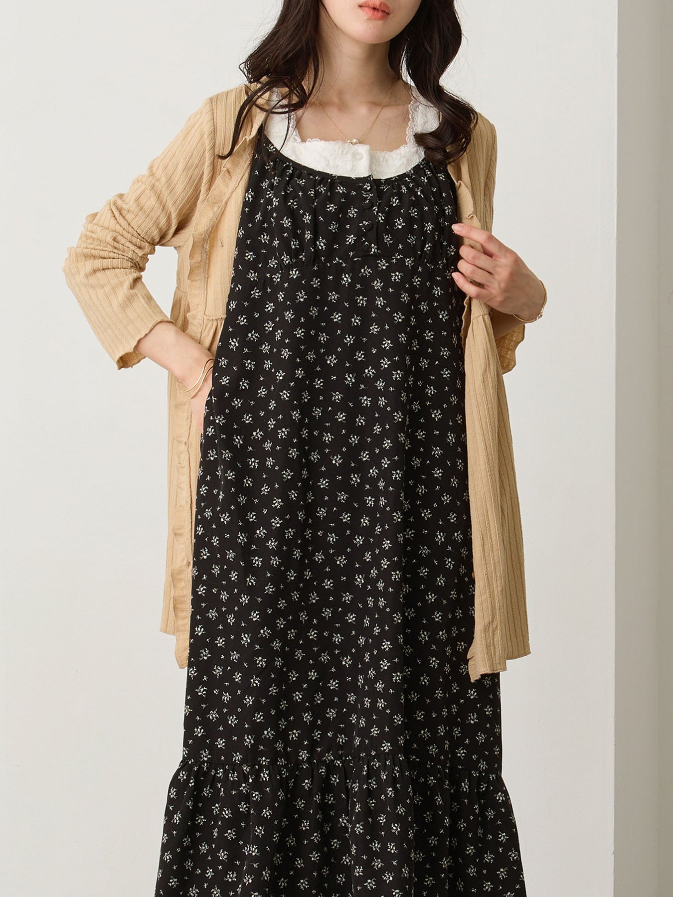 合上纽扣,将其用作吊带连衣裙的内层。