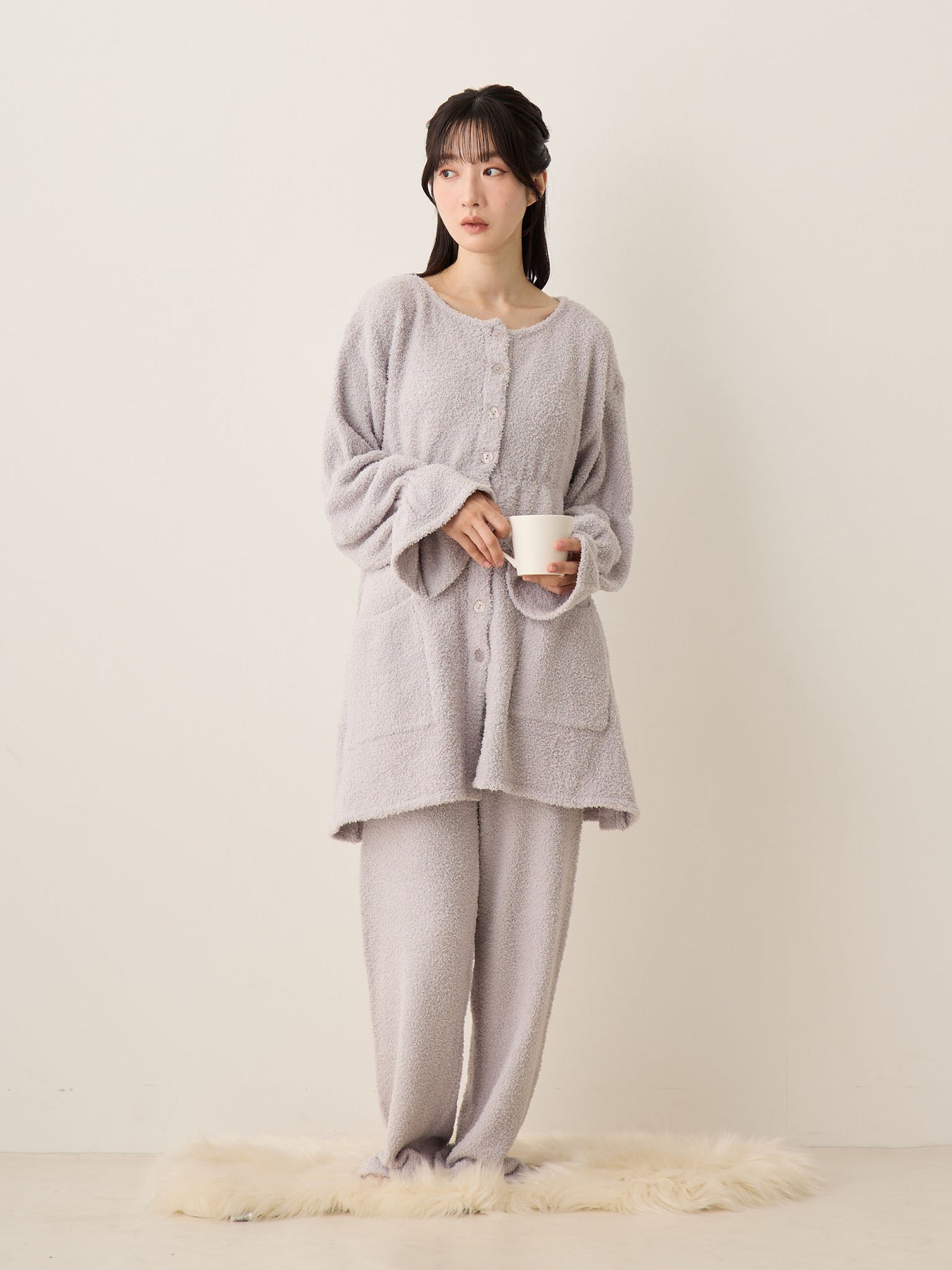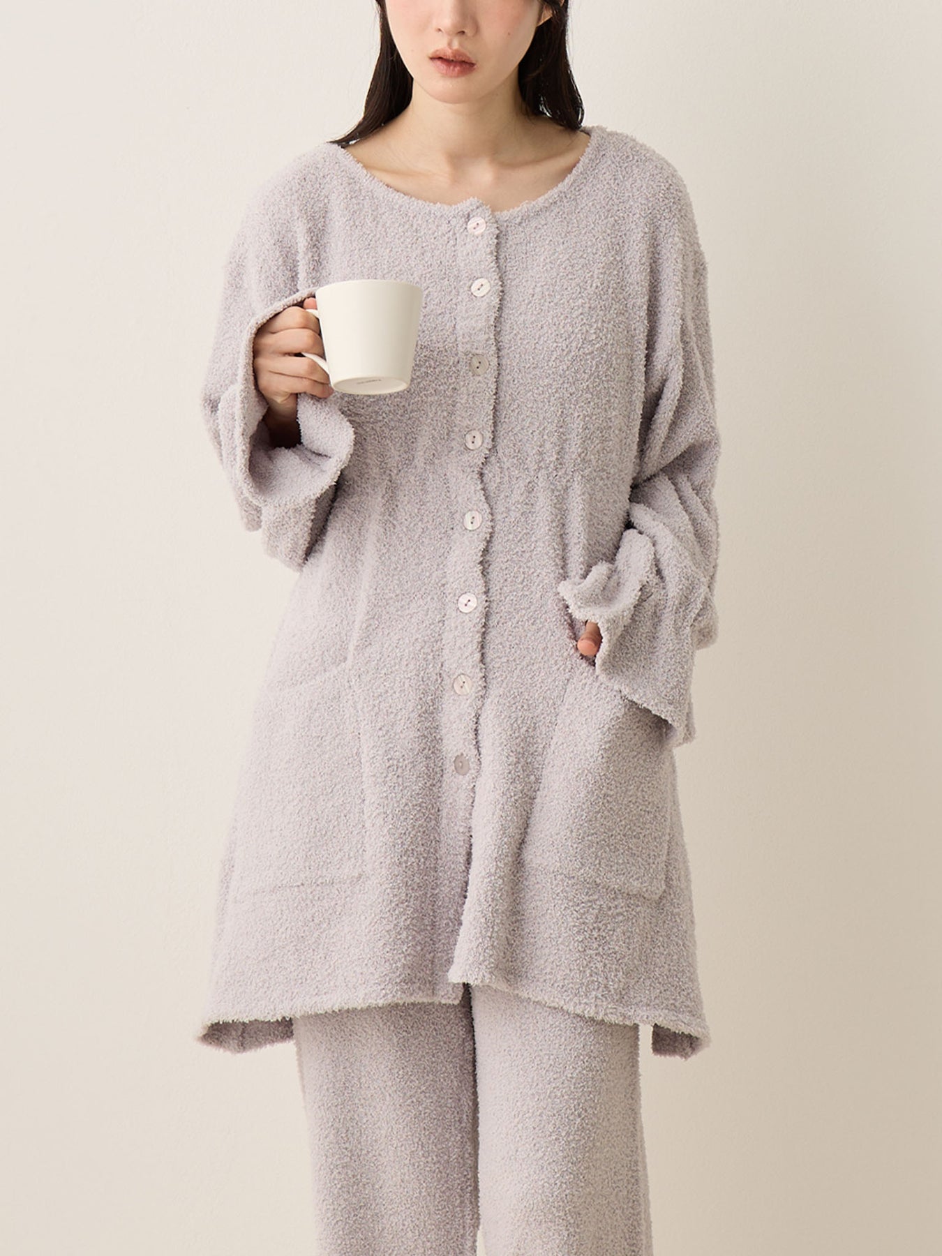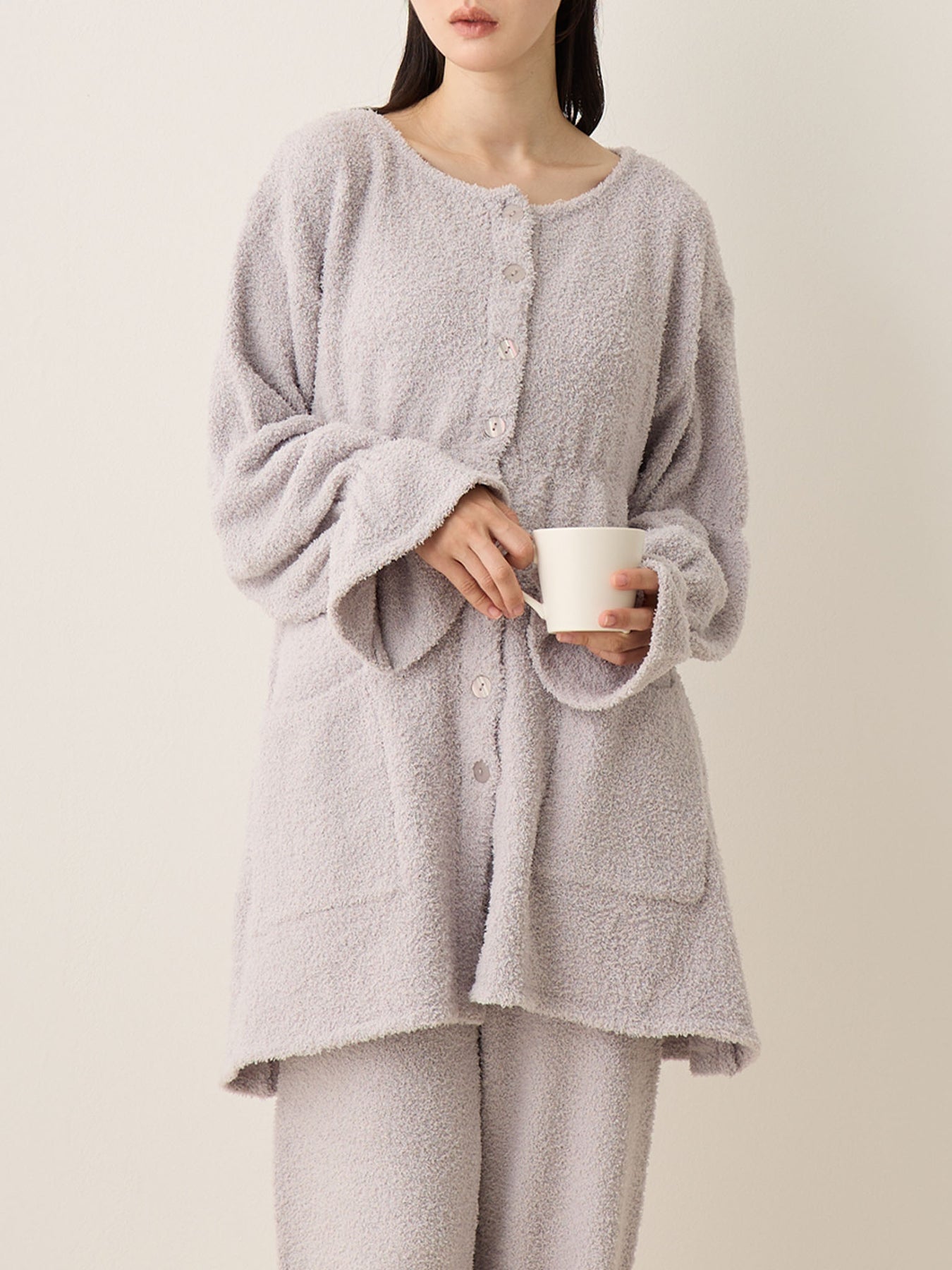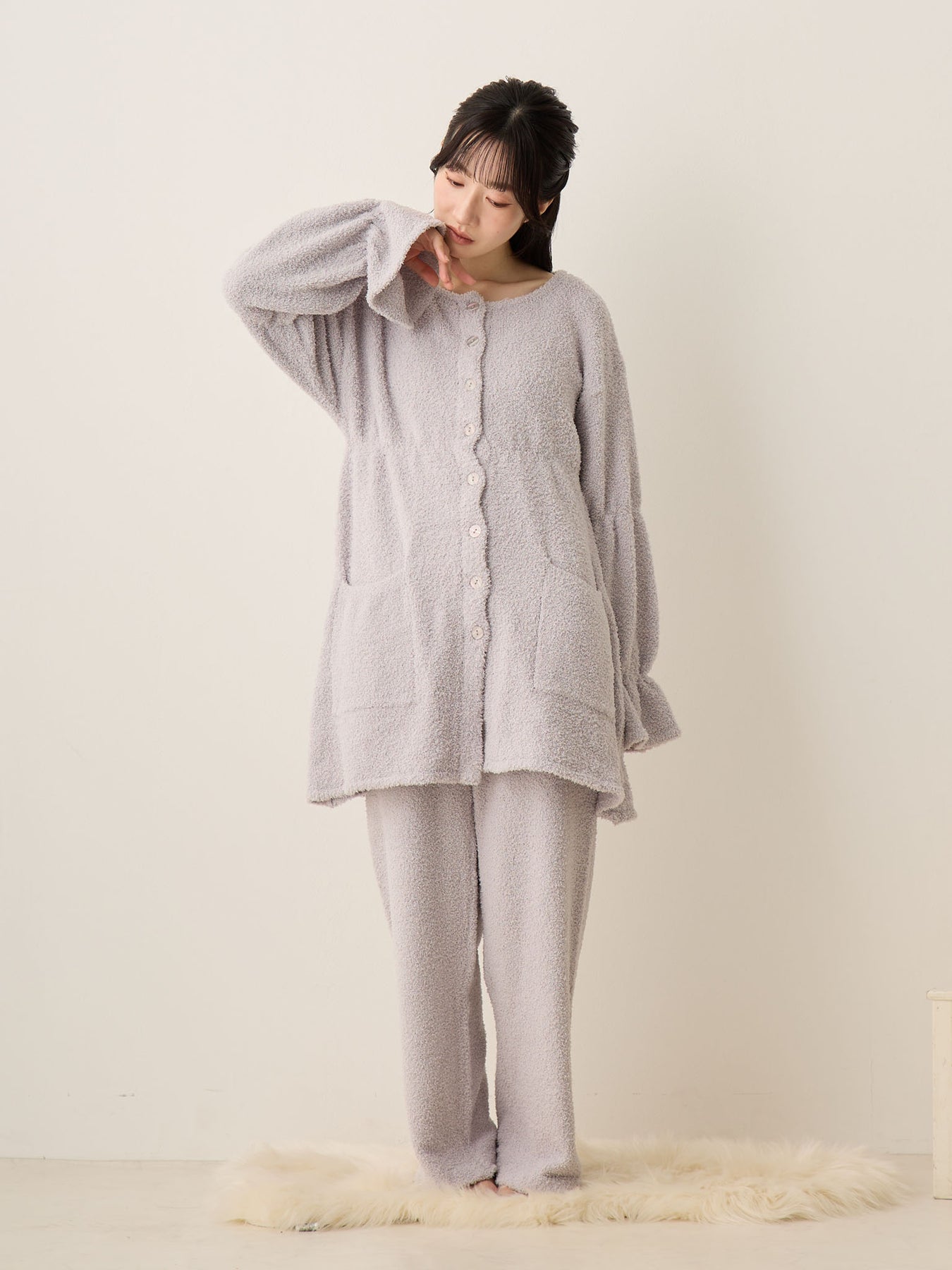 蓬松睡衣套装 灰色