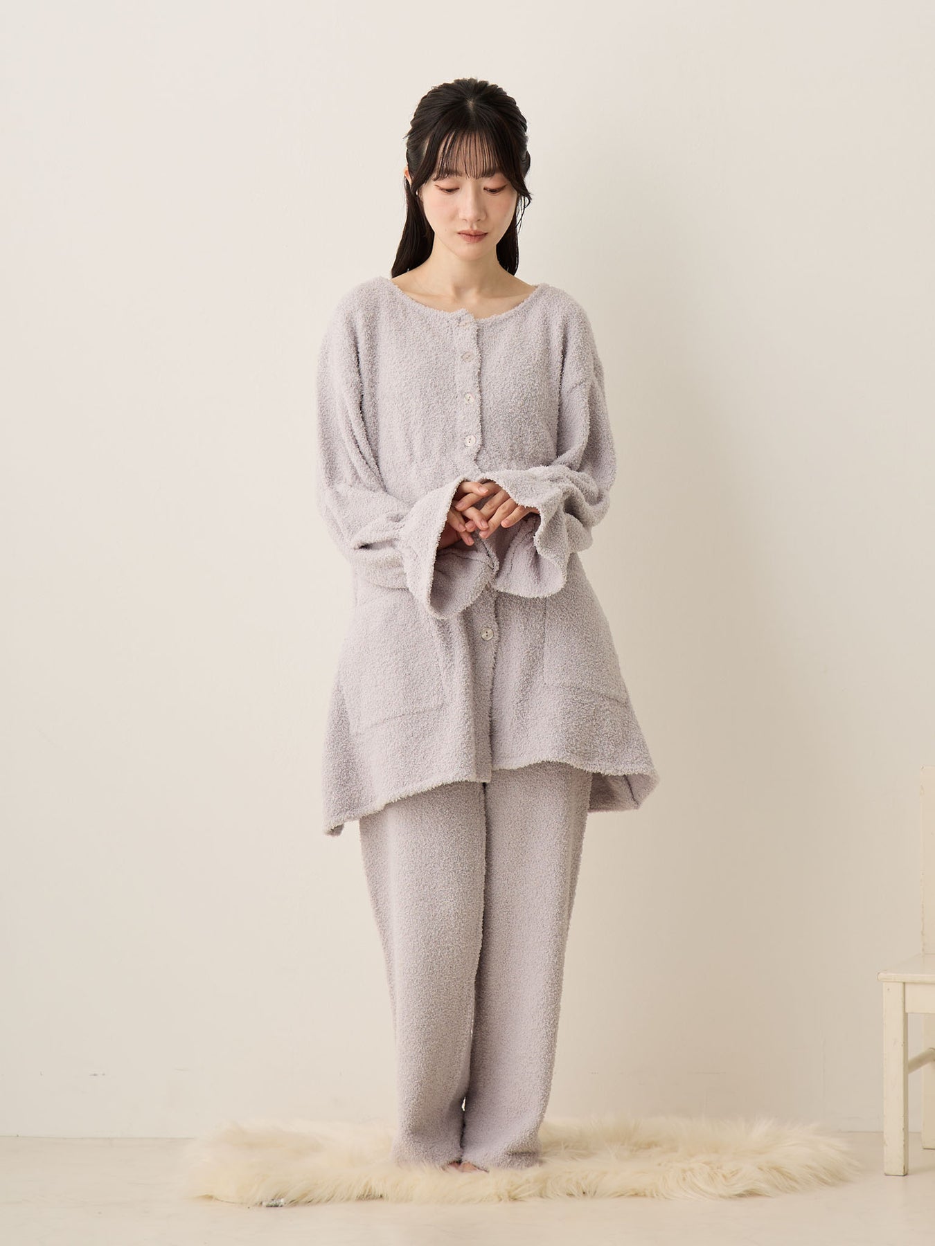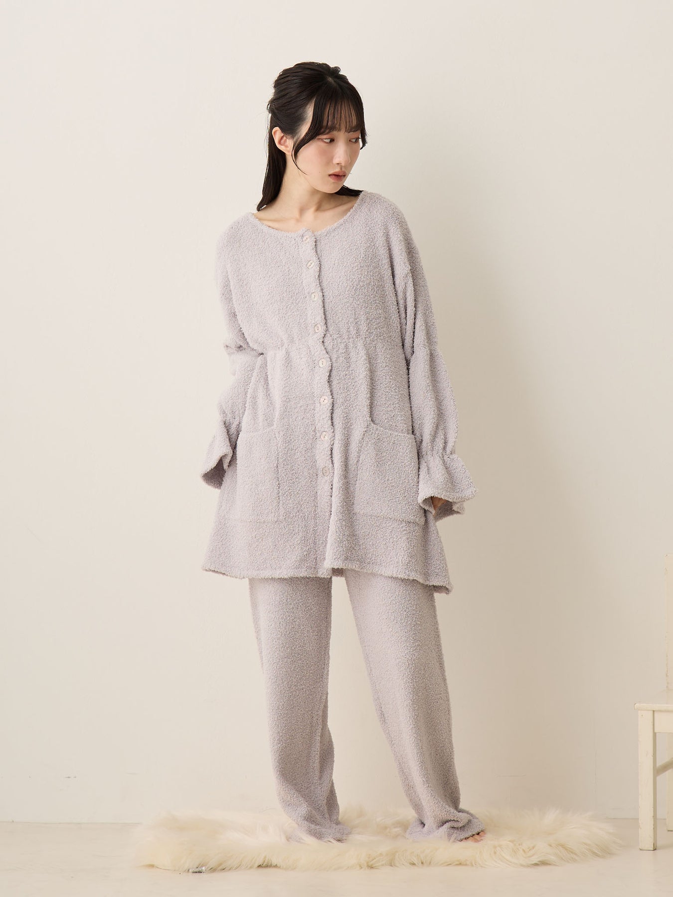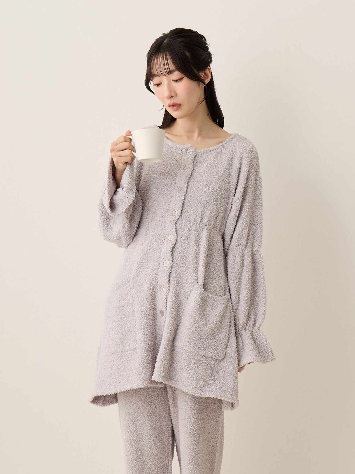 蓬松睡衣套装 灰色