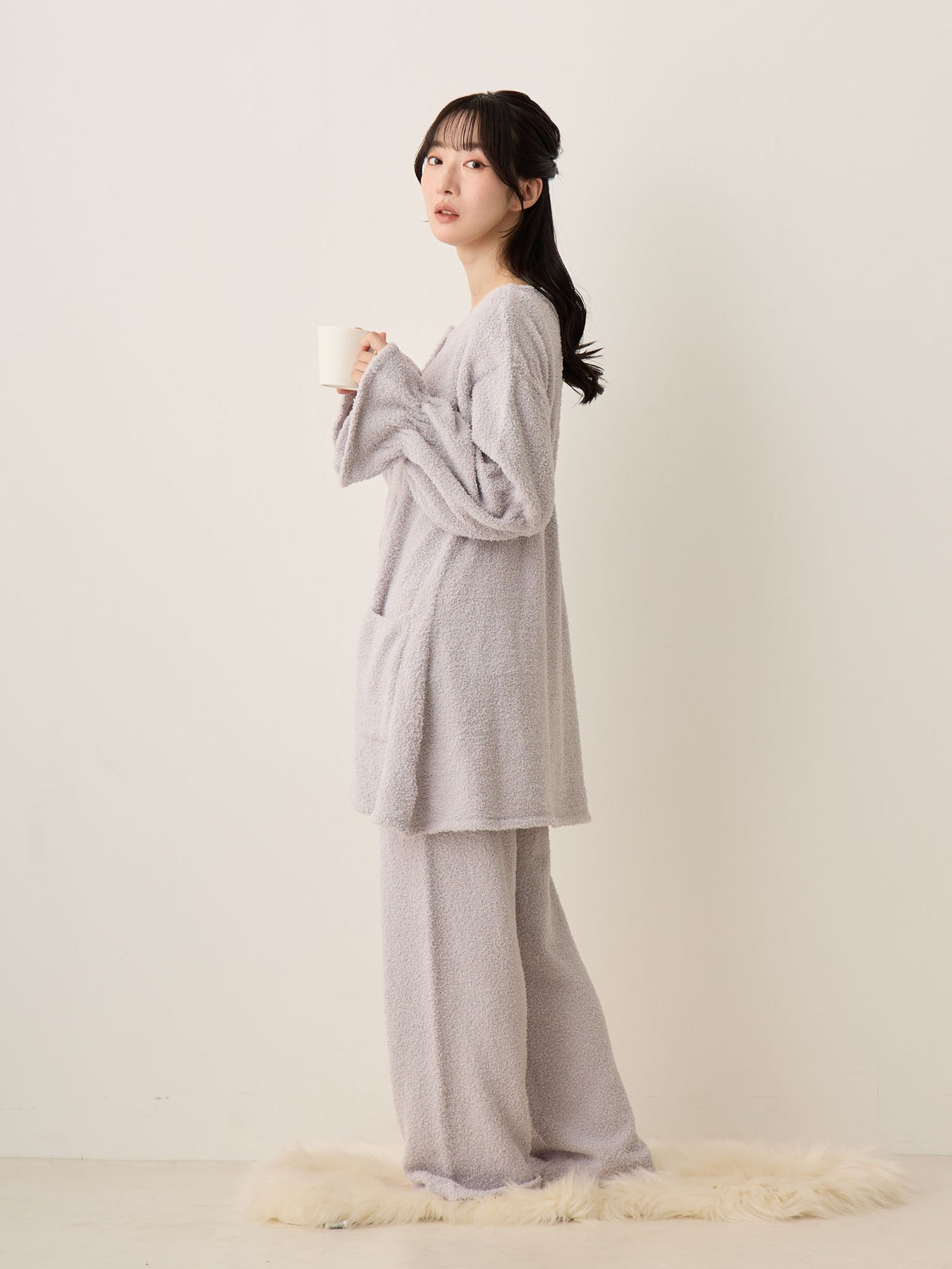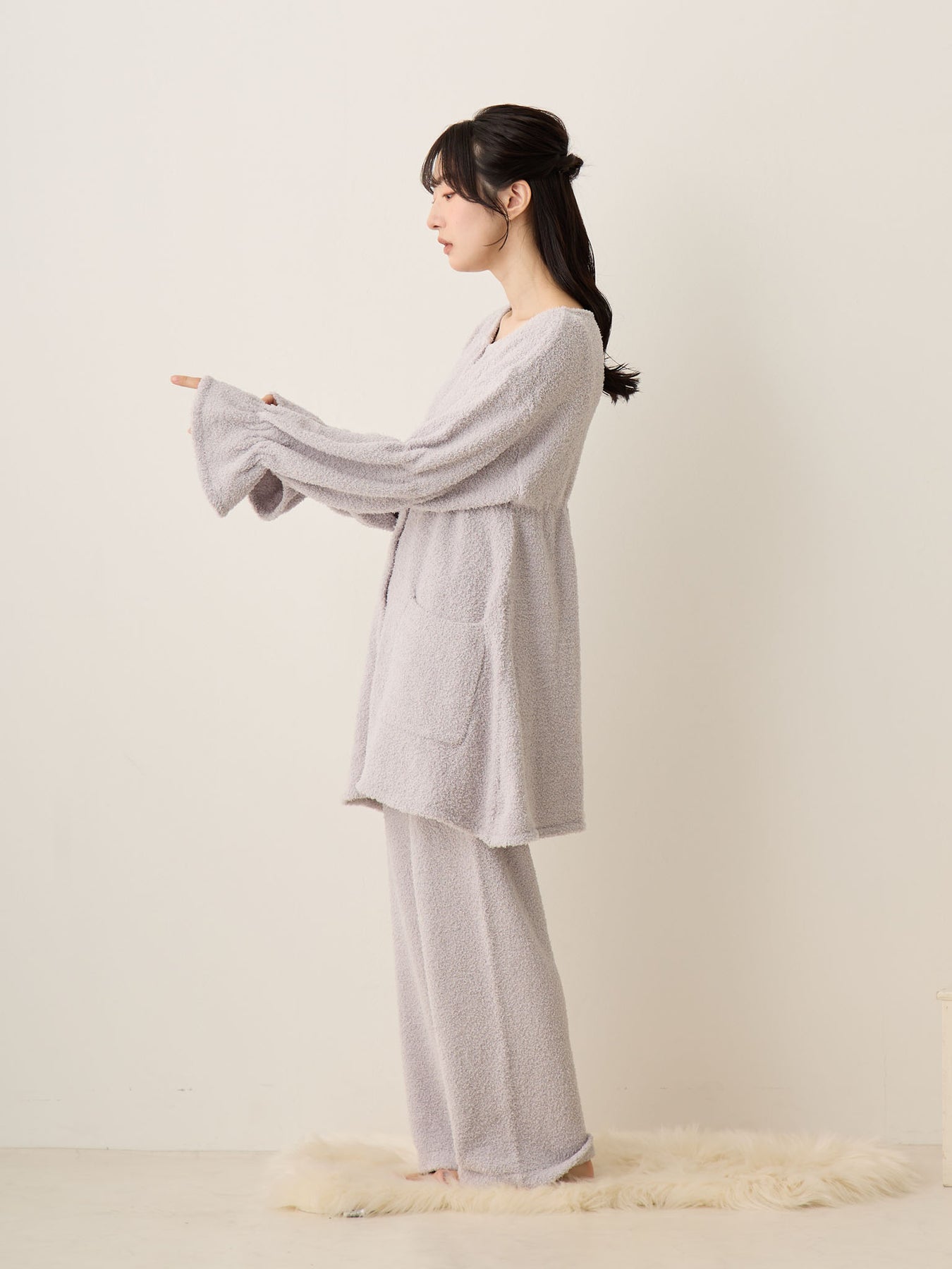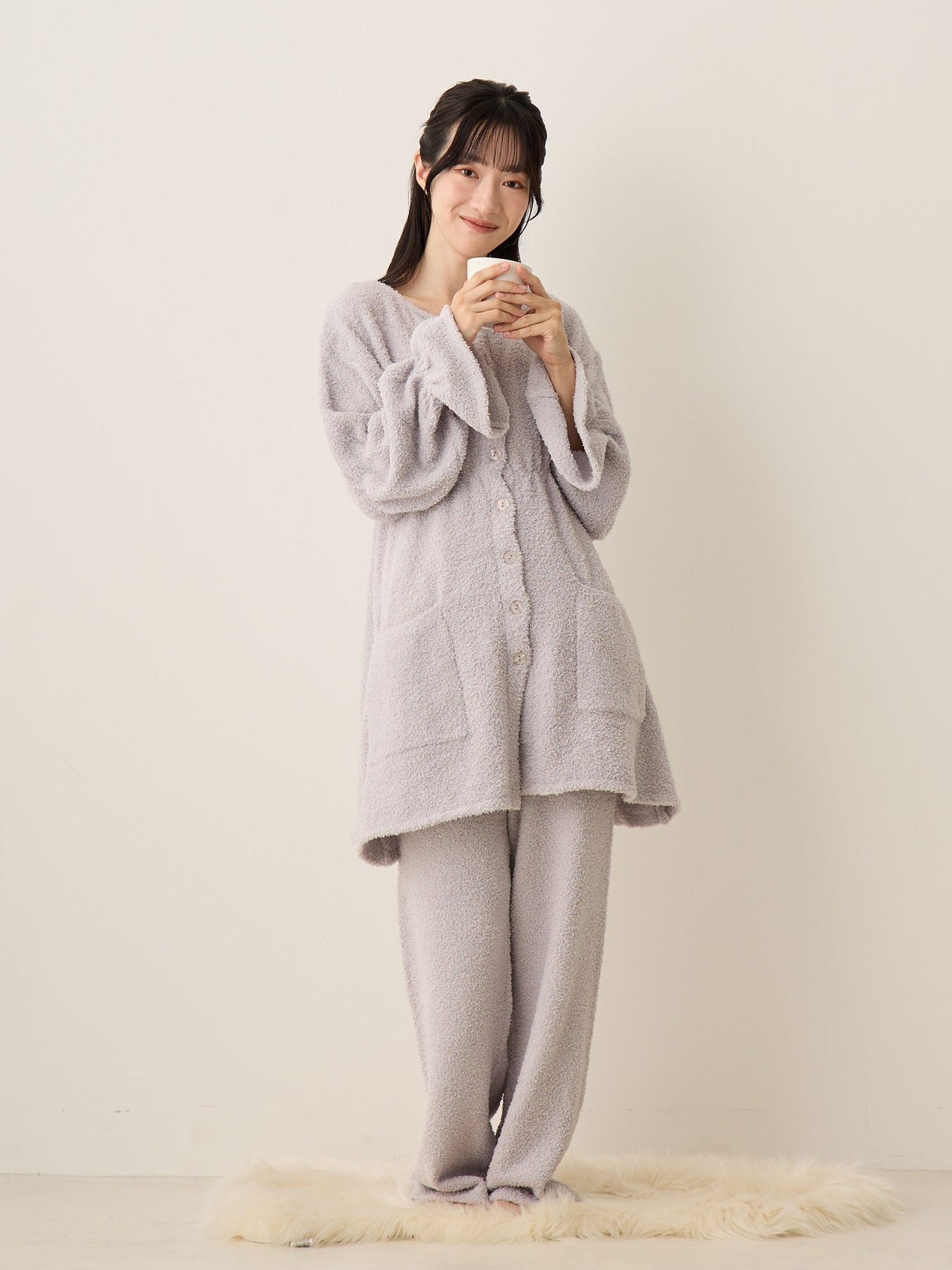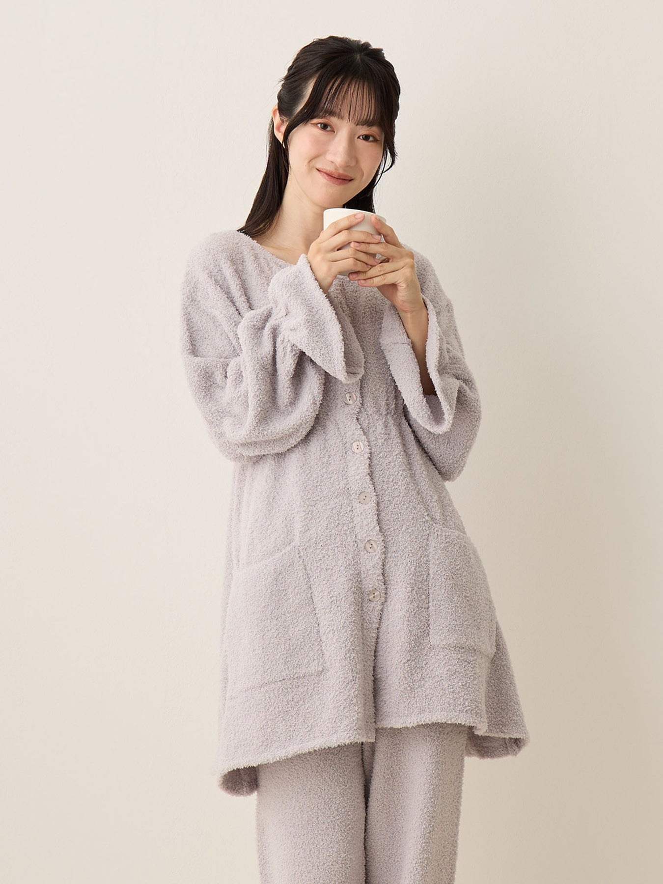 蓬松睡衣套装 灰色
