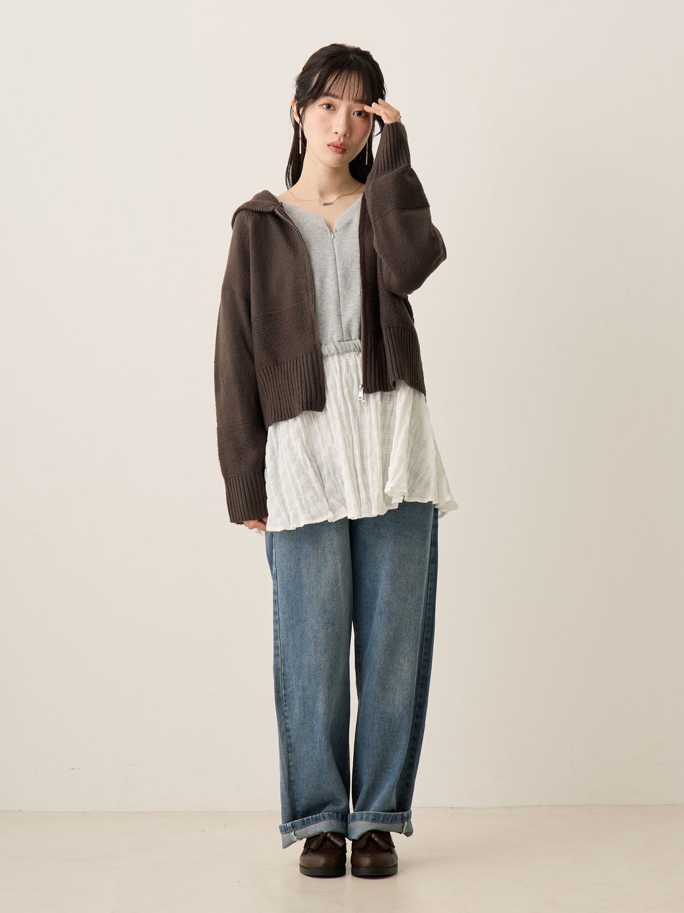 ◆即使肚子变大也能舒适穿着的双拉链针织开衫◆